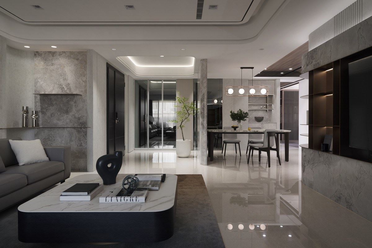 在都市喧嚣中,与生活展开深度对话!158平米现代风新成屋以材质与光线书写诗意留白