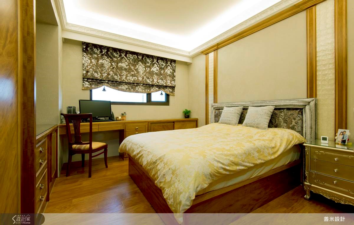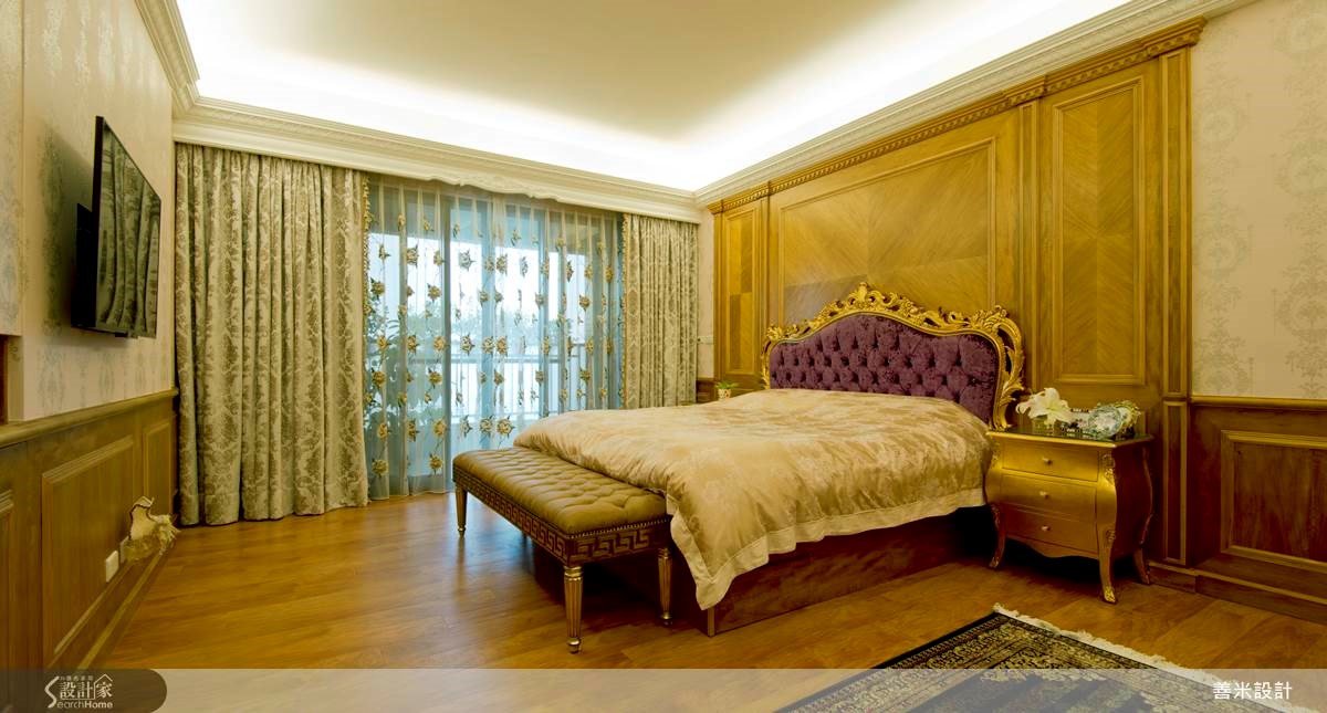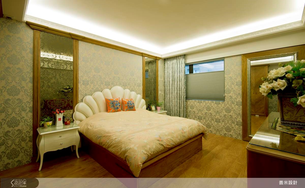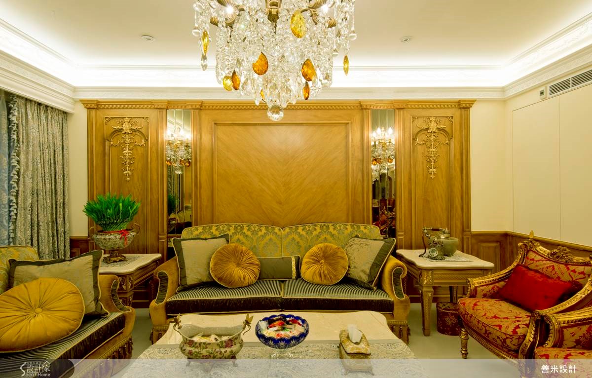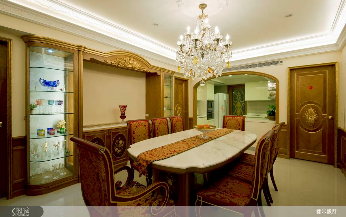屋主夫妻辛苦了大半辈子,为家庭、孩子们奉献了青春,希望趁早规划理想的退休生活,买下了位于市区的大户型,准备做为日后退休宅邸,打算享受轻松自在的慢生活。空间内,规划了三室两厅及一个神明厅,室内空间以古典风格为主轴,并使用明度较高的淡杏黄色搭配月桂米黄大理石做为全室铺色,藉由明亮的色彩跳色,融合黄花梨木的雕刻,展现新旧融合并具有活力的古典风情。 玄关处使用沉稳色系的大理石及金色耀眼古典家具,展现出尊贵、辉煌的空间语汇;客厅空间承袭古典大器的设计风格,电视墙使用圆拱造型,带来华丽古典的姿态,也在右侧规划了一处使用金色打底做的展示区,随着圆拱上典雅的符码、白色的展示柜,将奢华的色彩调和得更加稳重耐看,沙发背墙在实木墙上崁入两面镜面,将高挂的华丽水晶灯,映照的更闪闪发亮,化解空间沉重感也增添穿透特性;餐、厨空间使用开放式设计,利用中岛吧台做为自然的交界,于厨房入口加入拱门造型,让空间更显优雅风格;起居空间利用深色木结构衬托绒布寝具,营造空间优雅气质,打造舒适、温暖的氛围。 小编的最爱设计师在每一空间内使用装饰线板,细腻地展现出古典语汇,转化传统气派的雕刻技术,让居家散发出截然不同的浪漫气息。