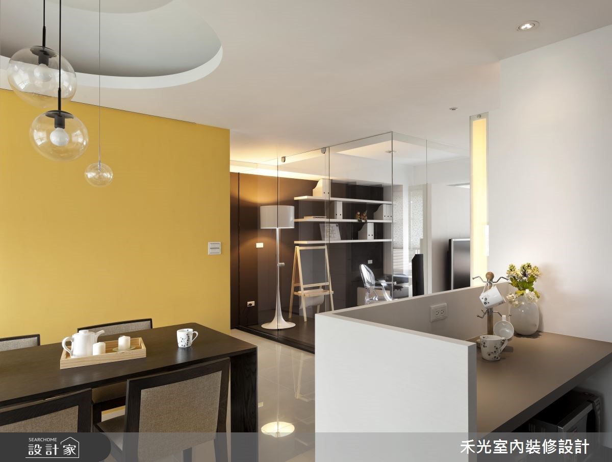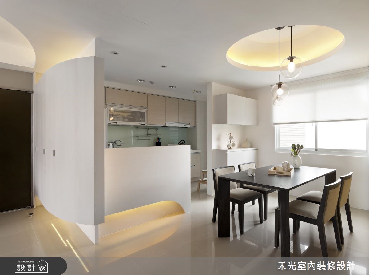 拥有自己的独立空间是许多都会人的梦想,也是越来越普遍的趋势。但如何创造舒适又有特色的单身宅呢? 座落于新北市的2室2厅89平新屋,设计师运用了色彩与线条,为单身屋主打造一人住也温馨的幸福家。【弧形柜体创造流畅动线】一进门口可以看到的是清爽透亮的客厅,客厅主墙以奶茶色创造休闲放松的氛围。白色电视墙采用弧线设计,成就简单雅致的空间。电视墙后方的书房则以透明玻璃作为区隔,引入的光线能更透进室内,创造明亮通透的视觉感受;深咖啡色的木地板则传递沉稳气息。回到玄关处旁延伸的白色弧形鞋柜,自然地指引至餐厅区域,建立流畅的居住动线,也满足收纳需求。在餐厨区域设置中岛,下方适时镂空打亮,搭配鹅黄色的餐厅主墙,清爽色系让用餐心情也跟着愉悦起来。主卧室以沉稳的酒红色床头墙与深色木地板为基底,搭配净白的窗帘灯饰与情境灯光,沉淀了忙碌疲惫的身心。而卧室旁的更衣室以展示柜的概念于两侧排开,并透过白色柜体与大地色系墙面,让衣服饰品特色能够突显出来。