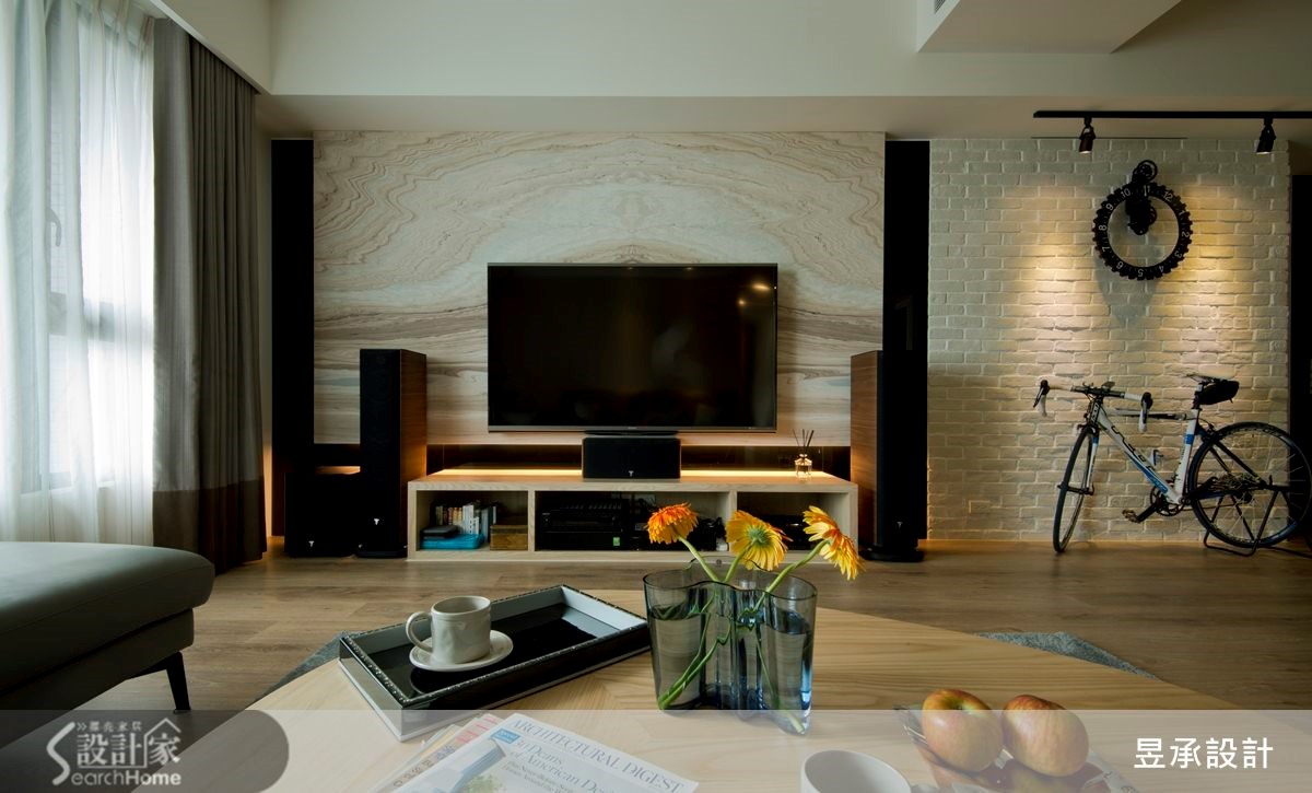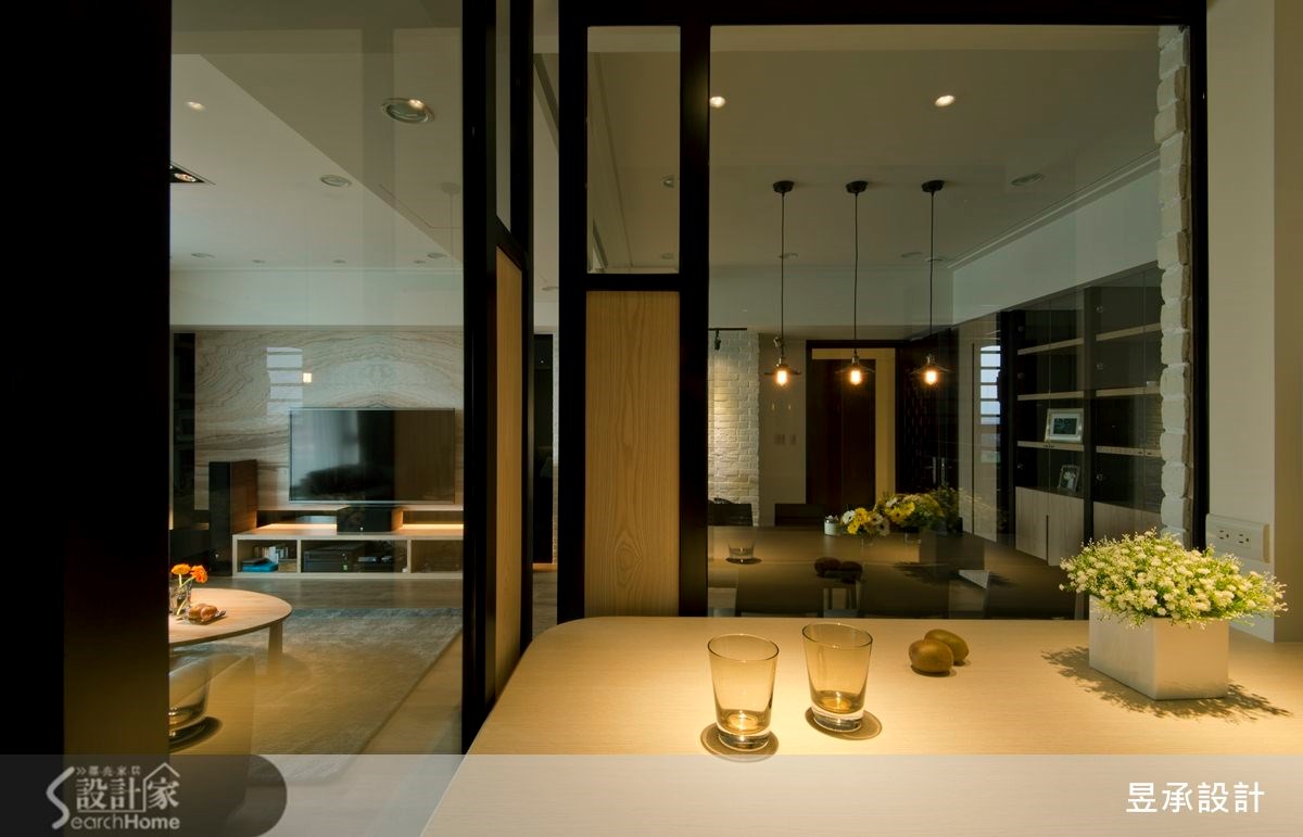 在198平方米的现代风4室2厅居宅中,设计师打通书房及厨房原有隔断后,营造出宽广的居住领域,并运用材质搭配,将冷冽与温柔感受同时带进居家,打造出兼具现代简约与温馨时尚的住家。 【打通原有格局,创造舒适好生活】从玄关走进居宅,可见到简约的开放式公共空间,以木质地坪铺述温润质感,电视墙采用黑色烤漆玻璃与大理石做媒材,呈现大器冷冽的风韵,一旁则连结文化石墙面,替空间带进另一种粗犷暖度。餐厅墙面配置收纳柜体,运用木色与黑色作出深浅对比,透过活动推拉门与吧台,做为餐厨之间场域界定,推拉门的玻璃材质让空间光线流通无碍,保有通透的开放感。主卧延续公共空间的设计,将木质与黑色的色彩混搭之美带进室内,呈现静谧单纯的居住感受,衣柜门片采用内凹的把手设计,让立面完整并产生线性的美感,而更衣室及卫浴则隐于衣柜拉门后方,形成流畅的生活动线。