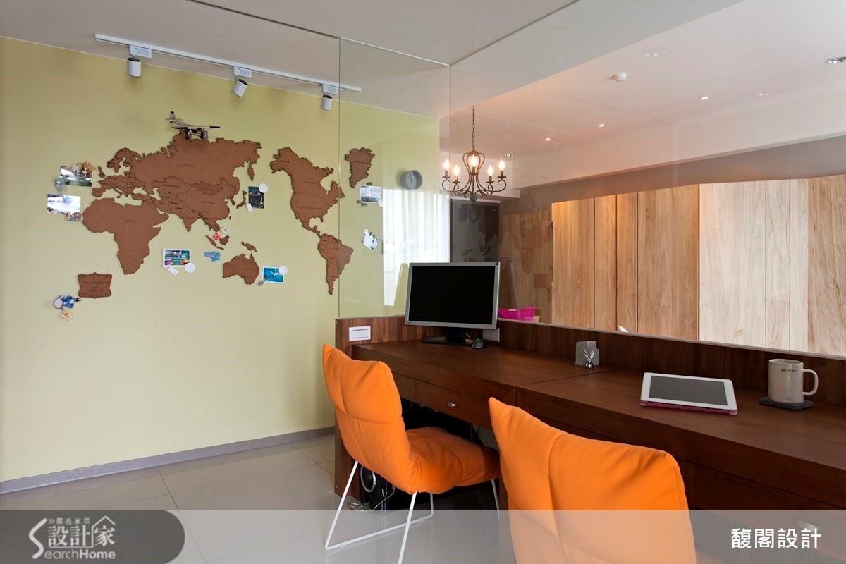106平方米新屋共有4室2厅2卫,新婚夫妻两人拥有许多共同出游的回忆。因此,希望在家中可以找到一个适当的位置展现,结合屋主的需求加上设计师的专业设计,打造出一处清新简约的人文居宅。【造型柜营造流畅,草绿色增亮点】将客厅、餐厅及厨房打造成开放式,透过从玄关一路延伸入内的大面积木质电视柜墙,创造出流畅生活动线。餐厨空间以沉稳的高吧台化为自然交界。而草绿色的地毯、单椅则替明亮的公共空间,添加疗愈感。半开放式书房满足屋主可以一边工作、一边看电视的需求,透明玻璃隔断不仅为空间带来更宽阔的视效,翠绿的书柜门板亦能成为公共区背景,与客厅的装饰元素相映,创造出更完整的空间感。鹅黄色的廊道设置了磁性漆涂装墙面,并以细腻的软木雷射切割出世界地图造型,让屋主可以将去过的城市插上当地的小国旗,并贴上回忆照片,加深了专属感与艺术性。居室舍弃繁复的线条设计,改以温润的藕色调,形塑出舒眠的柔和气氛。