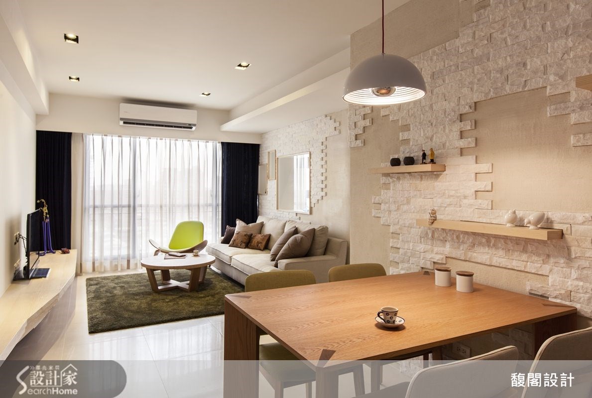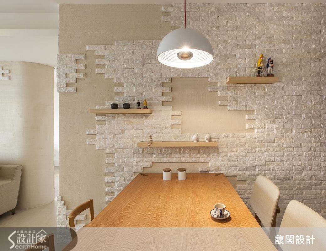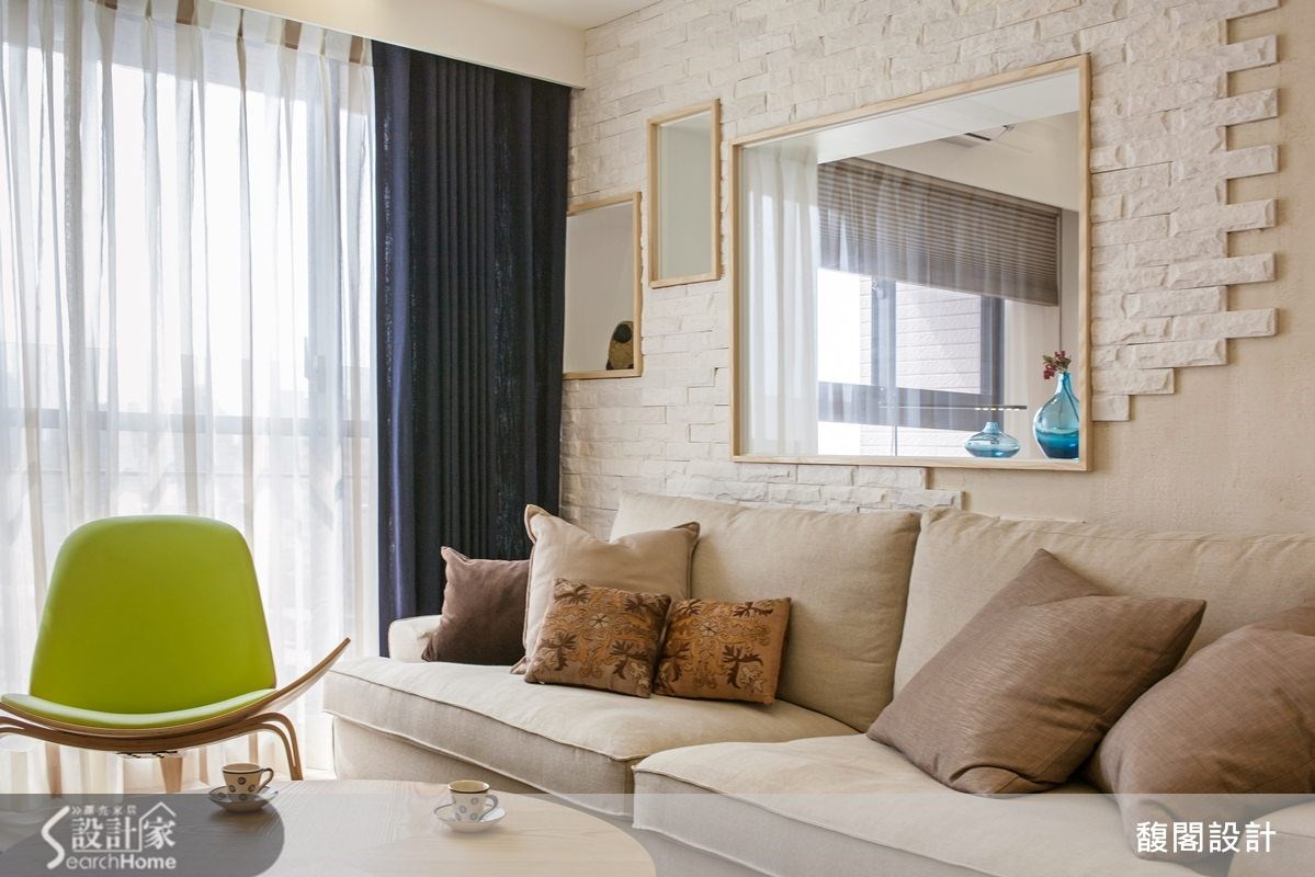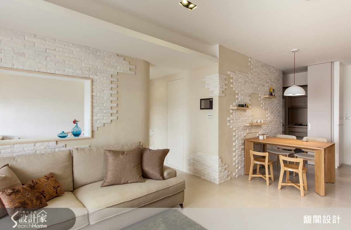 北欧风格的氛围、简约直率的舒适,这样的气息让从事剧团表演的男主人、教职的女主人与正在大学求学的儿子相当喜欢,为满足屋主的人文背景,打造了一处自然悠闲宅。 【铺贴文化砖,空间添动感】83平方米新成屋拥有4室2厅2卫格局,由于未来也规划为退休宅使用,除了运用丰富的材质形塑出空间层次外,在采光及动线也特别预作考虑。由于位处热闹的夜市旁,亦加强了隔音质量。 以净白作为空间主色,并利用落地窗引入明亮的采光、增加空气流通。在这简约的北欧风格中,设计师加入了空间的装置艺术,透过墙面上的造型拼贴,让整个家直接化身为艺术品。电视墙以弧线造型,兼顾美观与收纳机能。开放式的公共空间以文化石与硅璪泥搭配的造型墙面带来视觉变化,创造独有的室内风景。沙发背墙则以镂空处理,串联书房跟公共区的互动。书房入口藉由特殊纹理的推拉门增添设计感,同时肩负转换气氛目的,引导动线往私人空间前进。居室延续北欧简约设计保持净白,但结合多功能的柜体,让休憩空间创造出更多面向的机能使用。