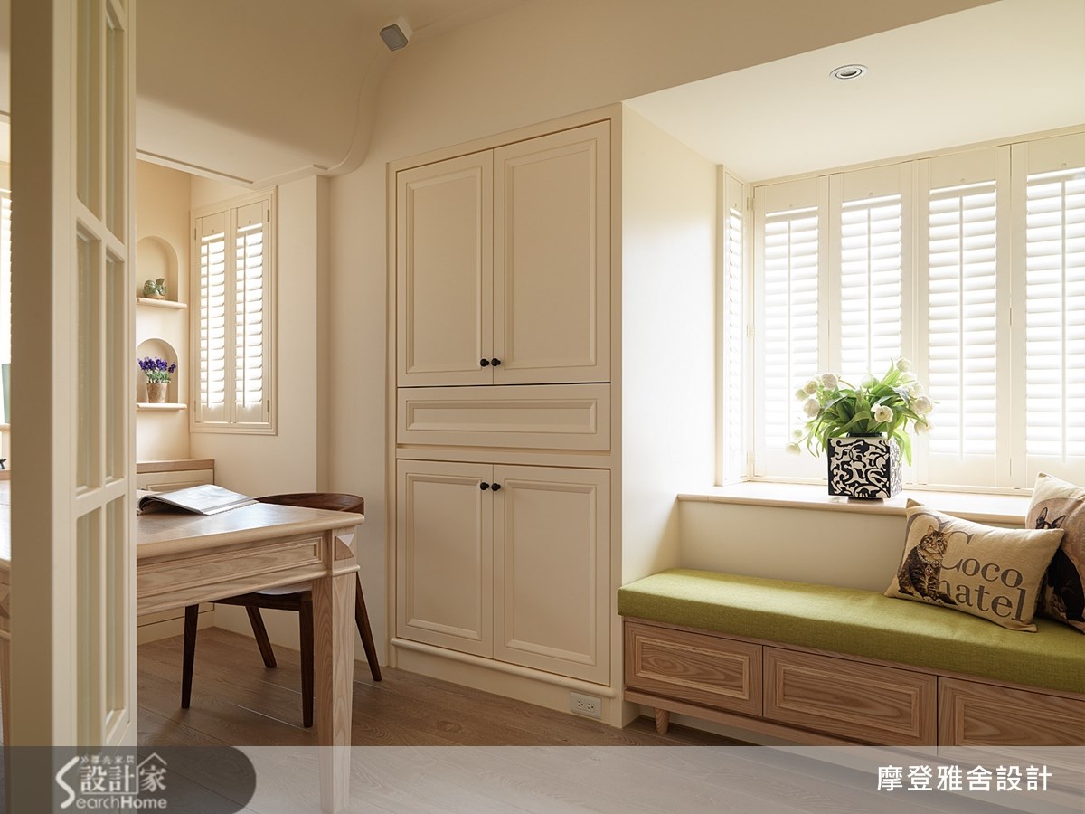 炎夏酷暑,让眼睛吃点冰淇淋吧!跟着小编走进这户原是老屋的116平方米空间,设计师不仅改造屋况,替屋内注入美式元素,打造出清新质感,就像是浑身跟着香草冰淇淋一起融化,是消暑的美宅案例之一。【黑白对比美感,良好采光进驻】走进家中,可感受到充沛的良好采光,客厅的天花线板简单不繁复,带来屋宅的挑高视感,并在墙角采圆弧设计,做出内凹的展示台,柔化了空间线条,吊灯的黑色铁件则呼应单人沙发与墙上相框,勾勒黑白对比美感。【日光洒落,温馨不冷调的好气氛】餐厅采用木餐桌,与厨房间透过清玻门片做区隔,延揽光线也保有通透;书房强化收纳机能,在窗边配置休憩台面,透过百叶窗调节阳光,让人可享有日光浴;卧房添入了储物空间,添入温润木质元素,让休寝氛围温馨不冷调!
