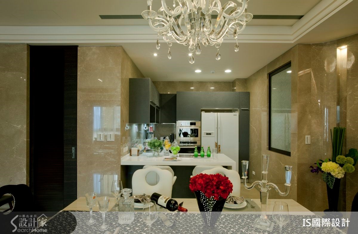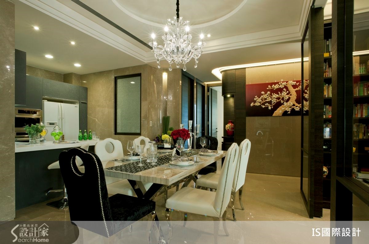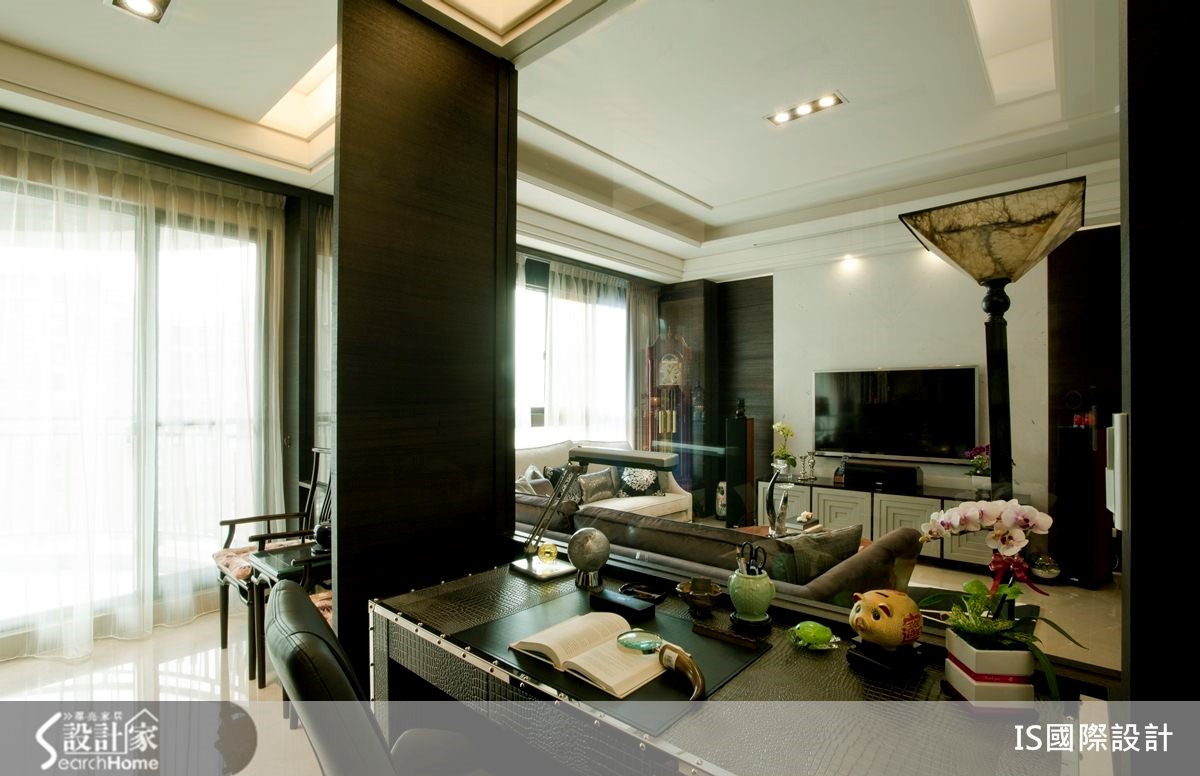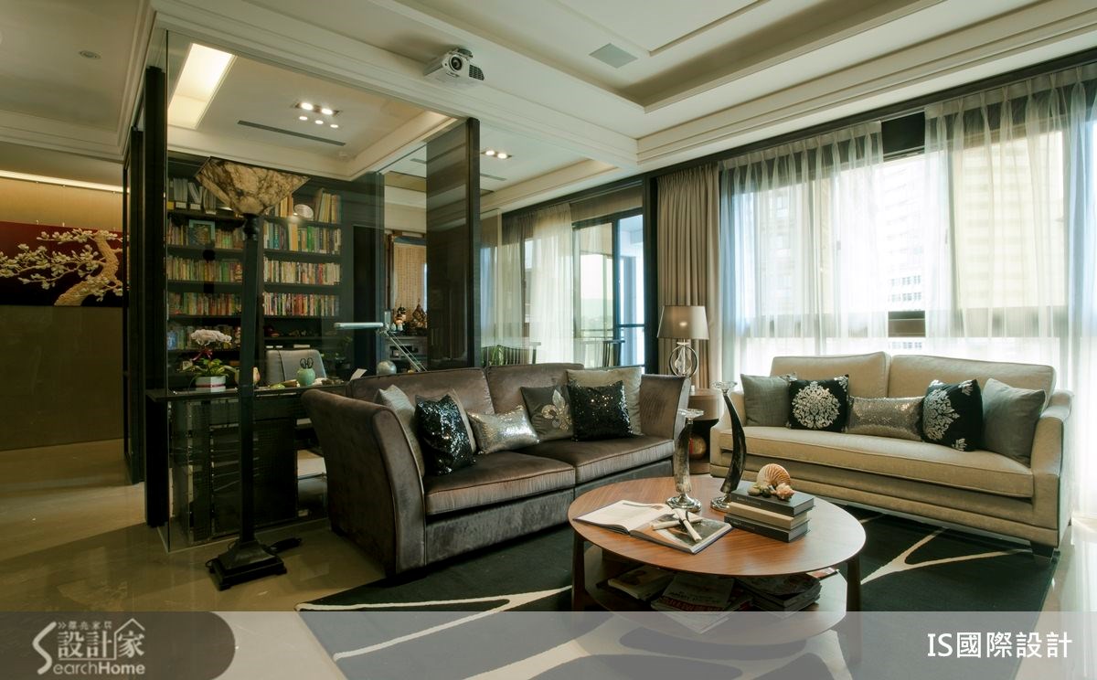 这间162平方米的住宅,屋主希望居住空间能够融入现代与古典元素,展现人文气息。为了满足屋主需求,设计师藉由建材与颜色比例,建构出宽敞对称的空间格局,同时利用艺术化的家具家饰,铺陈出独特的居住空间。【优雅新古典,营造高雅生活氛围】在格局规划上,设计师将162平方米空间规划为4室2厅2卫,让屋主一家四口能够拥有充足的公共与私人活动空间。在客厅中,设计师以多种大理石与造型天花板,再搭配深浅不一的家具与艺术造型的灯饰立钟,展现低调奢华的人文质感。而沙发背后透明的书房,不仅让空间在视觉上更显开放通透,在拥有宁静阅读空间之余,还能与家人互动;餐厅以长型木桌与华丽的水晶吊灯,平衡展现用餐时光的温馨感与优雅情调,一旁的中岛吧台则提供休息小憩的机能。主卧室承袭了现代新古典美学的优雅意象,运用绷皮与深色墙面营造舒适沉稳的氛围,让人能放松疲惫的身心。儿童房的设计则以白色为主,给人清爽的印象,佐上了优雅的紫色床架和书桌,让空间透露着自然而优雅的气息。