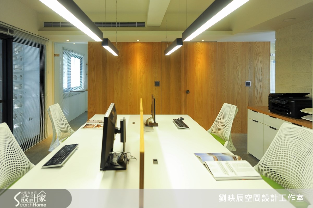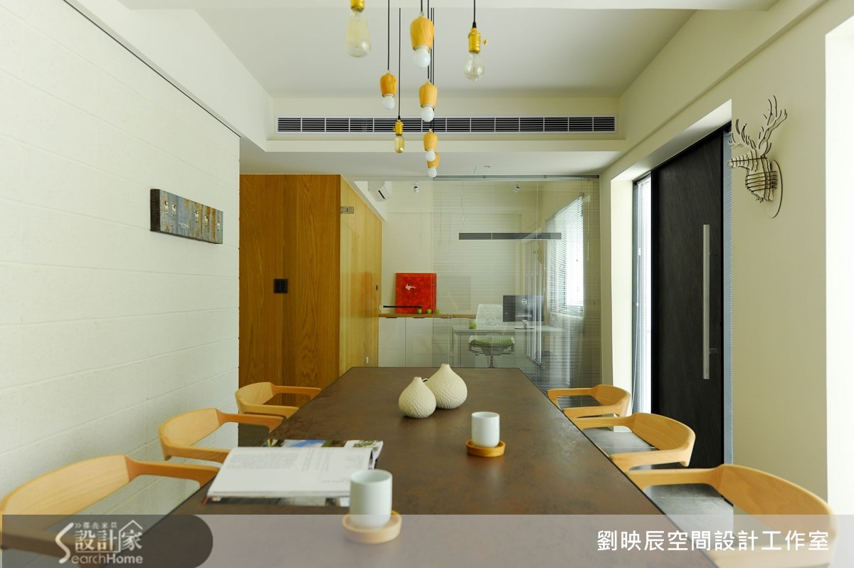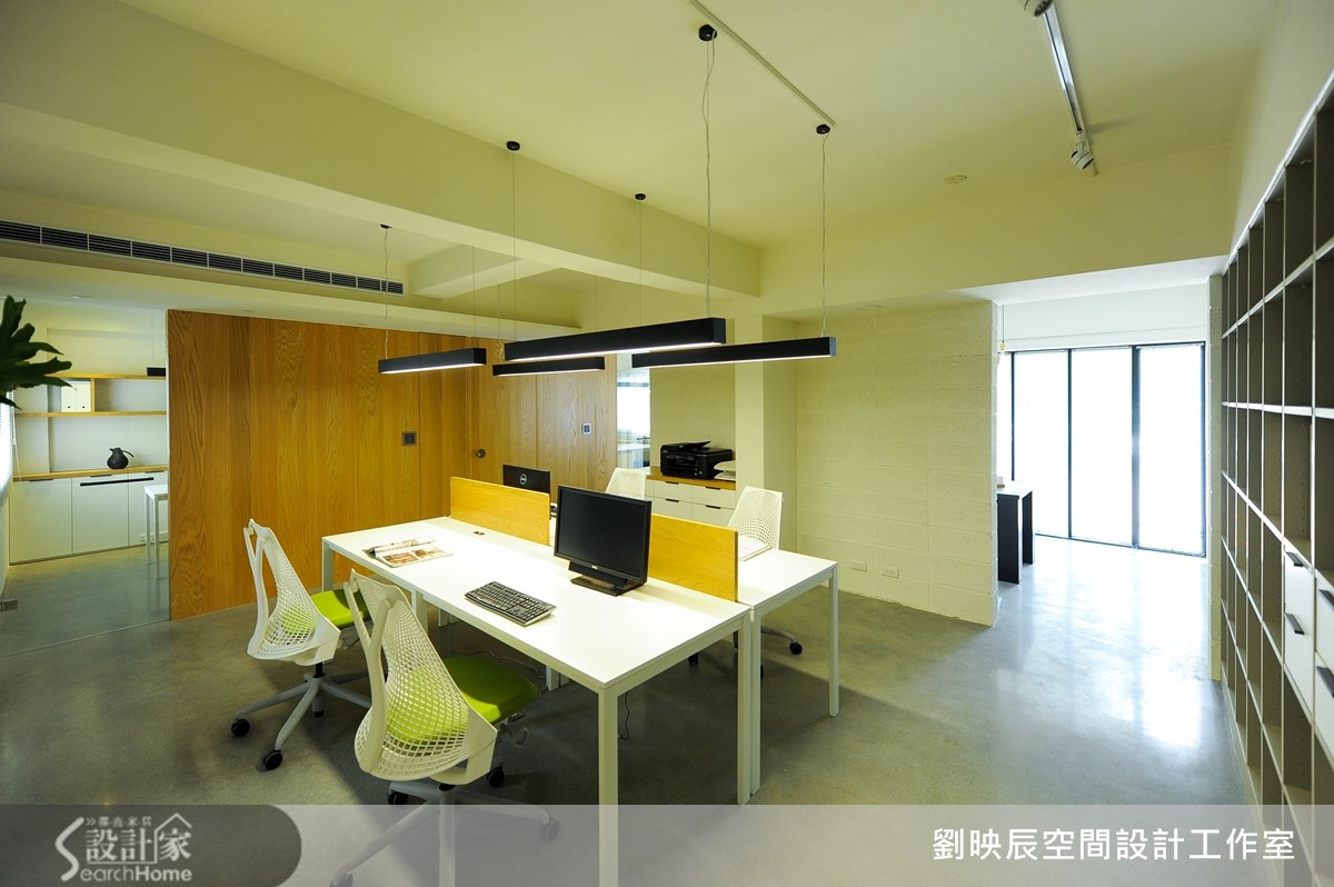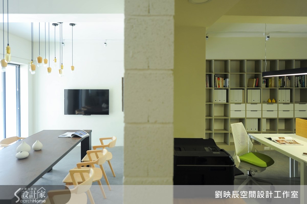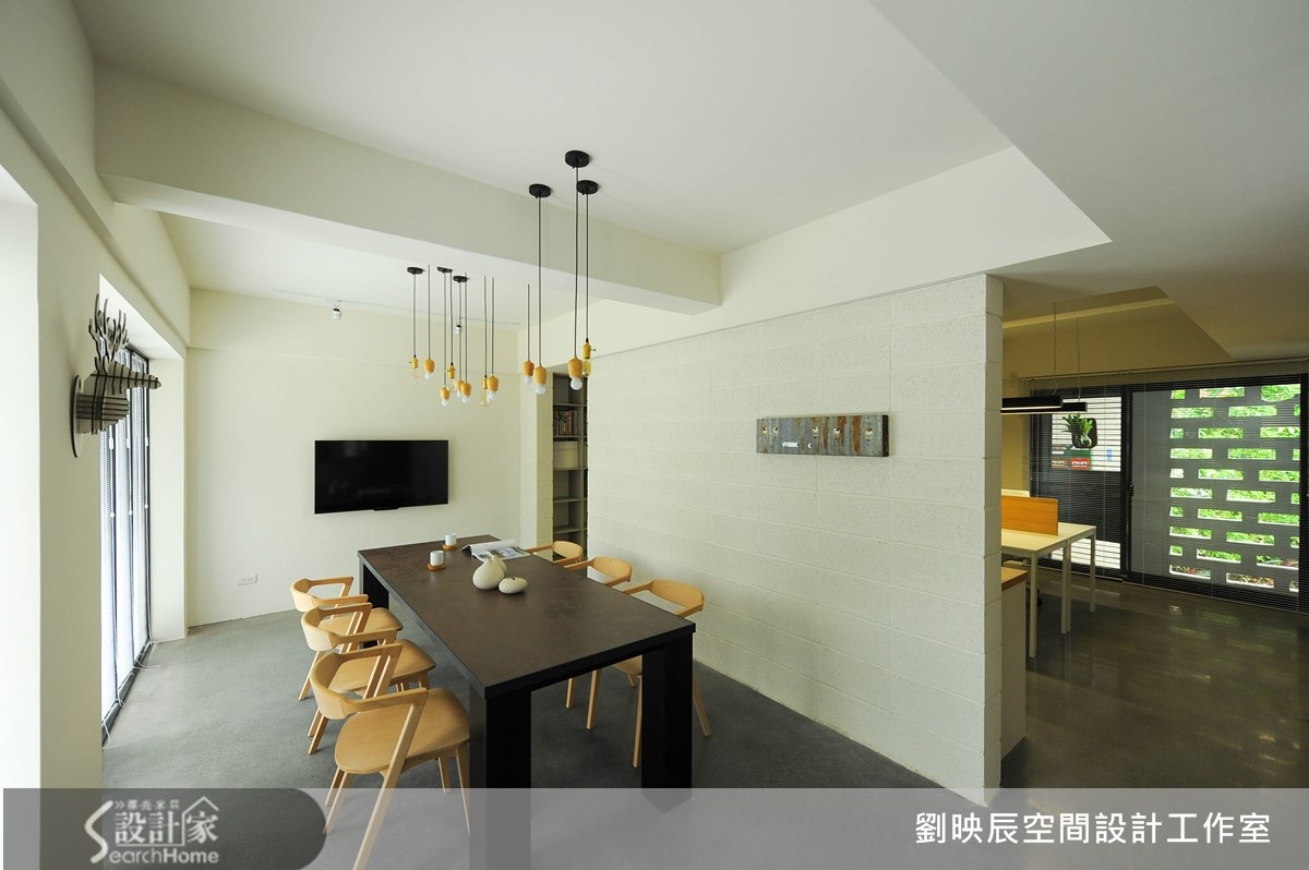 隐身于30年老旧小区里的一楼公寓,原是73平方米3室2厅的住宅空间,经过设计师的巧妙改造,让整体空间跳脱制式的设计,将舒适、疗愈的概念导入其中,摇身变成简洁清爽的建筑与室内设计写字楼。【回字形动线,打造空间流动感】外观洁白的视觉印象,融合低矮围墙与庭院绿意,散发宁静安定的气息;进到室内则使用粗旷与细腻的材料相互搭配,将温润的空心砖搭配铁件,形成混搭的对比美感,并藉由不同地板材质自然的切分出会议、办公、服务三个空间场域。为了让光线和空气在室内流动,设计师采用回字形动线,透过空心砖墙区隔内外,不仅办公区得以独立不受纷扰,双通道的设计也巧妙引入日照和气流,让空间保有通透又更具扩容感。