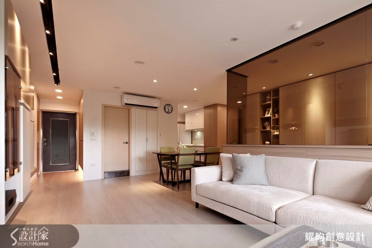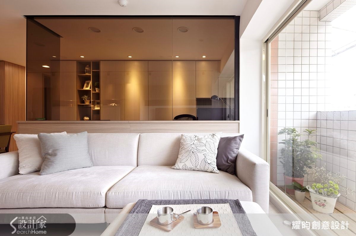 利用空间特性,为屋内打造狭长型玄关,从玄关走入室内,便有种豁然开然的开阔心境。在客厅空间,选用大面落地窗,让阳光洒入屋内,尽览阳台的绿意及美丽造景,展现出悠闲慢活的度假风情。【木建材,赋予空间北欧度假气息】来到客厅空间,电视墙简约的设计,以玻璃与柜体增加空间的收纳性。利用木质及茶玻,作为沙发背墙;背墙后方则是书房,以组合柜来强化书房空间的机能性,中空的柜体设计,减低了视觉的压迫感,丰富空间的主题感。依循长型空间的特性,以长型厨具来搭配,让下厨动线更流畅;开放式的餐厅空间,则以木质长桌呼应空间的设计调性,展现出木纹质材特有的温润感。【简约设计,塑造私领域沉静氛围】为了让卫浴空间干爽好清理,选用清玻璃,让空间显得轻透,干湿分离的设计,提升机能性。走到住卧空间,设计师则以木质柜作为空间的收纳,另搭配白色墙面,以化繁为简的设计,让简约沉静陪伴屋主好眠。除了上述作法,设计师以利用茶镜及木作柜体,在沙发后方打造书房空间;其中,茶玻的采用,让空间色彩更具整体感,也因为玻璃的穿透视觉效果,因而有视觉的放大性,更觉得宽敞舒适。