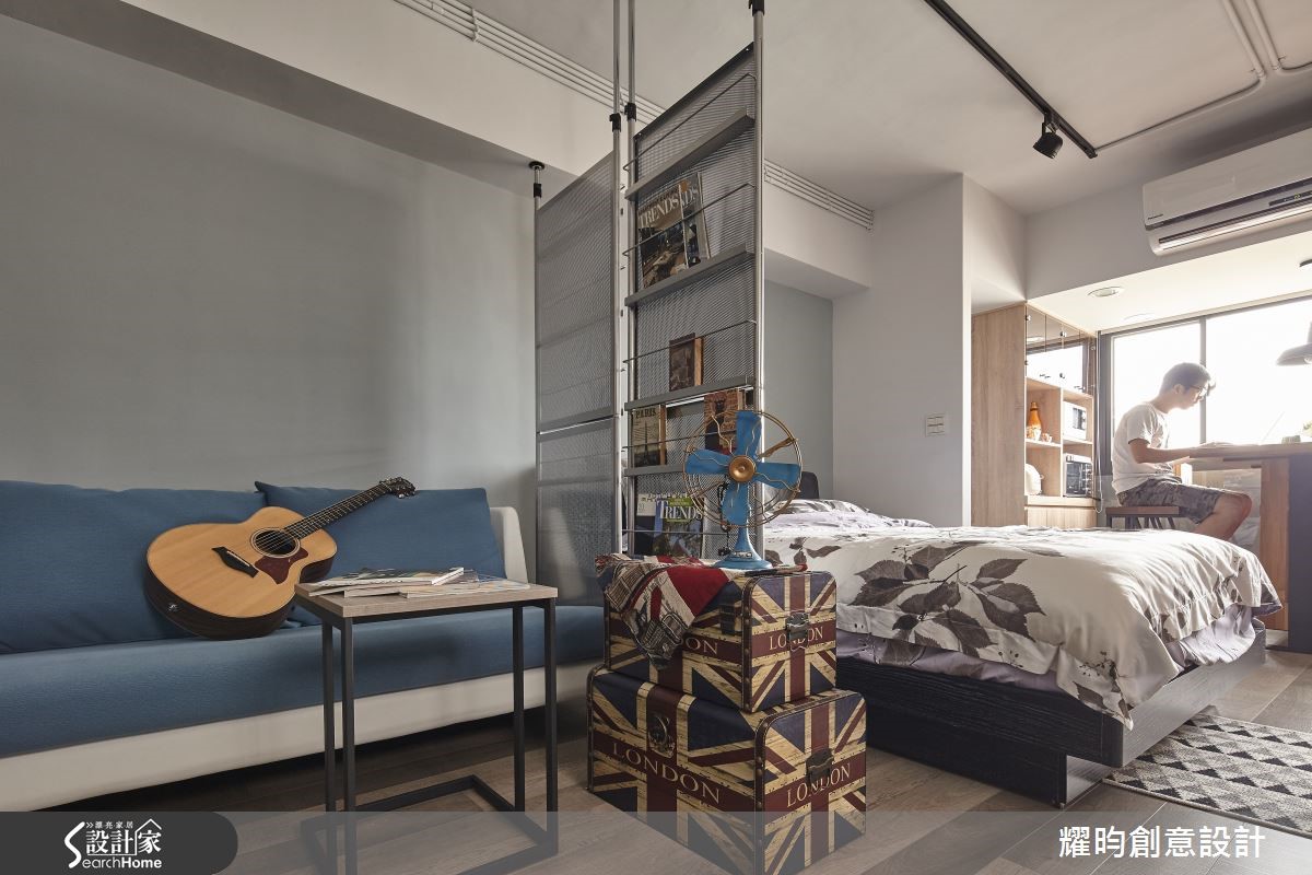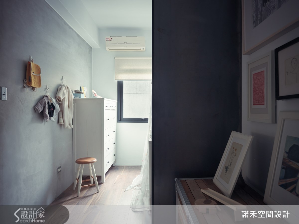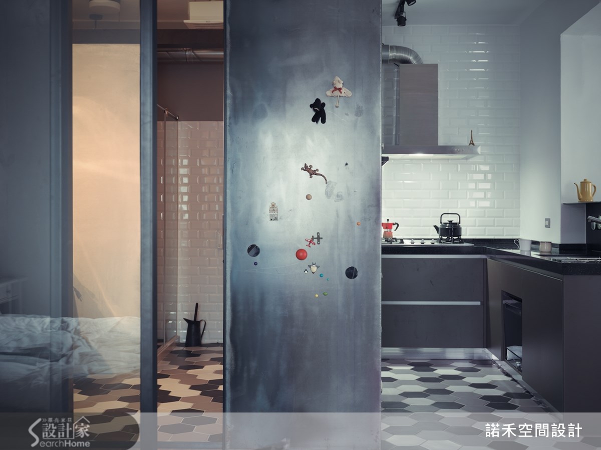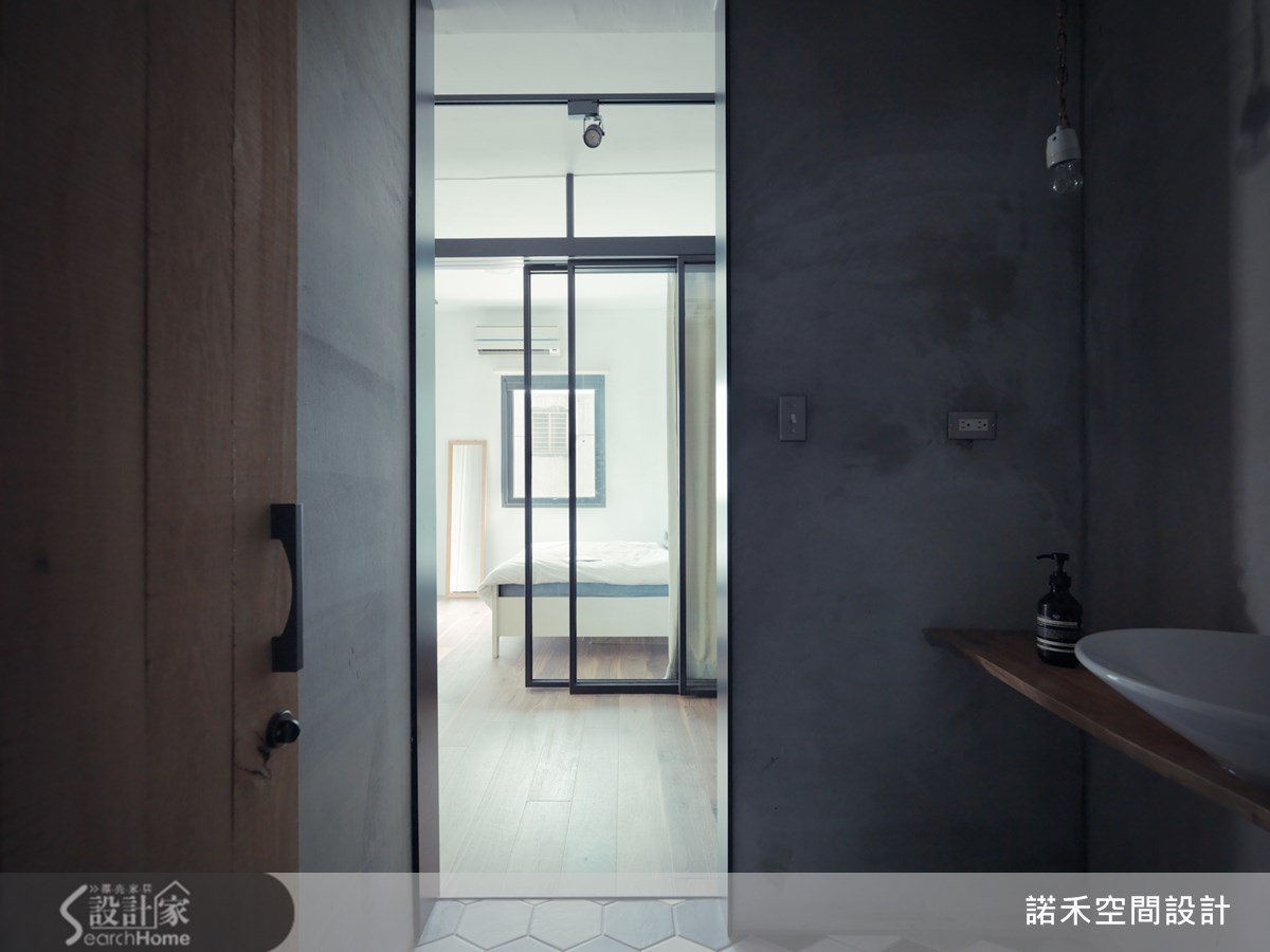 63平方米的loft风格宅,住着35岁导演与太太、小孩,他们的家由老屋所翻修而成,翻修灵感受到日本作家太宰治所撰写的短篇小说"奔跑吧!梅洛斯!"所启发,将故事的构思转化为对空间设计的灵感与活动的适切需求。【重整格局,营造扩容效果】卸下过多人工的装饰,设计师与导演论后,决定以简约感结合轻工业的概念,打造出拥有自由动线的Loft宅。为解决屋内采光阴暗的问题,设计师除格局重整为2室1厅的开阔格局,让通道与机能空间放大,提供孩子安心游玩的居住环境。【旧木回收新生,化身复古家具】客餐厅以白色为主,搭配浅色沙发来提升明亮度,利用回收木材转化成为复古的餐桌与书柜,增添不少温润感受。同时,设计师也利用黑色的铁件灯架,营造出利落个性,能360度旋转的电视,则满足屋主能在客餐厅区域看电视的需求。【采用透明隔断,点亮卫浴、厨房】另外,卧室隔断则采用透明玻璃,使视觉上具穿透感并减少空间的压迫感,使原先阴暗的卫浴与厨房,能纳入自然光而明亮起来,满足了男主人热爱厨艺烹饪的生活习惯。