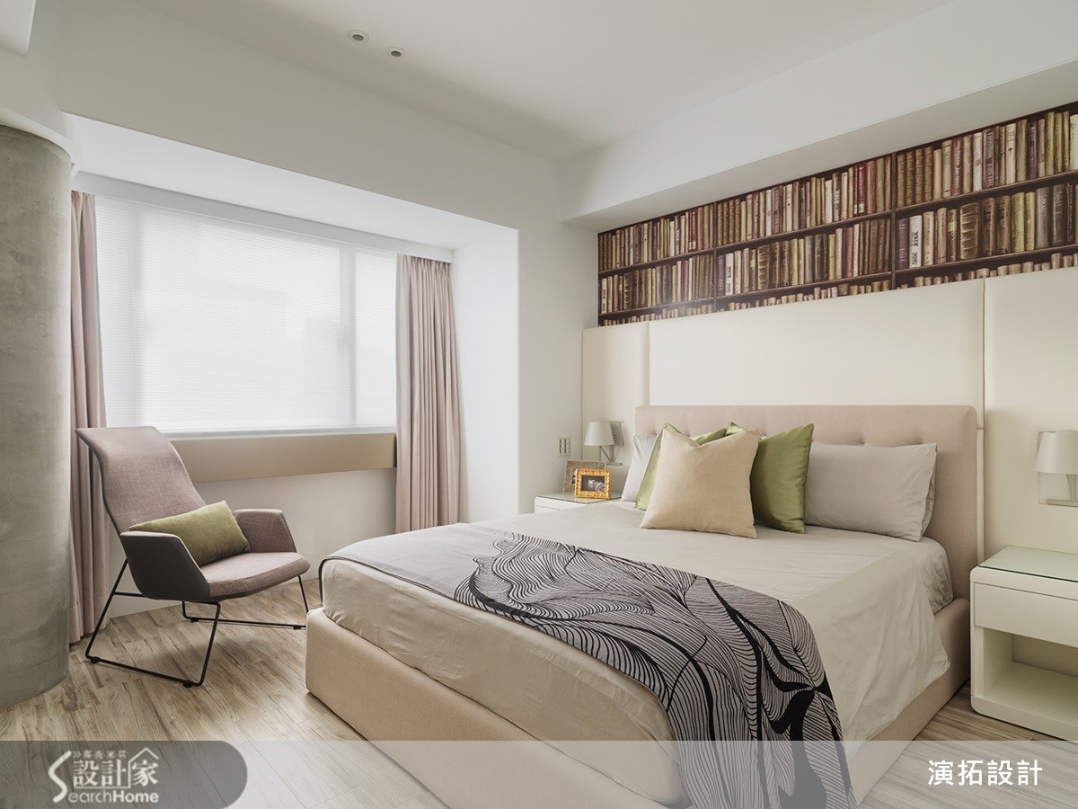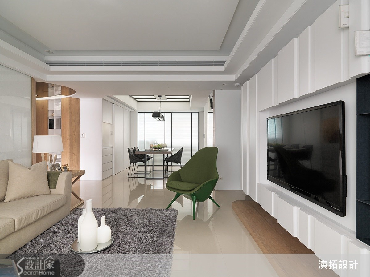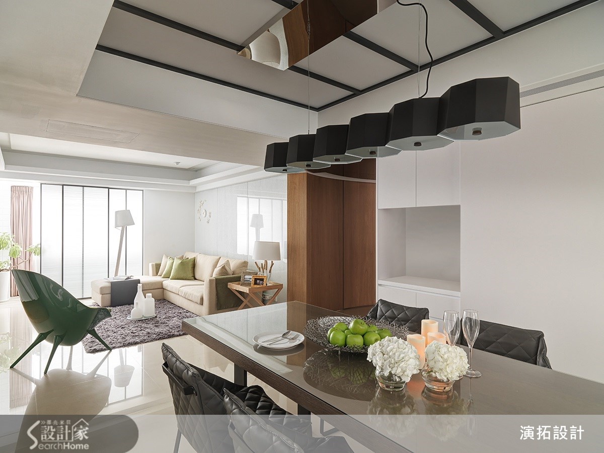 明亮的白色空间、质朴的人文气息,让人丝毫想不到这原先居然是间阴暗老屋。其实能有这样的空间感,是设计师运用了巧思的结果,客厅旁与餐厅外的拉门均使用透光度好的材质,带入和煦的自然光。【玻璃与镜面材质,提升明亮度】运用镜面效果的材质也是屋内更加明亮的关键,沙发背墙使用的是玻璃材质,而在客厅与餐厅间的过渡空间,以及玄关处的上方也利用茶镜的设计,也有扩容的效果。仅仅透过材质的运用,就能让空间感大不同。【椭圆形玄关,增设书籍展示区】跳脱传统设计也是这个案例的亮点,玄关处椭圆形的设计,改变了空间动线,弧形壁面嵌入开放式铁件隔板,运用积木堆栈的方式,让屋主的书籍都有了摆放处,也达到实用的收纳机能,把收纳变成生活风景,让人喜爱设计师的设计巧思。