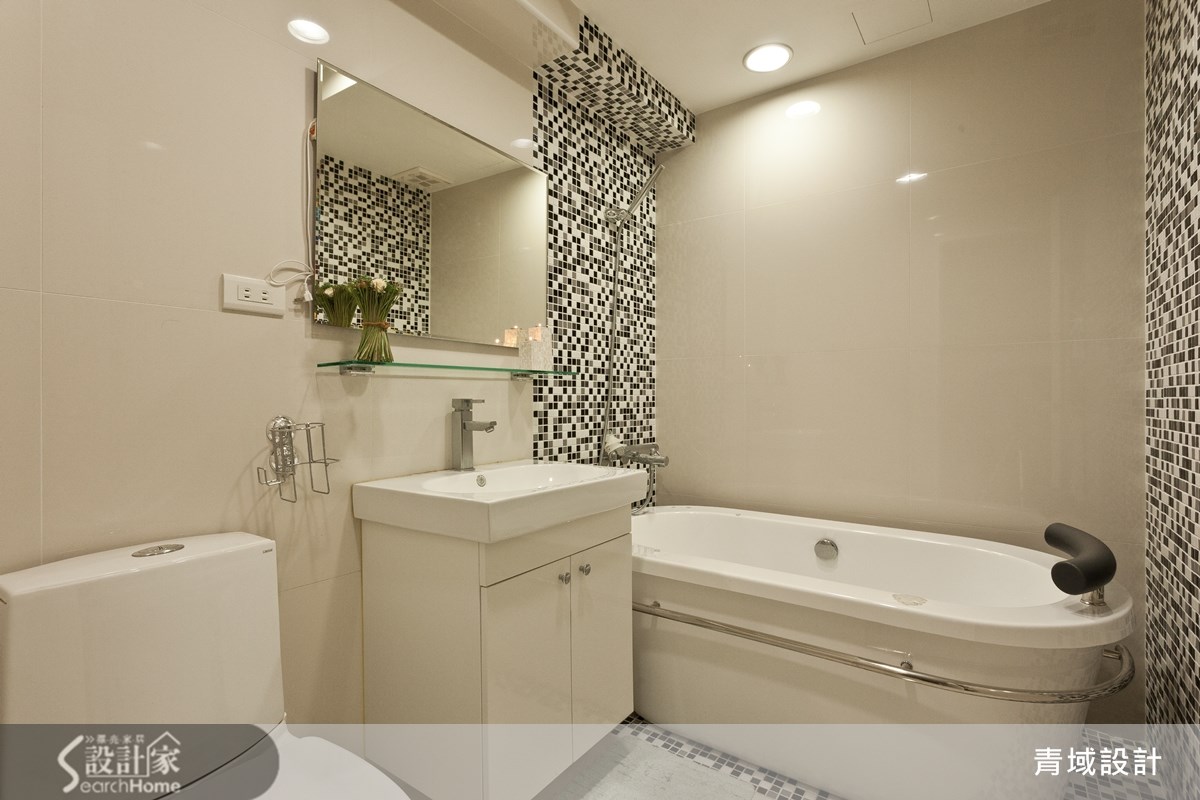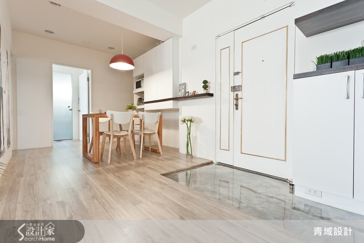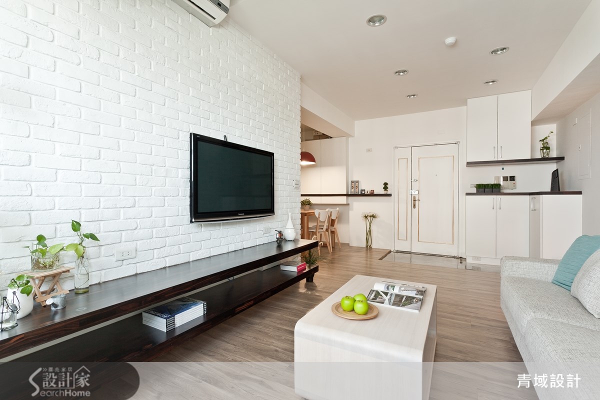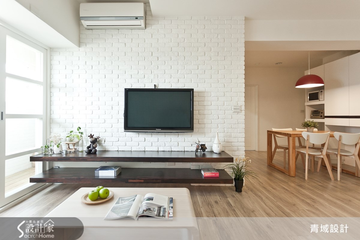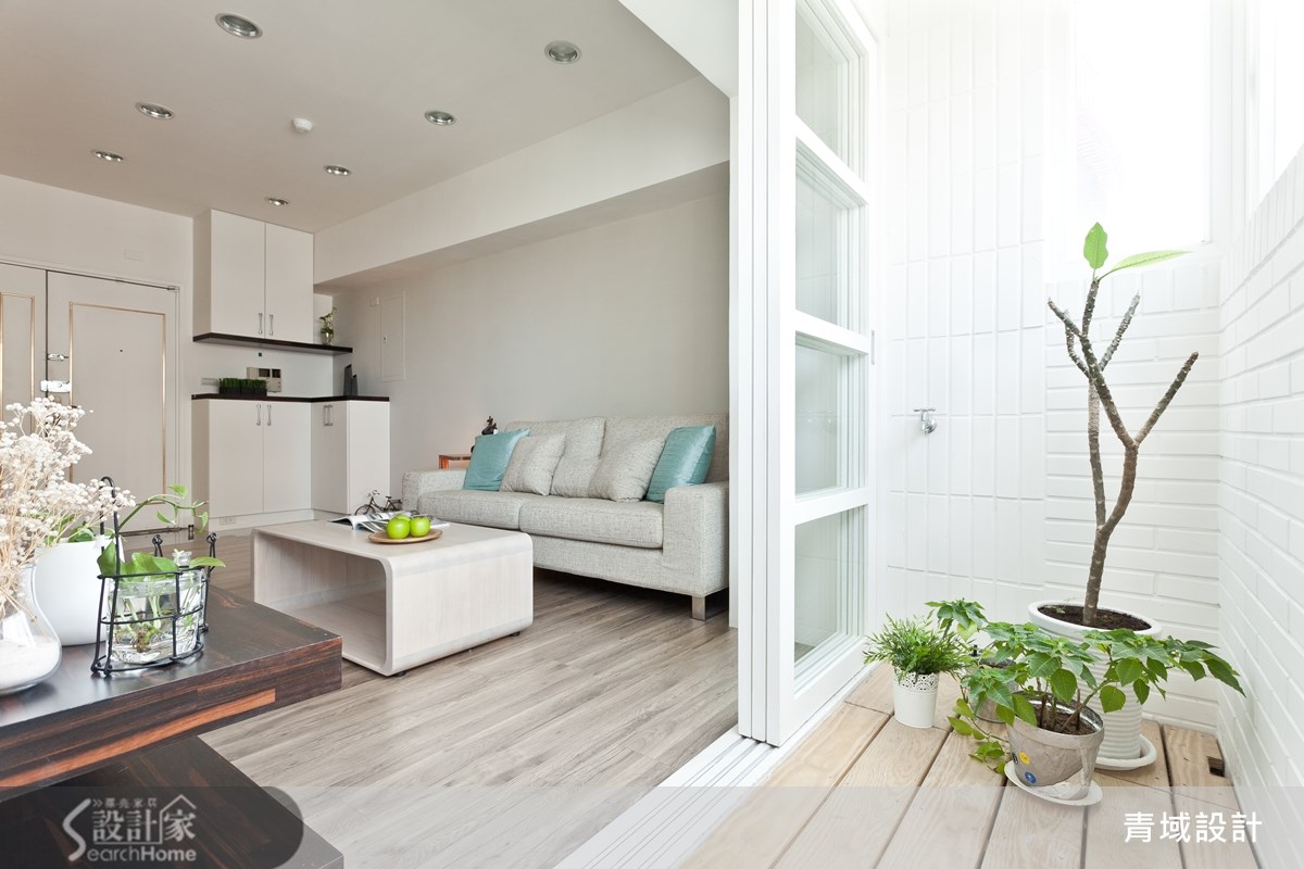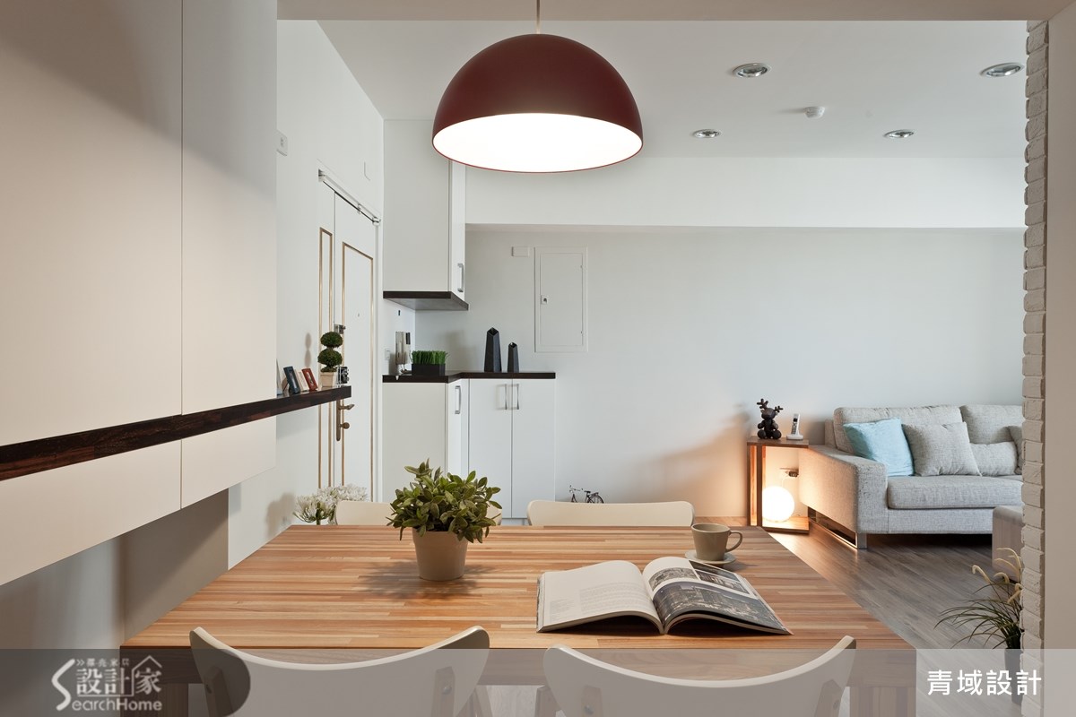 屋宅拥有采光不良的缺点,加上夫妻即将要迎接新生命的到来,希望能让宝宝沐浴在一个明亮简约的良好环境下成长。因此设计师顺应屋主喜好,以夫妻俩喜爱的北欧风与极简风为设计发想,打造出甜蜜又温馨的居宅。【引入自然光,兼具休憩区的阳台】针对室内采光不足的部分,设计师设计大片落地窗,为客厅空间引入了明亮和煦的自然光,阳台空间则铺设南方松,形成无落差的处理,不仅美观又安全,只要走到阳台空间,脚踏木质就能感受到自然的温润感,也能眺望户外的蓝天绿意美景。【马赛克砖增添童趣与时尚感】客厅电视墙则选择文化石,让墙面带有沉静的人文质感。开放式的用餐空间,也因灯光的配置,显得温馨柔和。卫浴空间,则利用黑白马赛克砖,为空间带进了一点童趣又时尚的氛围,并且细心在浴缸边设置把手,实现了安全与设计的巧思。
