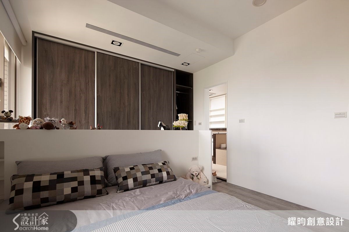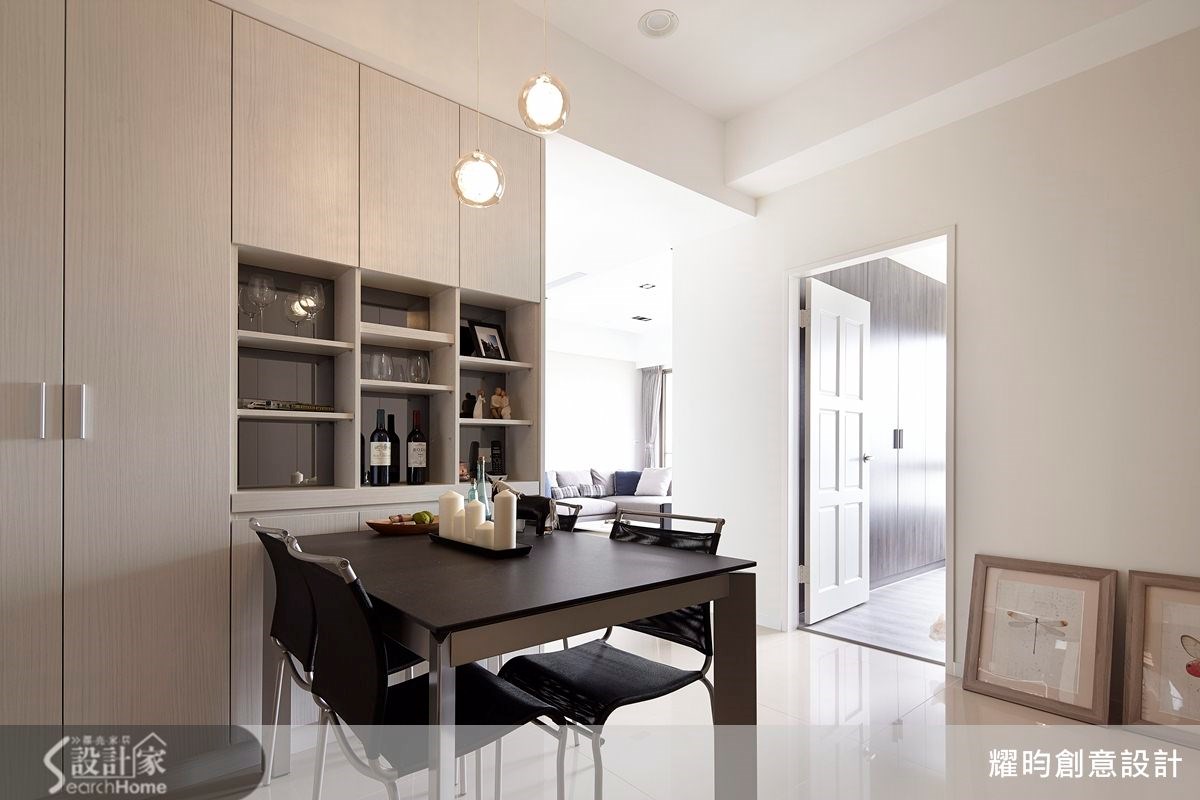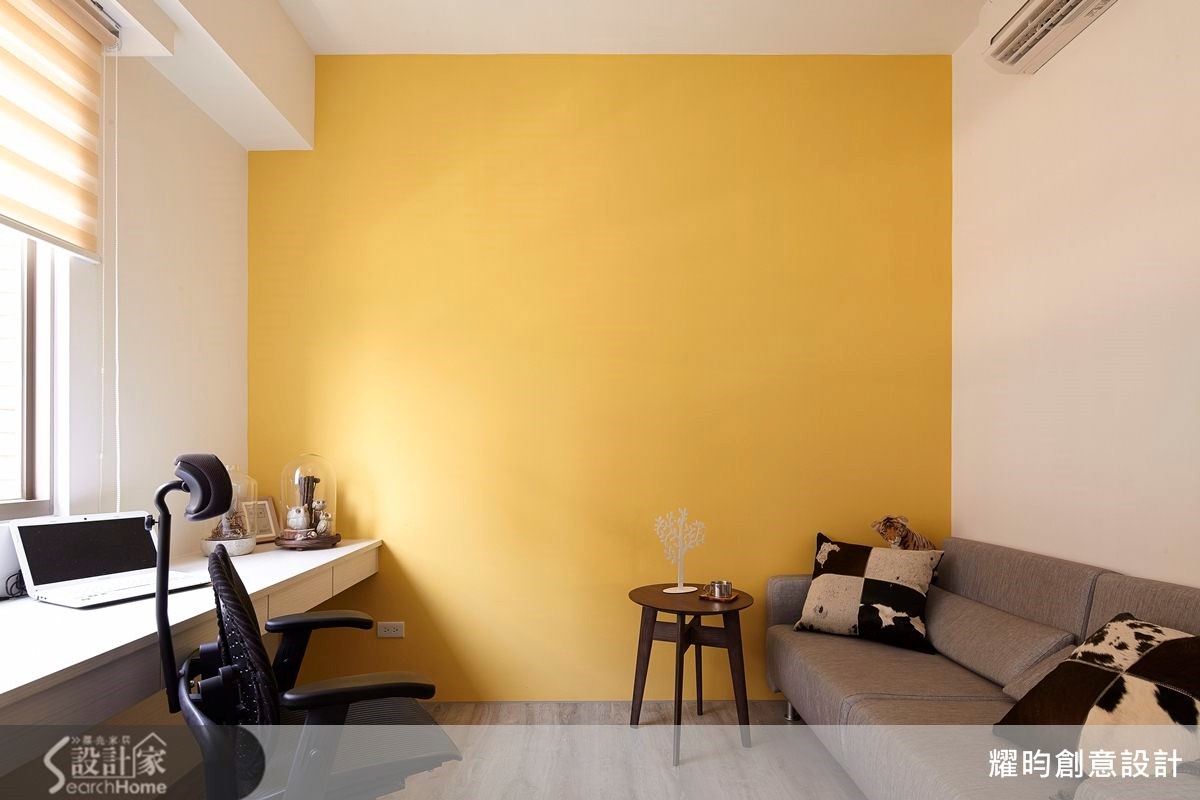 只要些微色彩及阳光,用简单的元素,就可以交织出无尽的幸福感,使空间流动着满满的明亮采光,给人心旷神怡的舒适感受,并在简约风中点缀跳耀饱满的色彩,快一起来看看吧!【引光入室,形塑空间扩容效果】以柜体作为玄关,打造收纳又实用空间,且柜体底部做出了内凹设计,成了开放的置鞋区。客厅有着整面落地窗,并在户外阳台区放上桌椅,室内则引进充沛采光,以藕色壁面带来了温馨氛围,同时达到放大空间的效果。【低矮家具,间接延伸视觉感受】透过低背沙发及矮桌几减少空间压迫,间接延伸视觉的宽敞感,电视旁还配置不规则状的开放格柜,兼具色彩品味与展示机能。餐厅配置许多收纳柜体,并以反射镜面延展视觉也兼顾品味质感,营造出清爽的用餐感受。【重点用色,创造吸引眼球亮点】主卧以超耐磨木地板铺述空间,床头墙兼具展示功能,可摆放收藏品,床头后方配置大容量的衣柜空间,满足了收纳衣物需求。至于书房空间,墙壁以大片的鲜黄作为主调色彩,呈现黄柠檬般的清新、甜美感受,在阳光陪伴下,心情加倍愉快!设计师善用开窗,不仅引入充沛光线,创造空间放大的作用,同时也让窗外的景致成为美化居家的元素,让人在阳光、微风中赏览城市风光。
