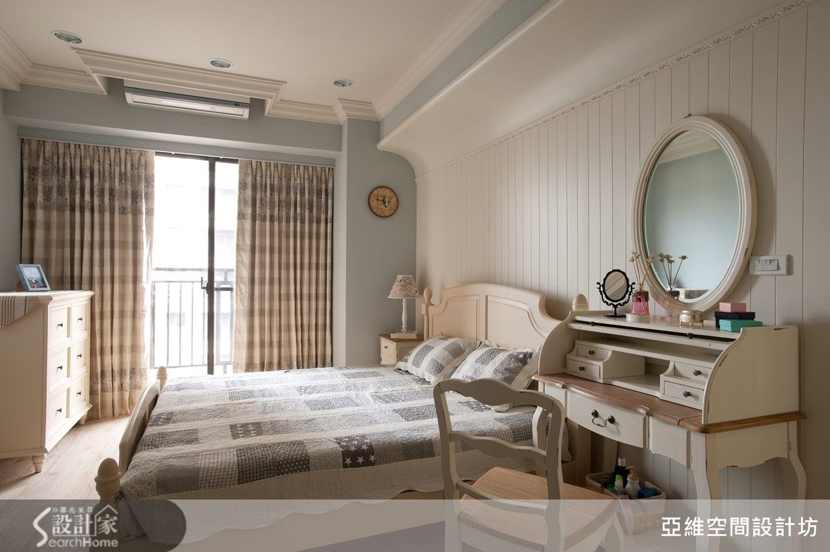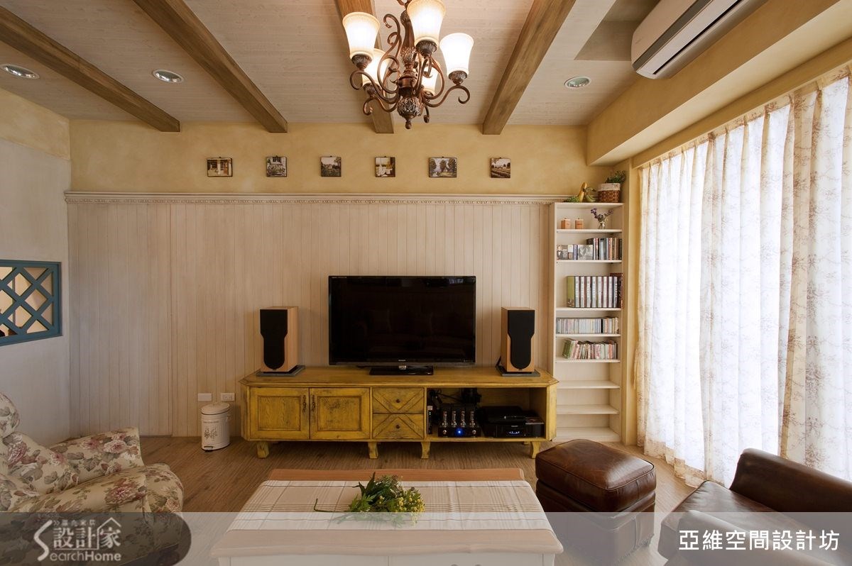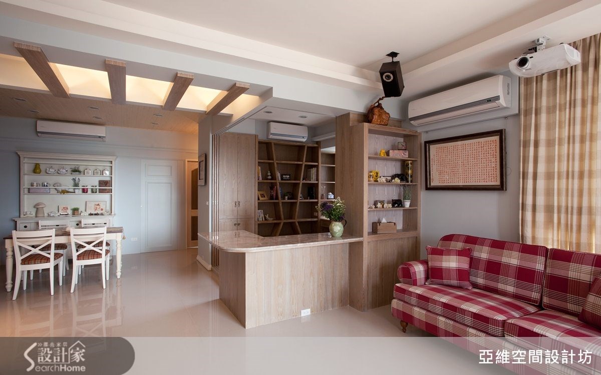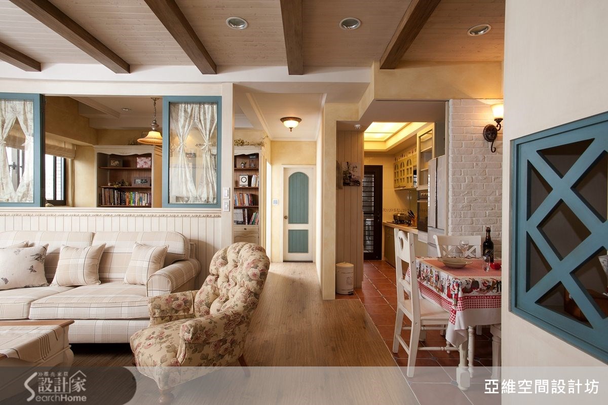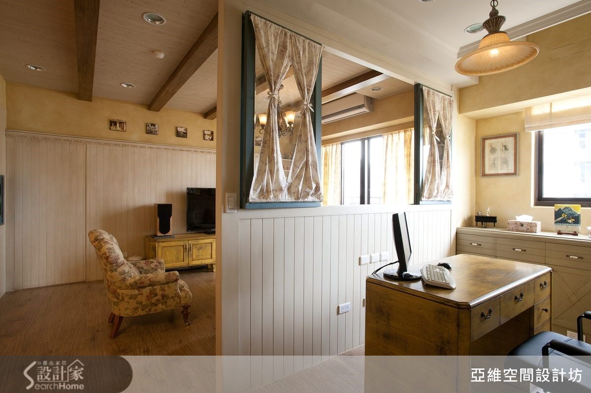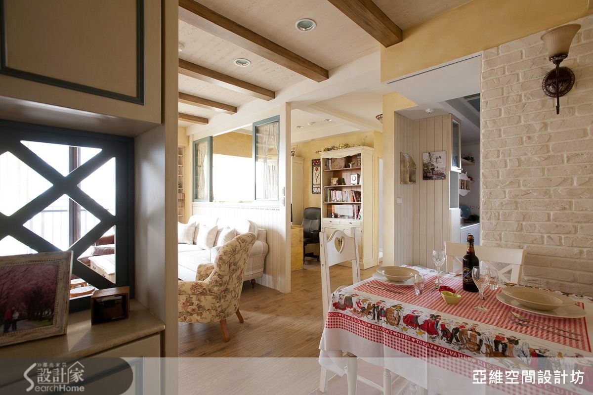 进行设计之初,屋主便提到家具位置可能经常改变,并希望能打造4室2厅,以及充足的收纳机能。仅以83平方米的空间而言,十分具挑战性,负责本案的简玮琪设计师,不但满足屋主愿望,同时更赋予美好的乡村风氛围,进来看看吧!【半开放式空间,保留格局弹性】将原本位于客厅后方的封闭居室,改造为半开放式的木质隔断墙,让沙发背墙同时也具有电视墙的作用,屋主便能依照需求自由调整沙发背墙与电视墙位置,并使让83平方米的居家空间不显狭窄,整体感更加宽敞舒适。【柜体结合线板,挹注乡村美感】而在收纳考虑方面,设计师结合柜体设计与线板语汇,赋予空间充足的收纳机能,同时也藉由柜体造型来表现出乡村风格的美感。比如书房的展示书柜,不但能容纳屋主大量藏书,优雅的造型设计也成为空间中优美的视觉焦点。【清爽浅紫色系,营造舒适感】除此之外,也利用色彩上的变化,赋予空间更丰富多姿的表情,比如卧室区域采取清爽的浅紫色调,搭配造型典雅的木质感床头背墙设计,让居家空间拥有舒适温馨的南法乡村风貌!