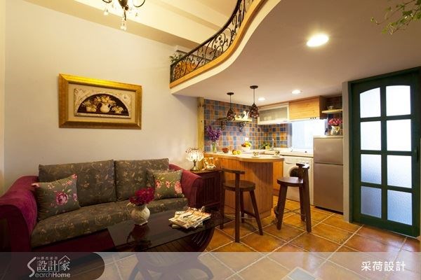 小编带你看好宅 8 坪的套房空间,位在台北车站附近的黄金地段上,是屋主偶尔北上台北的住所空间,由于屋主喜爱乡村风,找上了拥有丰富乡村风设计经验的采荷设计,希望透过设计师的创意与设计,让这 8 坪大的空间,也能梦幻大变身,成为迷人的居家空间。 设计师利用了夹层设计,让原本室内仅只有8坪的空间,立即成为 12 坪的实用空间,为空间运用增添了更多的可能性。像是原本只是简易厨具的空间,设计师细心移至窗边,再搭配上厨具,成为 L 型中岛,除了可做料理台之用,也可作为餐桌或是小吧檯,中岛下方则是电器柜,大大提升厨房机能。 另一方面设计师考量到屋内採光,更改了浴室入口门的位置,并挑选喷砂格子玻璃门片,让光线能穿透,又能增添屋内的视觉丰富感。位在二楼夹层空间是卧室与书房,巧妙运用了空间规划,让公私领域进行区隔,楼梯下方的空间也不浪费,作为电视柜与鞋柜。原本进门入口处的挑高空间,就用来作为衣柜、书柜与沙发区,精巧运用空间特性,细细安排,展现设计师细腻之处,让小空间也能是一应俱全的高机能乡村风美宅。