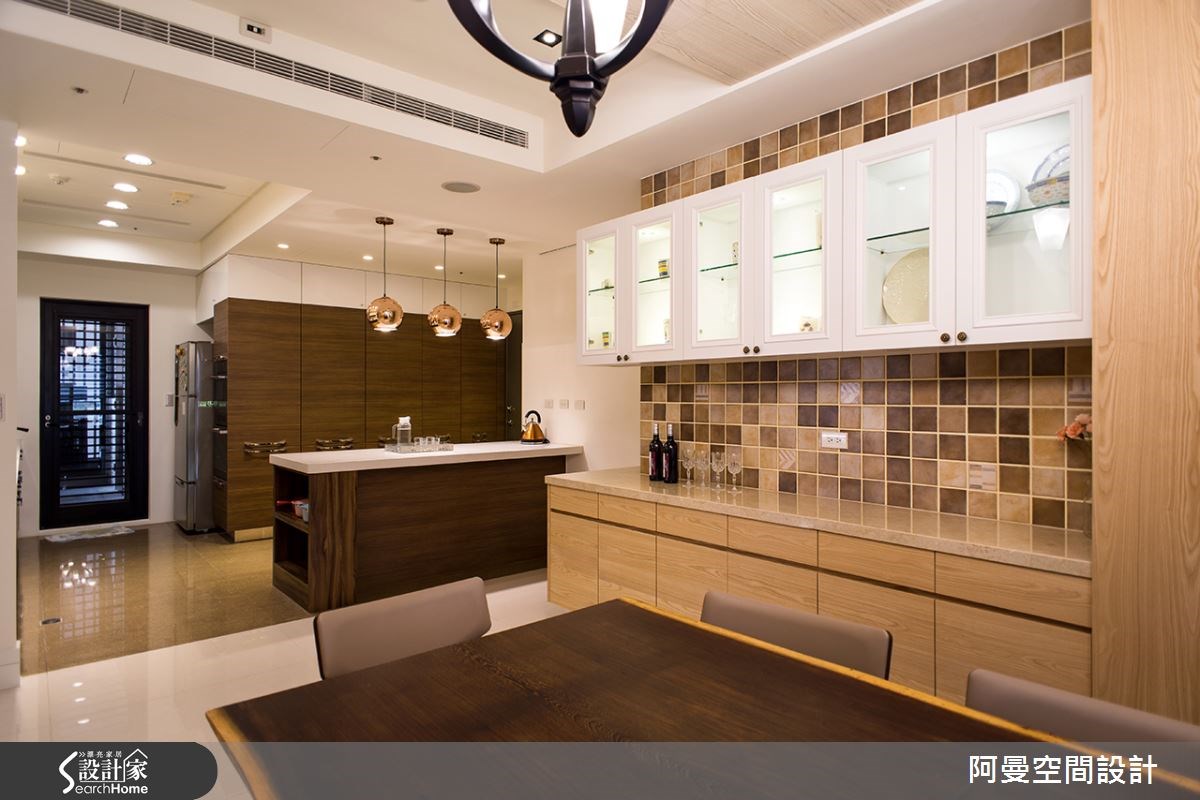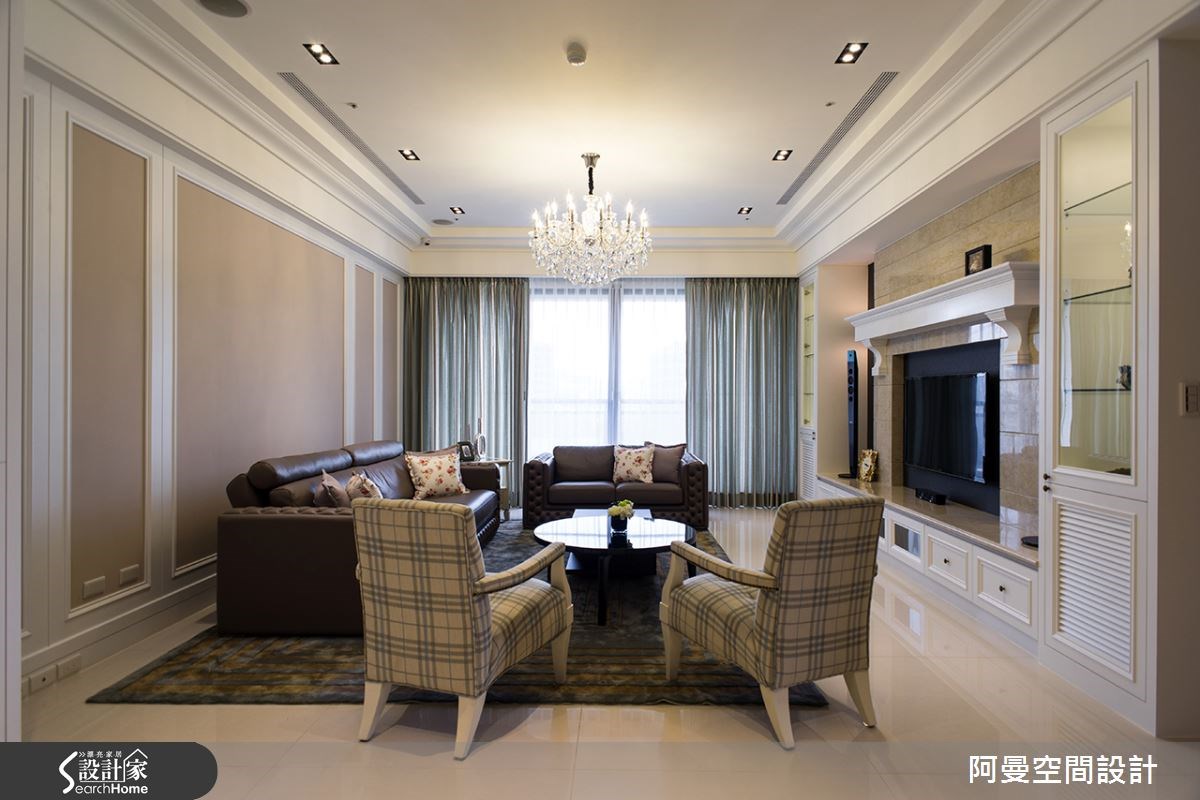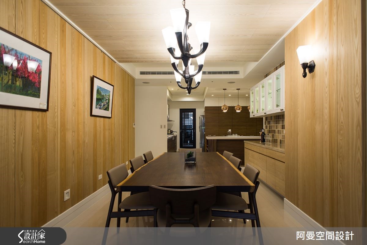 这户198坪的新屋,男主人希望能有书房,女主人则提到偏好柔性细致的空间线条,设计师与夫妻讨论过后,决定以欧洲小镇为发想,创造带有休闲又不失浪漫气韵的住宅品味。【格局重整,开阔屋内视野】这个空间有大梁压在中央,使视觉显得破碎,设计师进行格局重整,并以俐落简单的线条,让视觉简约不繁复,屋内视野景观也能显得开阔。在玄关空间,设计师以栓木钢刷木皮,配上富有变化性的彩云漆,使玄关别具特色。客厅电视柜则以壁炉为核心,堆砌大理石,使客厅彰显出华丽之美。木质纹理的廊道则令餐厨的视觉空间向前延伸,无形中让空间有放大感,复古砖的墙面勾勒欧风小镇的迷人氛围。书房空间则是运用深色木纹,配上收纳柜体,让书房显得有条不紊又内敛。住卧空间的壁面则选择花纹墙纸,让空间显得唯美,再以白色柜体来加强收纳机能,更烘托出优雅舒适的情怀。