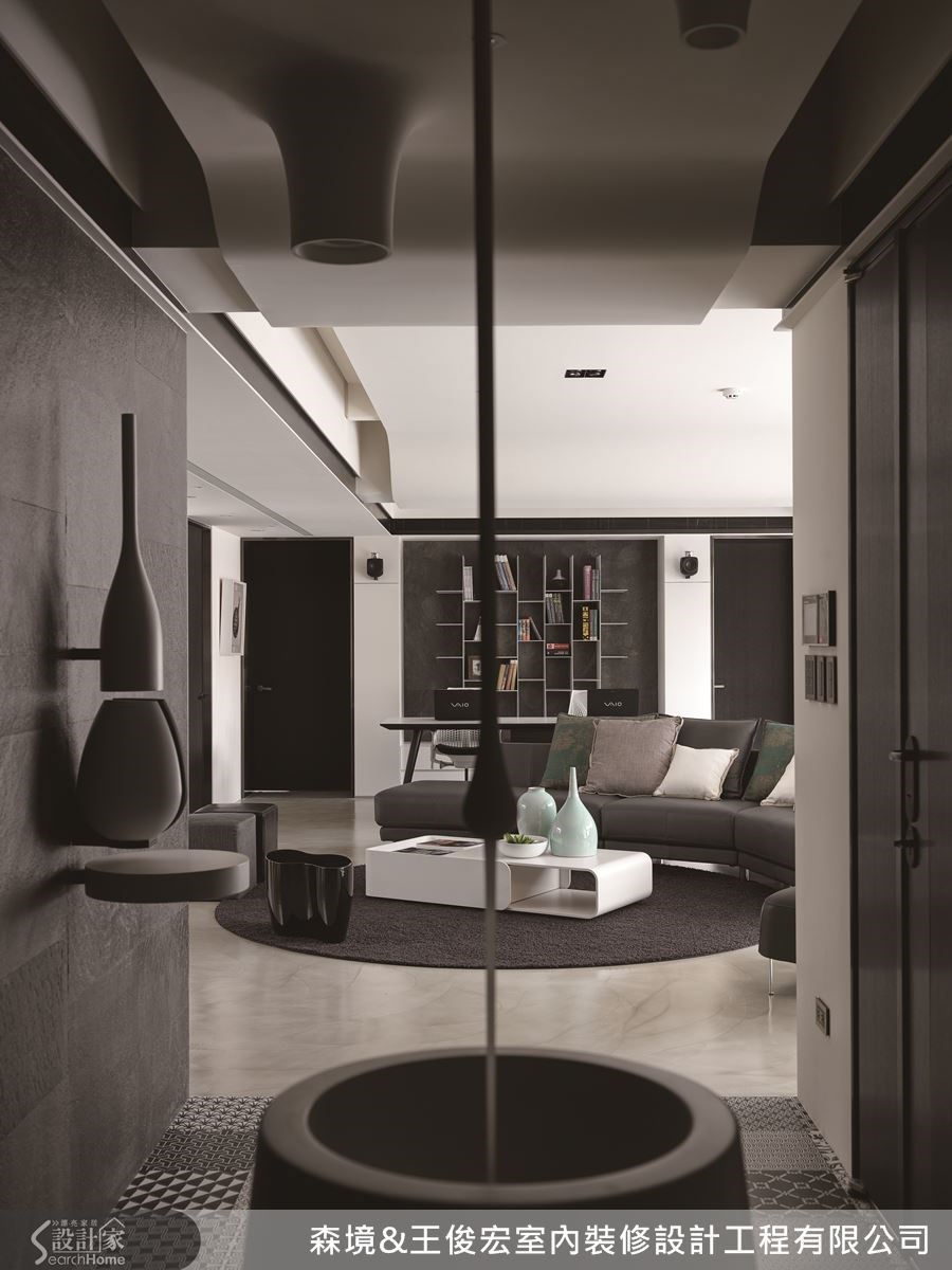 着重居家娱乐与生活享受,是金字塔客户空间设计的关键。与专业音响厂商配合而规划的重低音箱配置,恰如玄关入口处的装置艺术,显得精致大器,让实用机能化身为美型空间。