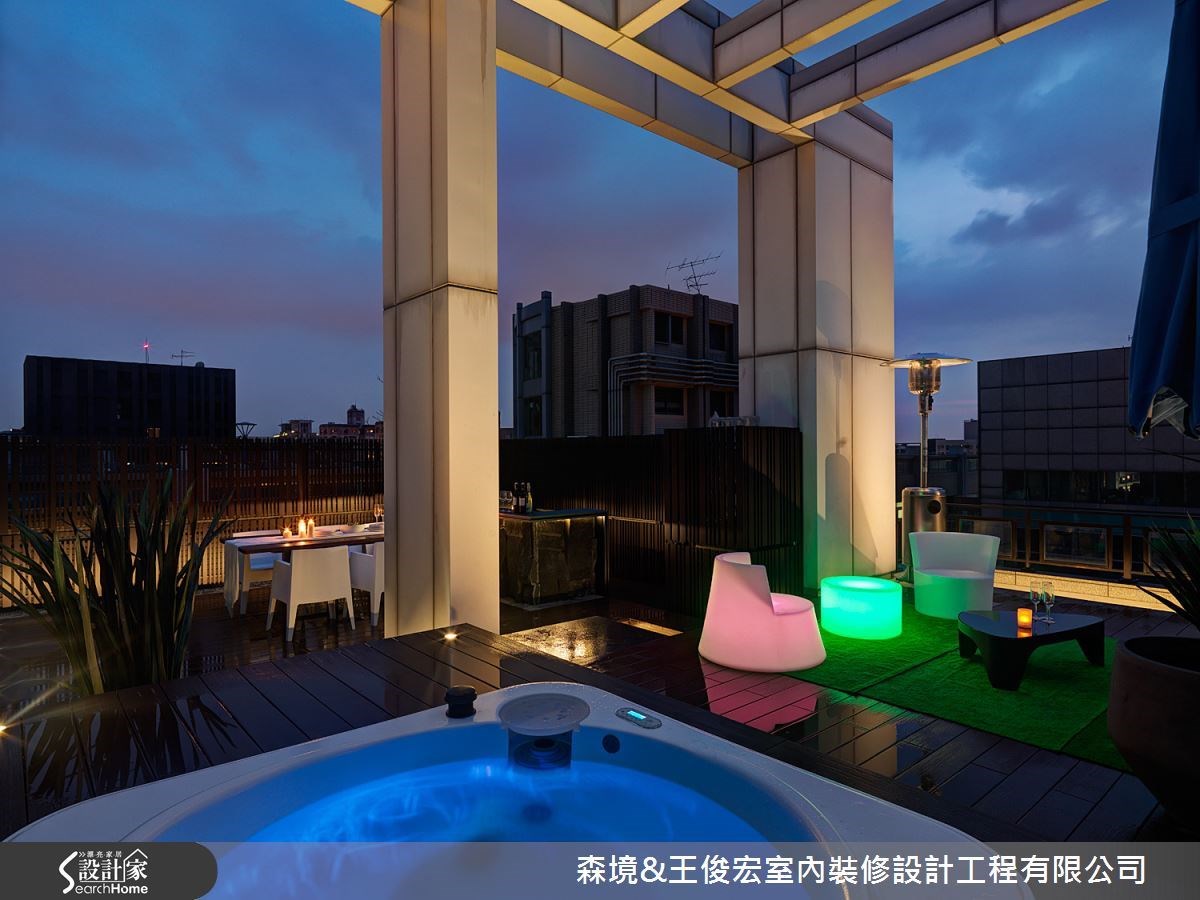 顶楼偌大的开放空间,则是举办露天家宴的区域。设计师透过户外家具与灯光配置,在这片开阔的画布上挥洒创意,营造如梦似幻的欢宴场景。而特别打造的温水SPA区,则让空间显得更舒适惬意,也提供在夜光下洗浴的特殊体验。