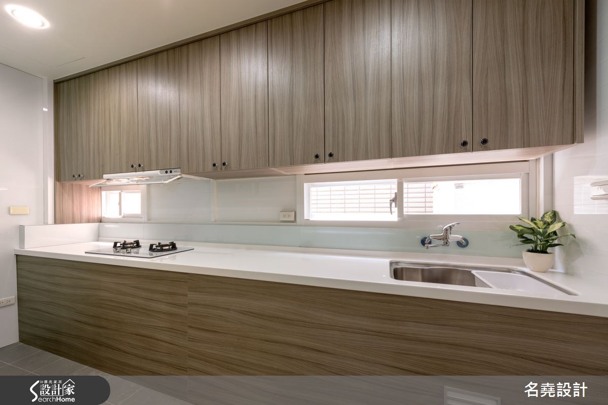这一间93平方米的中户型,因家中孩子长大后需要独立的私人空间,所以设计师打造出可随时变换布置的小孩房,满足居住需求。并刻意保留了磨石子地板,呈现出居家的怀旧古早味,打造出专属一家人的温馨记忆。 【不做满的隔屏,轻盈又透光】走进大门,玄关一侧配置木质柜体,满足收纳机能,透过木皮、磨石子材质的交织,传递出质朴温暖的居家感受,并在大门旁加装雾面玻璃隔屏,透过上下不做满的设计,用以区隔餐厅,也能保有光线流通。餐厅配置一张木质长桌,营造温馨用餐氛围,开放式悬吊柜体则满足了居家收纳机能;同时,设计弹性推拉门作为餐厅和厨房之间的界定,阻绝了油烟,带给家人健康的用餐环境。在收纳方面,客厅电视墙周边结合柜体,提升空间的机能性,营造出小家庭的简单温馨。厨房空间则简单而清爽,采用一字型的厨具设计,节省不少空间,也配置充裕的收纳机能。
