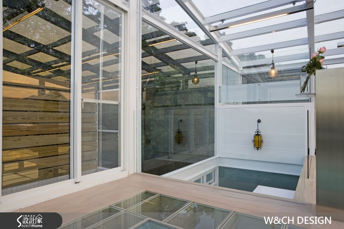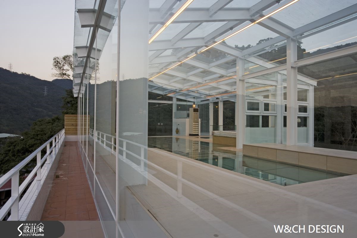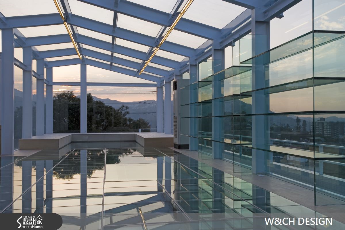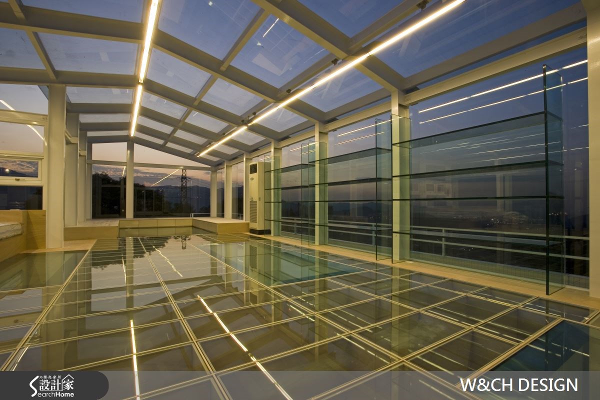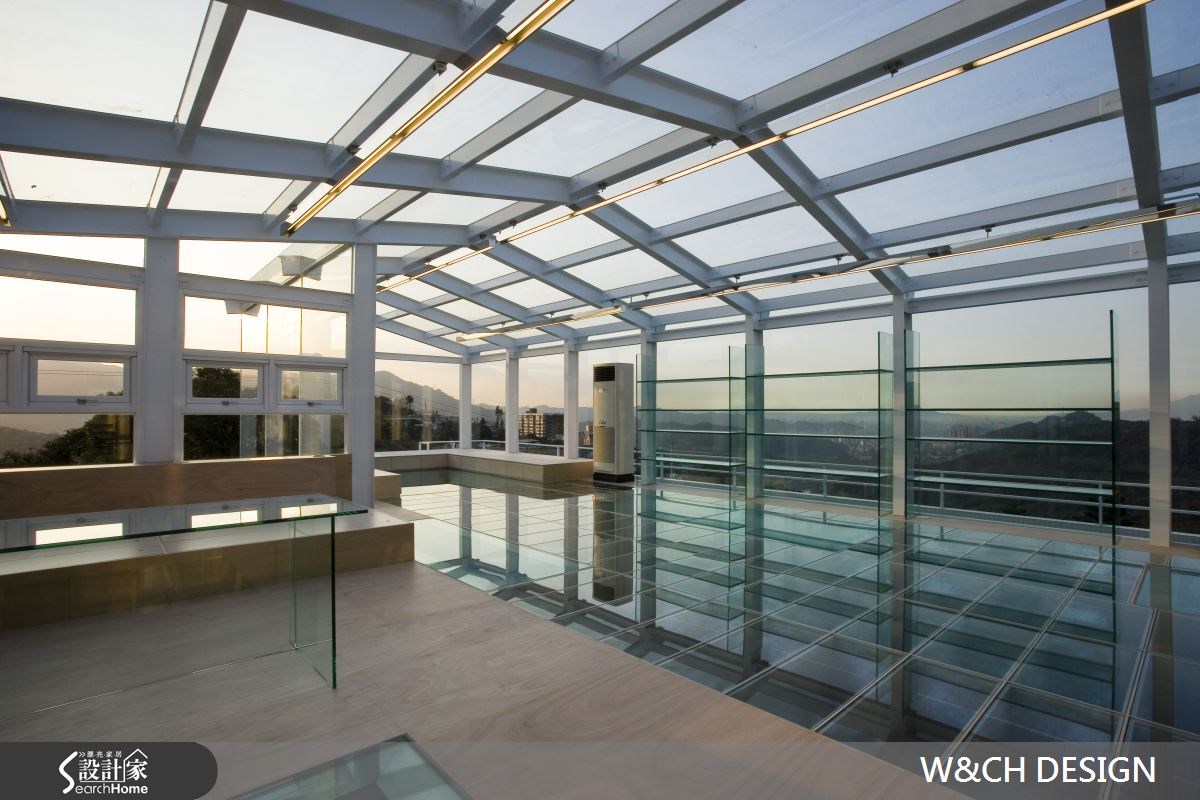 这是房龄逾15年的老屋建筑,在进行改造之前,不但管线老旧不堪使用,同时还有漏水、壁癌等问题,而且空间的格局规划不符合屋主的使用需求,都是需要改善的装修重点。【钢构及玻璃拼接,空间透亮自然】藉由这次的改造机会,喜爱大自然的屋主企盼实现梦想的玻璃景观别墅,让建筑物与所在的山林美景合而为一。此外,由于屋主拥有大量藏书,同时希望能以玻璃材质创造实用的书籍收纳机能,让空间在清透轻盈的氛围里满溢人文书香。 为了满足屋主的梦想,设计师仔细评估屋案所处环境、施工动线与建筑本身的结构限制。在注重施工安全的前提之下,运用优良施工技术及丰富装修经验突破这艰困的任务,甚至出动大型吊车来克服施工动线不良的问题。 特别的是,以钢构作为稳固的结构支撑,别墅的6面几乎均为玻璃材质,能让自然的采光及山林绿景与空间合为一体。沿着纯白色的楼梯慢慢攀上顶楼,由透明玻璃组成的空间展开一望无际的宽阔视野;而在玻璃地板的下方,则是一格一格的藏书窖,好似酿藏了一屋子醉人的书香,完整实现屋主心目中理想的人文居家。