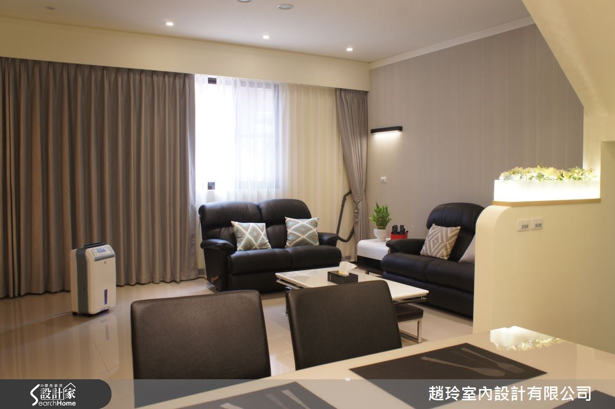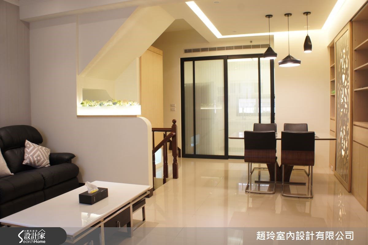 264平方米的四层楼别墅,是从事教职业屋主一家五口的温馨居所,当初交屋时,发现房屋内多有瑕疵,所以找来设计师改造空间,女主人较偏爱新古典风格,而孩子们则喜欢乡村与简约感,于是设计师以混搭风设计打造居宅,并佐以光源设计,让大宅在高雅之中释放温馨感。【透过高雅的光源,营造温馨感】公共空间采开放式格局,透过天花板梁柱切分出客、餐厅区域,但以一整面木皮立面墙,自电视墙延伸至餐厅墙面,串联起两个空间,并同时于墙面加入收纳展示机能,配置镂空的黑色雕花柜体门片,注入高雅的居家质感。卧房以藕灰色为主,两侧对称墙纸搭配典雅壁灯,让室内充满质感;而顶楼的女孩房则在床头墙上方加入壁灯,与墙上嵌置的典雅图腾互映成视觉焦点,让卧房显得小巧精致,并在床侧配置收纳柜体与书桌,搭配一旁铺木地板的小阳台,让人可纾压放松。