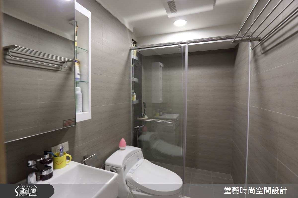 这间99平方米二手房,整体格局设定为三室两厅两卫,以符合屋主一家四口的居住需求。而在风格美感的经营上,则以休闲乐活居家为目标,打造全家人都满意的舒适好宅。 【舍多余隔断,藉木皮增添自然】在独立的玄关区域,设计师安排了容量充足的收纳鞋柜,以维持整洁的环境。推开大门来到空间内部,以开放式手法完整串联客厅、餐厅与厨房,让空间两端的采光与通风可以保持通畅,同时也让整体视觉感更加宽敞。为了营造休闲居家质感,设计师选择以钢刷梧桐木皮打造客厅背墙,并利用沉稳的灰黑色系石材构筑电视墙面,展现自然又稳重的空间氛围。客厅临窗处还安排了休憩飘窗,兼具扩增收纳作用。餐厅墙面延续了木材质元素,并以黑色烤漆玻璃丰富空间表情,而厨房与餐厅之间则以U字型流理台延伸出吧台作为区隔,让家人可以共享用餐与烹饪时光,情感更亲密也更凝聚。
