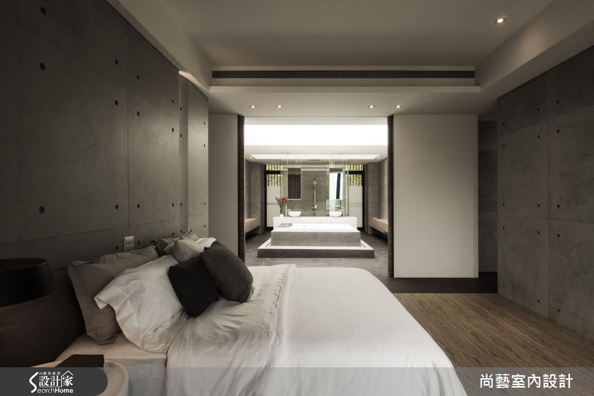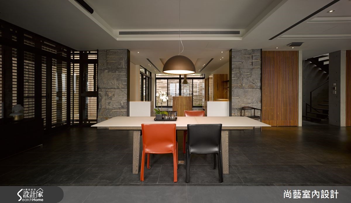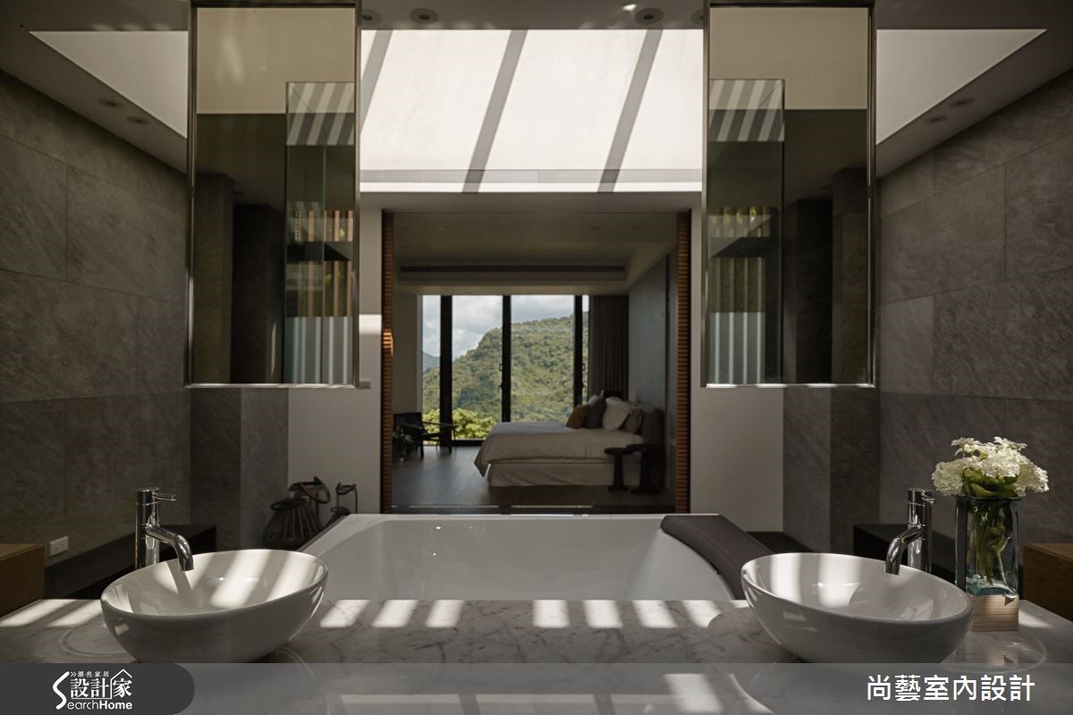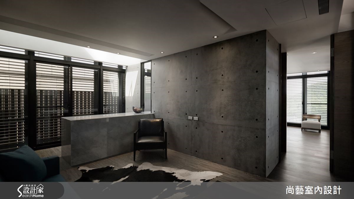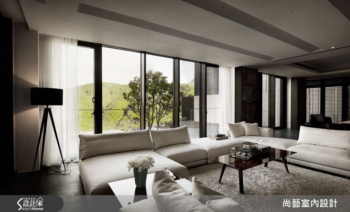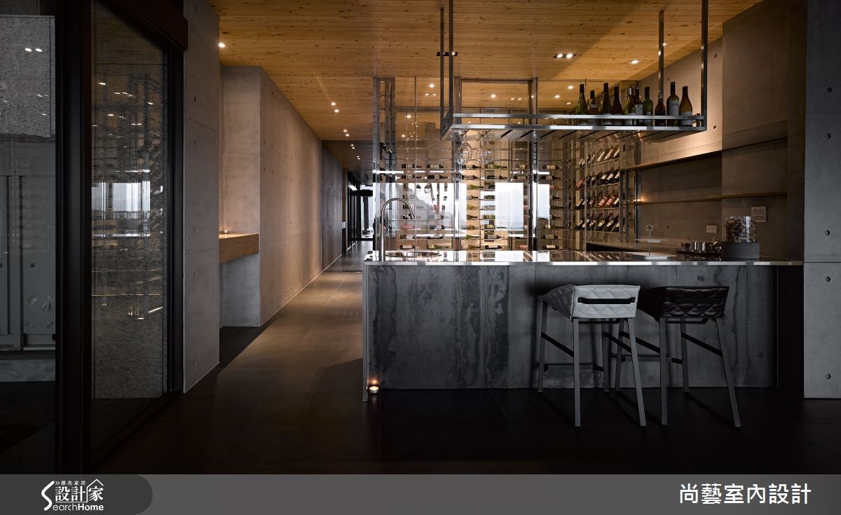 909平方米的空间,视野景观宽阔,一眼望去便是翠绿盎然的山脉。为了打造完美展现蓝天绿意的住宅,屋主特别找上了曾获得国内外多项大奖肯定的尚艺室内设计,透过设计师专业的视角与高超技巧,开辟出景观豪宅的新境界。 【木石交会,带来悠远禅意】在辽阔的空间里,特别安排视听室、调酒吧台,也增设撞球间、红酒柜,充分让家与屋主的兴趣串联,勾勒闲适宜人的生活情境。建材则使用大理石、杉木、清水模、意大利锈铜砖、定制铁件等建材,以简洁手法展现内敛的住宅品味。客厅选用深色地板配上优雅的白沙发,深浅的色彩对比,突显层次美感。清水模的壁面呈现化繁为简的高超手法,建构出化生活为艺术的优雅空间。为了充份展现宽阔视野,以大面落地窗完整保留美景,放眼望去便是一望无尽的自然景致,室内户外都洋溢写意的质感生活。 在壁面建材上,挑选具有自然纹理的石材搭配直栅木条。木石的交会,营造出禅意的悠远意境。透明玻璃壁面,让屋主丰富的红酒收藏跃于眼前,使视觉有向前延伸的效果,上方再搭配木质天花板,让人联想到法国酒庄的悠闲步调。