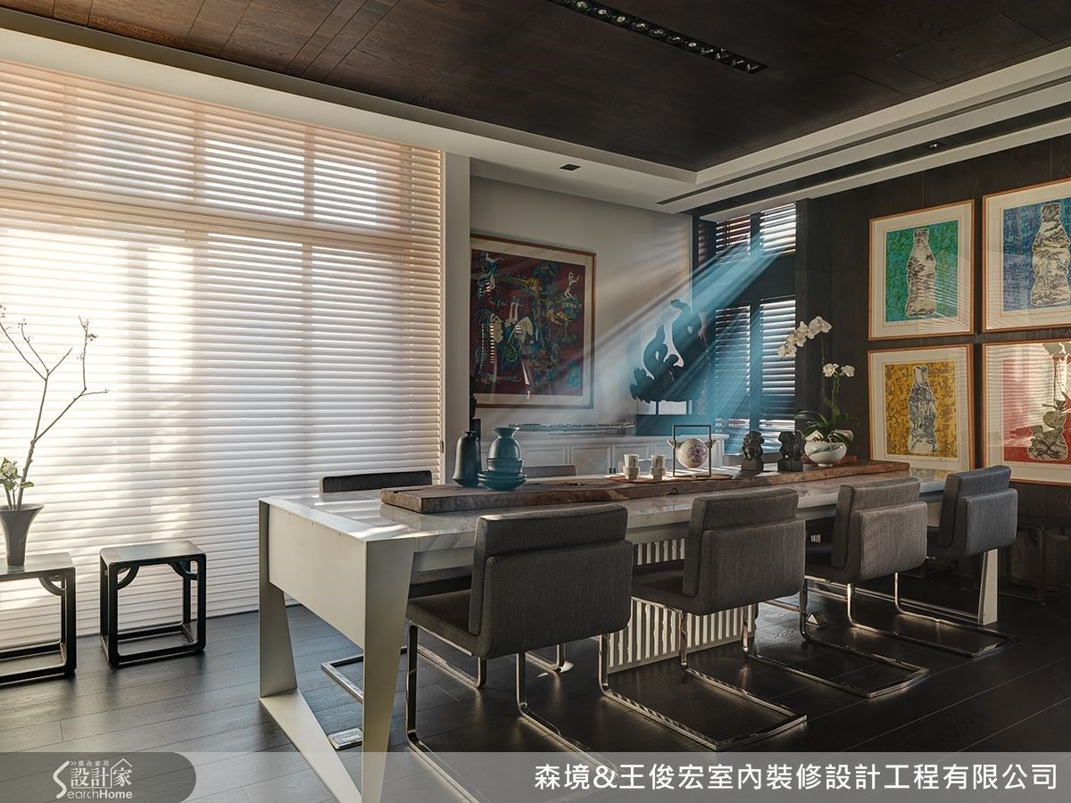 对室内设计工作者来说,设计自己公司的空间也是倾尽全力,打造能激发创意的工作环境。王俊宏设计师发挥中西混搭的技巧,把中式家具结构的元素,转化为铁件和墙体烤漆,营造令人印象深刻的办公空间。