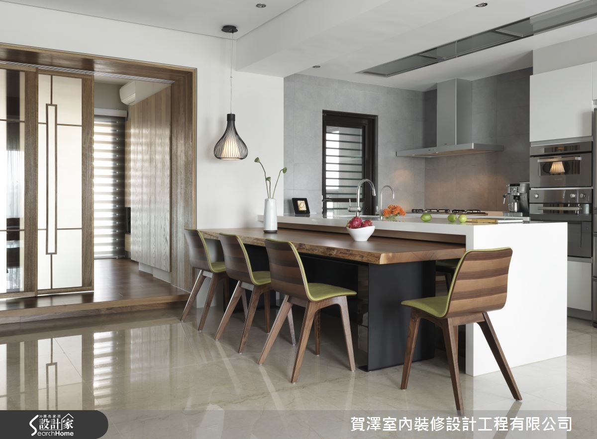 男屋主为科技业管理职,女主人则身兼画家与作家,这对一刚一柔的夫妻,还有着一个孩子;设计师替空间加入简约风调性,同时採用白橡木、柚木实木板、桧木桌板等大量木作质材,带给一家三口简单素雅的笔触、却不失舒适机能的住宅,勾勒出幸福而美好的居家风景。【明亮清爽光源,机能与美感兼备】注入简单自然的居家线条,让客厅纳进充裕的採光,并以大片白色主调衬底,扩容且明亮,白色电视墙则透过线条切分出细緻纹理,陈列深色沙发,使公共空间显得舒适且放鬆,并适时点缀绿意植栽与花器装饰,增添恰到好处的彩度。公共空间的天花板有着大梁,设计师藉由铺陈木作设计,让视觉得以一路延伸。沙发后方配置低矮收纳柜,做出客厅与书房的隔屏,且使家人间的视线、对话不受限制,书房则洋溢着和风气息,搭配黄色文化石墙面,造就疗癒的阅读场域。餐厨採开放式设计,将料理吧台与木餐桌合为一体,增加檯面的使用面积,并在厨房内规划收整于墙的电器设备,打造出清爽的餐厨气氛;卧房则设计木作柜体,并结合镜面材质,形成展示平台,保有室内光线的流通。