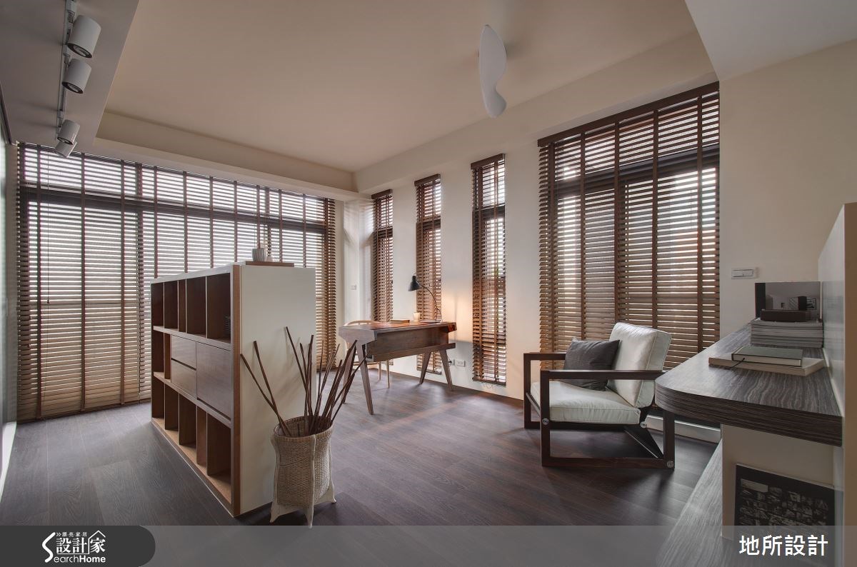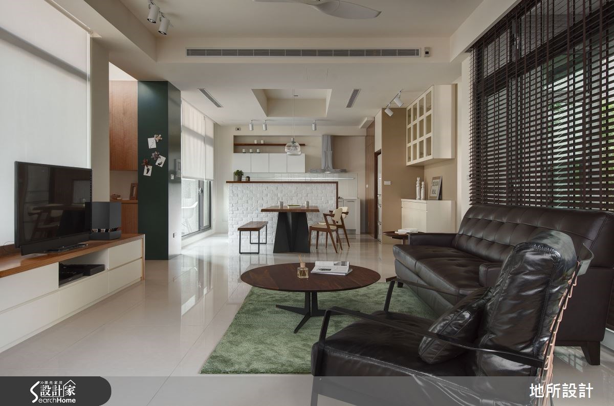 今天要分享的案例是拥有优渥空间的343平方米别墅,在两层的住宅中,设计师将公私领域做了完善切割,同时将空间采开放式的设计,不仅让动线顺畅,也让空间中的采光明亮、视觉更加宽敞。【客厅安排于中央,平衡空间视觉】在2室2厅的别墅,设计师将一楼的公共空间以家具做为自然的交界,成功区分出客厅、餐厅、厨房与空间一隅的飘窗区。长形的空间中,设计师将客厅设置在中央,再由两侧加以规划,让视觉更显平衡。沙发背墙舍弃了厚实的墙面,改以一整面的落地窗;为了增加隐密度,也添加了褐色的百叶窗设计。沙发选择皮制座椅搭配木制圆桌,放在草木绿的地毯上,呼应户外自然,也为居家空间中带来一丝绿意氛围。开放式的餐厨里,利用文化石所打造的中岛吧台区隔用餐区,搭配温润的收纳柜体,让人觉得疗愈温馨。通透无碍的设计让女主人在做菜时,也能看见家人在公共区域活动,展现出和谐的生活环境。在客厅的一隅,则利用架高的木地板打造休憩区。来到了二楼的私密空间,沉稳的木地板让人感到沉静。透过矮墙将主卧与书房空间一分为二,增加穿透感。主卧利用简洁的配色与线条,构筑出舒眠放松的居家感受。书房空间则以嵌入式柜体及隔板,增加收纳功能,同时也还给空间宽敞的视觉感受。