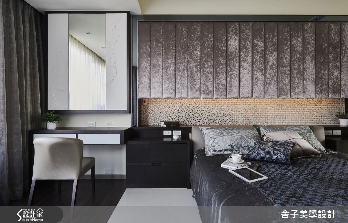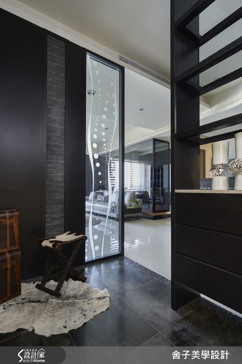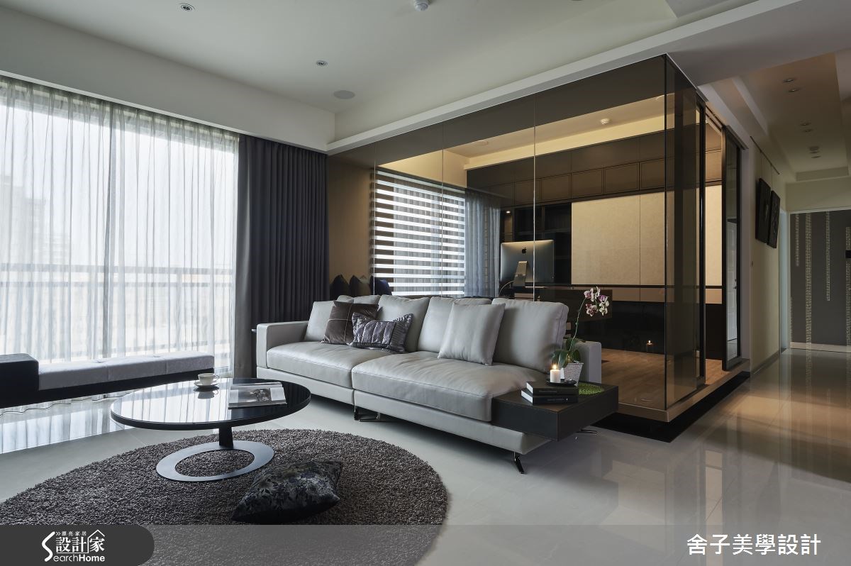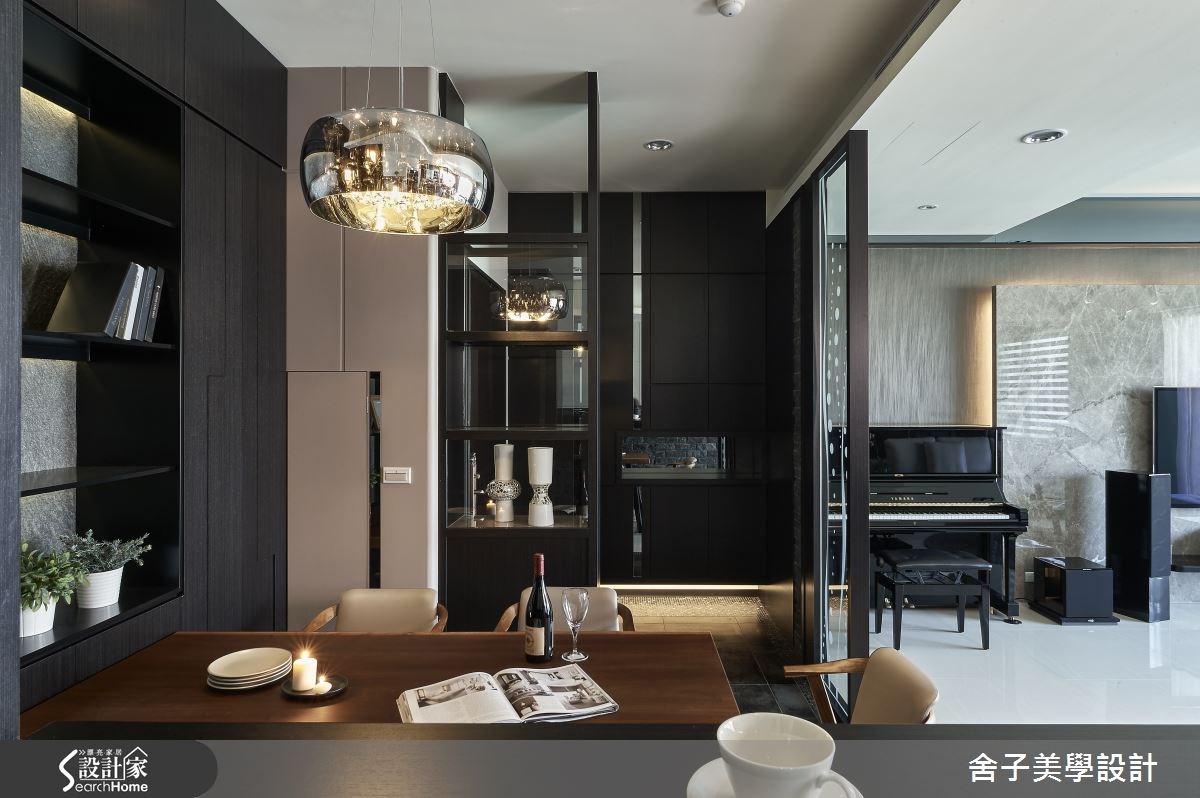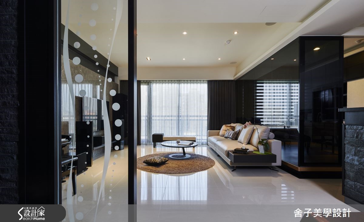 屋主一家为一对夫妻育有一双儿女,丈夫任职于资讯业,妻子则是家庭主妇,两人都希望家是个简单温暖又不失美感的空间。为让家里能清爽而整齐,屋主希望收纳空间能多一些,并有个辽阔的公共空间,让三五好友都能来家里欢聚。【灰玻做隔断,创造空间穿透感】而为使格局显得开阔,设计师拆除原先客厅、书房的隔断,改以大片灰镜,创造出空间的穿透感,灰镜也与黑色主调形成色彩对比,使视觉效果更具有层次感。此外将天花板拉到最高,让空间运用更淋漓尽致,再挑选柜体、厨具,让各个空间领域都能有完备的收纳机能。 客厅电视主墙挑选整面大理石,俐落的线条与自然纹理相映衬,大器质感油然而生。餐厨采开放式设计,餐柜中添入灰色自然岩薄板,吧台下方则是天然岩板,注入自然的苍劲,与侧边浅卡其色造型墙相唱和,营造温暖的气息。 主卧空间以深色为主,床头是亮面绒布、白色花纹烤漆以及马赛克砖墙,内敛而奢华,流泄出浪漫情怀。女孩房以粉嫩舒适的壁纸来装饰,搭配古典线板,从柜体拉至天花板,让空间有挑高感,装饰层板可放些小物,让女孩房柔美又优雅。