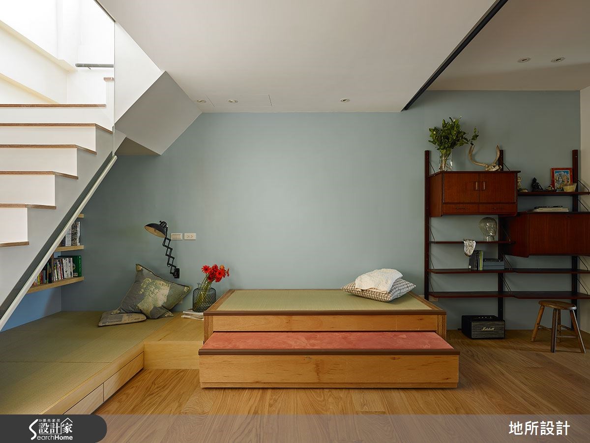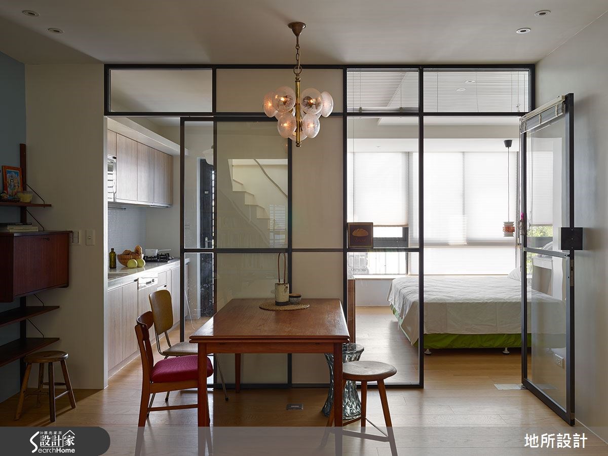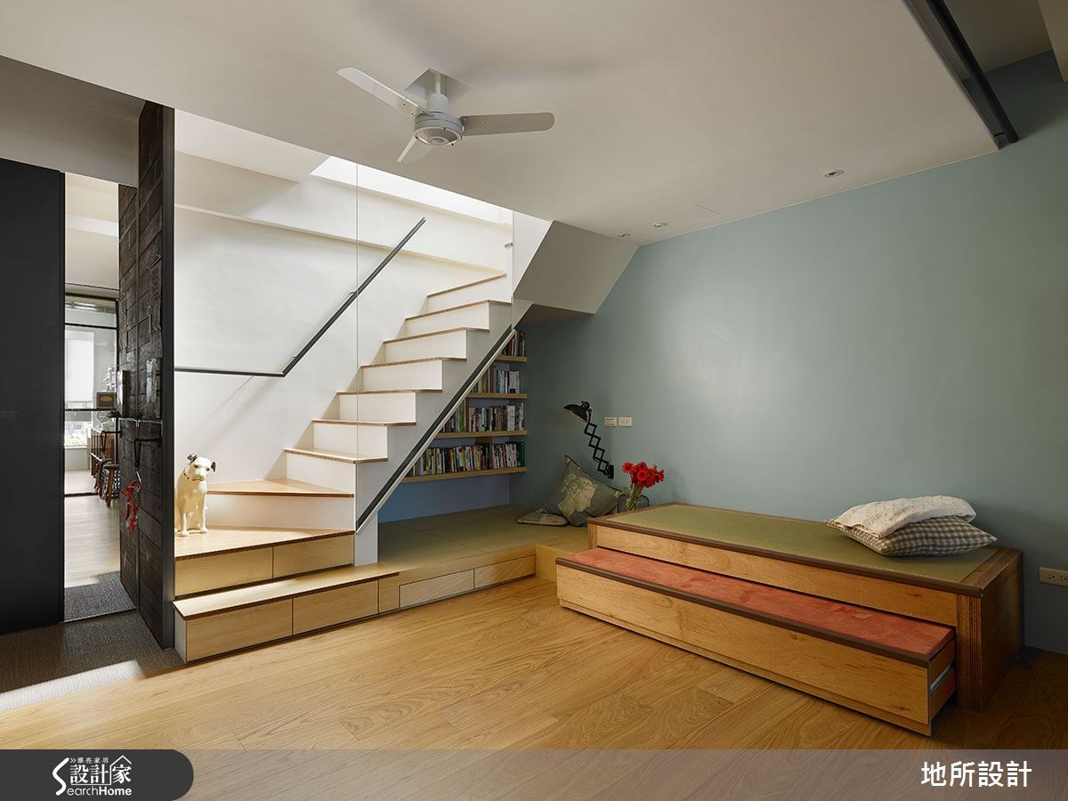 这户屋龄40年的老屋,本身老旧阴暗,不敷使用;经过设计师改变格局后,调整楼梯位置,空间焕然重生,有了更多的采光。而在通透设计的搭配下,空间更显得开阔,快一起走进这个家看看吧!【楼梯转向,客厅涌入日光】走进玄关,可感受到浓郁的复古氛围,实木墙面嵌置铁件与铁件挂勾,形成质朴的展示平台。客厅一旁的楼梯转向,引进美好采光,搭配温润木地板造就纾压感受。并打造架高地板,无论是坐着、站着或躺着,都不拘泥于形式。地板还暗藏收纳,强化机能。餐厅、卧室、厨房等领域则呈现通透视野,运用清玻推拉门,使采光可流通全室。卧室则简单朴实,在床头以实木打造出造型床头柜,搭配软装形成禅意氛围,床尾墙面则采用铁件木质做出置物空间,简练而清爽。二楼空间可见斜屋顶设计,同时定制孩子专属的造型床具,在木质感气息中展现童趣意味。浴室空间地面铺陈了色彩鲜艳的砖石,从入口一路延续至浴缸的立面,乍看下彷佛一道缤纷的迎宾地毯,欢迎着大人与孩子们进入泡泡浴的玩乐殿堂。