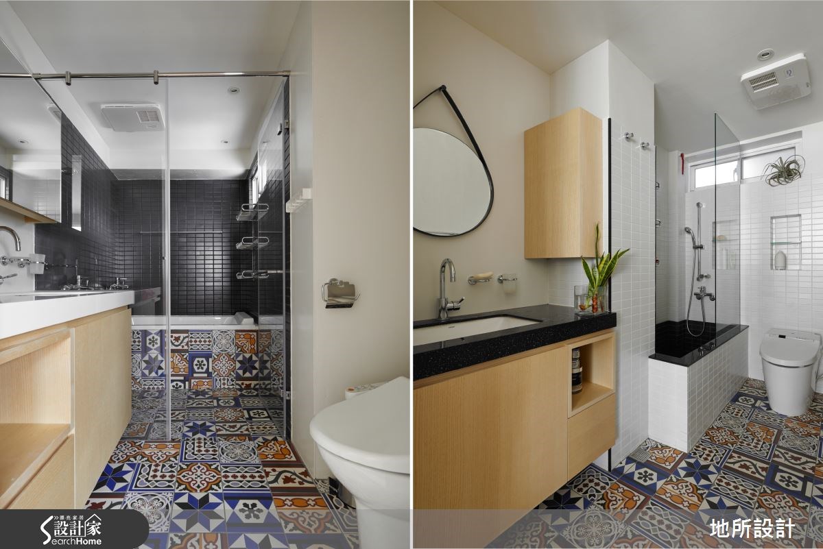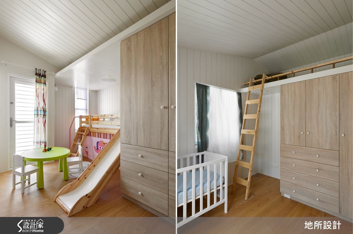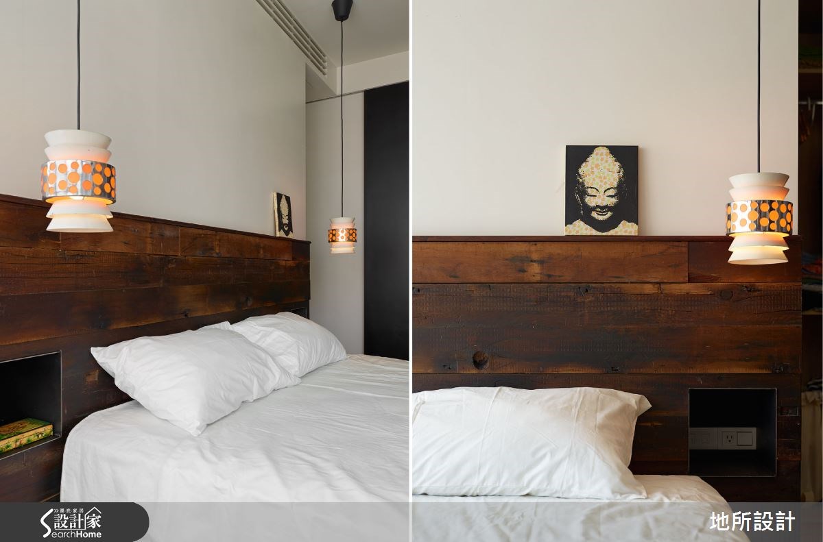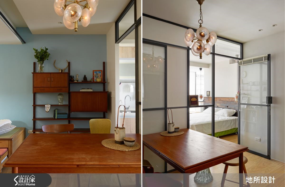 这户屋龄40年的老屋,本身老旧阴暗,不敷使用;经过设计师改变格局后,调整楼梯位置,空间焕然重生,有了更多的采光。而在通透设计的搭配下,空间更显得开阔,快一起走进这个家看看吧!【楼梯转向,客厅涌入日光】走进玄关,可感受到浓郁的复古氛围,实木墙面嵌置铁件与铁件挂勾,形成质朴的展示平台。客厅一旁的楼梯转向,引进美好采光,搭配温润木地板造就纾压感受。并打造架高地板,无论是坐着、站着或躺着,都不拘泥于形式。地板还暗藏收纳,强化机能。餐厅、卧室、厨房等领域则呈现通透视野,运用清玻推拉门,使采光可流通全室。卧室则简单朴实,在床头以实木打造出造型床头柜,搭配软装形成禅意氛围,床尾墙面则采用铁件木质做出置物空间,简练而清爽。二楼空间可见斜屋顶设计,同时定制孩子专属的造型床具,在木质感气息中展现童趣意味。浴室空间地面铺陈了色彩鲜艳的砖石,从入口一路延续至浴缸的立面,乍看下彷佛一道缤纷的迎宾地毯,欢迎着大人与孩子们进入泡泡浴的玩乐殿堂。