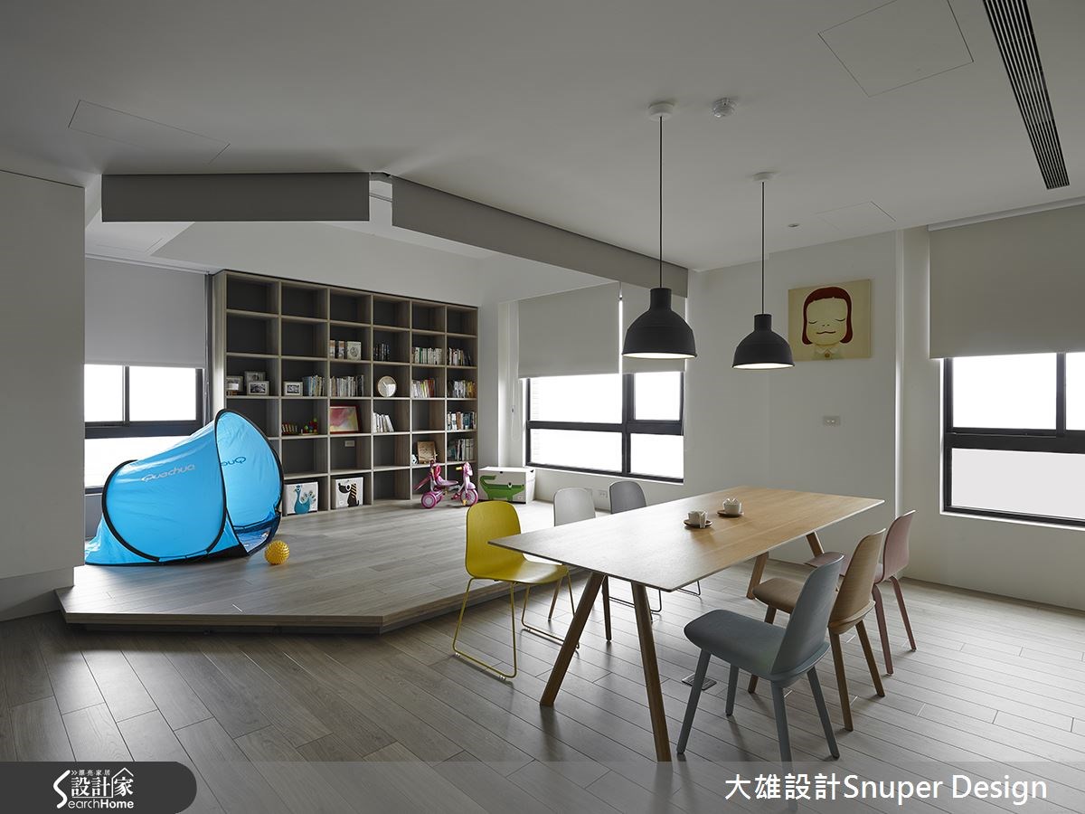 亲子友善双层公寓!以卧榻和投影创造弹性客厅,105.6 平米北欧风复层设计将生活游戏化