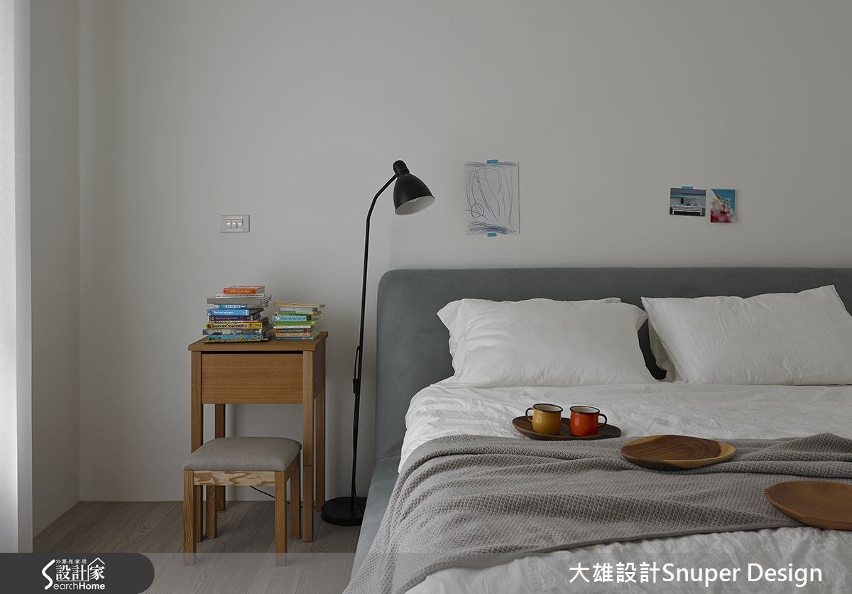 现代人工作压力大,能在家感受到悠闲的生活氛围与户外美景,正是屋主所期待的,两户打通拥有182平的空间,设计师规划出5居室的格局配置,以北欧风定调,打造出屋主向往拥有度假风格的休闲宅。【开阔的游戏场域】本空间处的基地四周田园环绕,还可远眺岛屿的迷人景致。 曲线悬空的木设计,成为进入玄关处的吸睛焦点,搭配大理石打造的穿鞋椅;全墙的白色鞋区收纳柜体,提升了视觉放大,在中段部分还可增设展示品;地坪与公共空间做出了区隔,也是分区的自然交界。公共空间串连客厅、休息区与游戏区,全室以大地色系营造出温馨氛围,深灰色阶的主墙与白色矩形电视墙设计,既低调又丰富视觉层次;沙发后方增设简约桌椅,屋主可在此观看后方游戏区的情况,搭配窗户的活动卷帘,不仅能阻扰强光照射,又能适时地引入明亮采光。游戏区特别提高地坪,明显区分出此场域的专属感,但开放式的设计又可兼具宽敞感,后方的收纳书墙也为居家空间提升了人文感受;餐厨空间以中岛吧台连结餐桌,简洁又明亮的烹饪区域打造出动线无碍的顺畅设计且又维持与全家人的紧密互动。