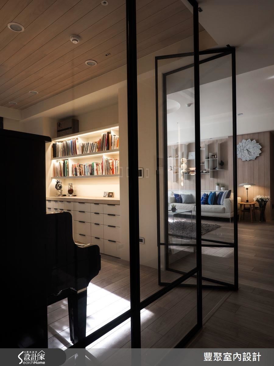 男主人收藏了大量的CD唱片,也有专业的音响设备,专属书房是重要需求。由于采光通风良好,更有漂亮的窗景,设计师希望这样的美好不只停驻在书房,因此以铁件及清玻为隔断,视觉得以穿透,空间感也更开阔。