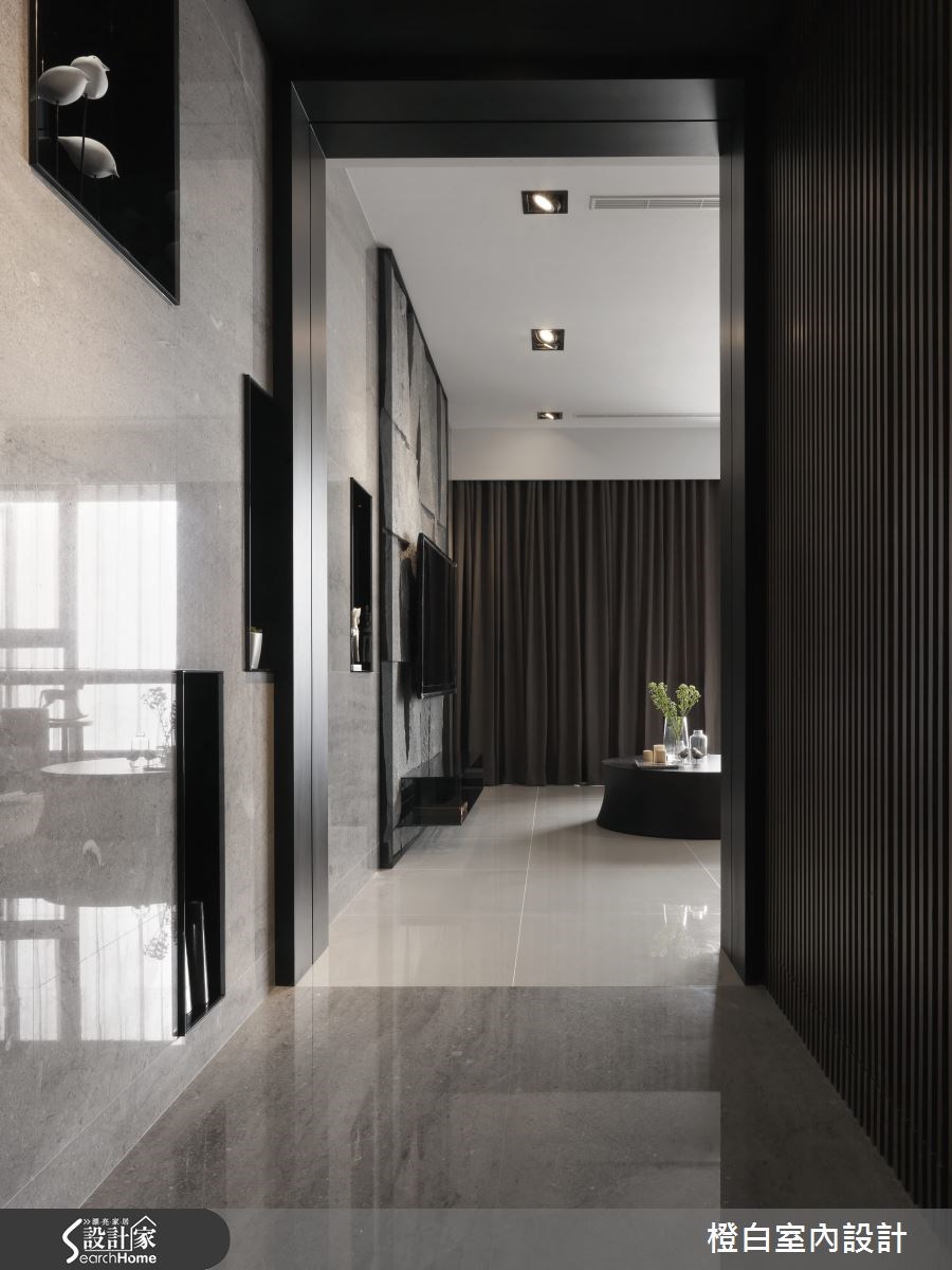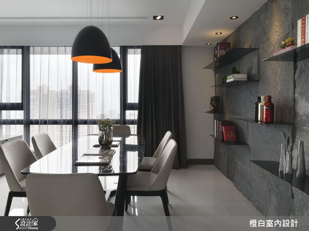 来到135平方米的居家空间,设计师透过开放格局规划2室2厅,并保留位于高楼层优势,延揽美好的通风及采光,创造星級饭店的開闊空間和高雅質感,快一起来看看吧! 【善用材质堆疊,丰富立面表情】走进大门,可见到玄关规划的内凹展示墙面,一路连接至电视墙,让此立面充满视觉立体度,同时串联起玄关与客厅空间。而另一侧从玄关转折的木质墙面则刻画了细腻的垂直线条,瞬间产生挑高视感。在公共领域中,延揽了落地窗外的自然采光,形成明亮舒适的居家感受,利用陈列矮柜取代沙发背墙,保有不受阻碍的视觉。清楚界定出客厅与餐厅,并以一面石墙呼应电视墙,透过粗糙肌理型塑空间气势,嵌置的薄铁擱板则满足置物需求,替墙面妆点丰富表情。主卧空间则以木地坪做铺陈,结合深色木床头墙创造纾压感,并规划宛如总统套房的三进式动线,让睡眠、起居、更衣、阅读、卫浴等功能整合在小小的寝卧之内,使地坪发挥效用,再利用通透的门片规划,分界各个使用区域,并创造出视觉延伸感。