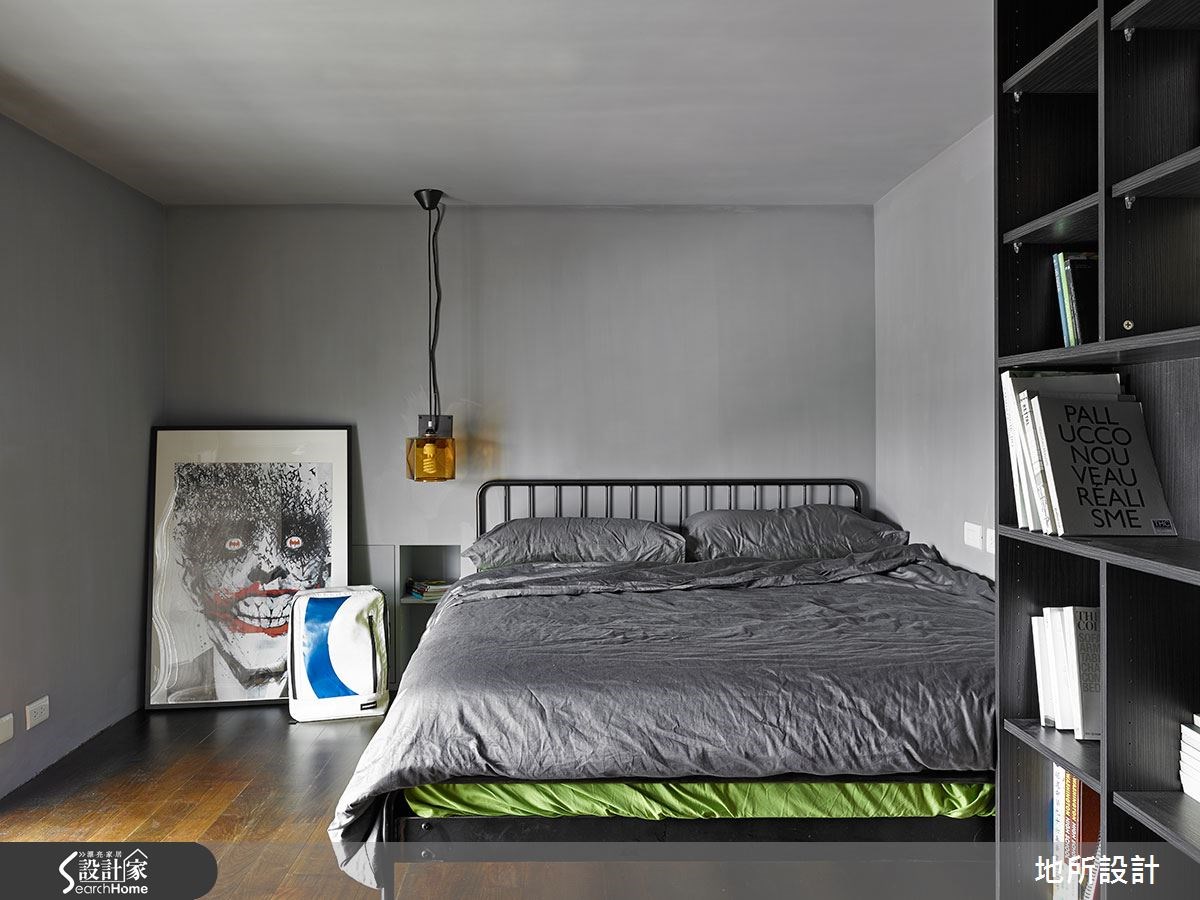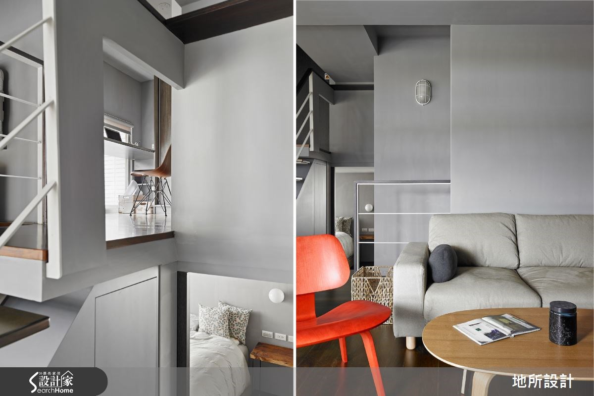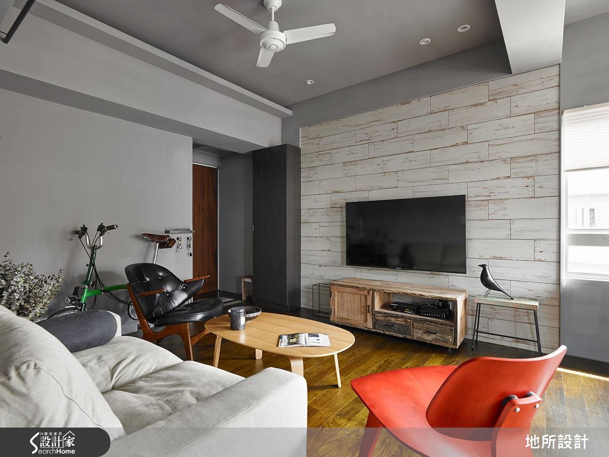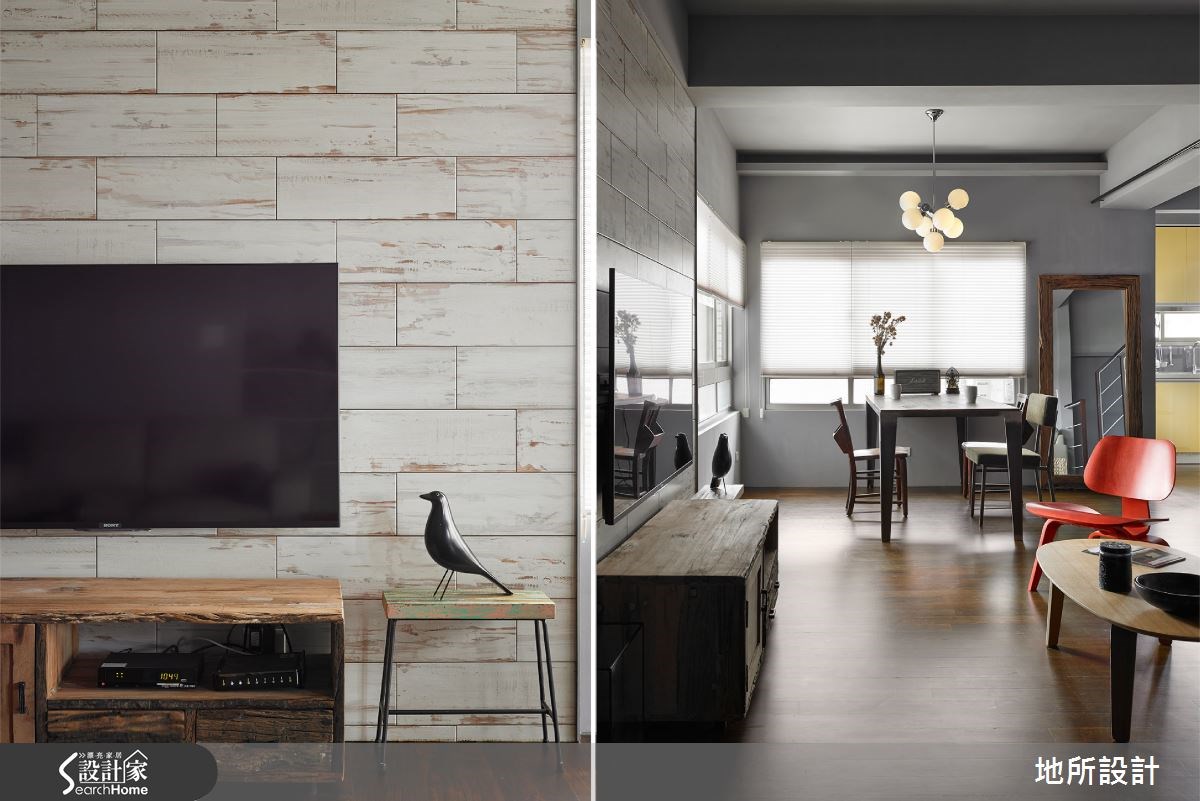 一间房龄20年的老屋该有怎样的改变,才能让人耳目一新?设计师以现代风为设计主轴,进行一场空间整形;但刻意保留原先的天花板,透过色彩搭配、家具家饰等注入复古气息,并以通透的开放设计,创造每个角落的互动性,让屋主与孩子之间随时保有紧密联系。 【全室铺陈灰色,展现高冷范】整体空间以灰色为主轴,搭配实木地板呈现质朴韵味。全室呈现开放通透格局,客厅透过电视墙营造复古风情,墙面选材与视听木柜皆可见斑驳肌理,充满不加修饰的风情。搭配红、黑、白等沙发座椅,将现代风与怀旧感做出完善揉合。沿楼梯向上,可来到卧室空间,配置阳刚的铁件床架、粗犷吊灯、特色画作等,昭告卧室主人的鲜明个性。并在床头墙底部做出内凹空间,满足小物或书籍的收纳需求。 居家中的一道楼梯不仅串联公、私领域,设计师也加以发挥空间效能,把梯间转角设置成阅读空间,做出简单的书桌与书架规划,让人不禁回忆起校园生活,那在楼梯间伴随等待心情的阅读好时光。