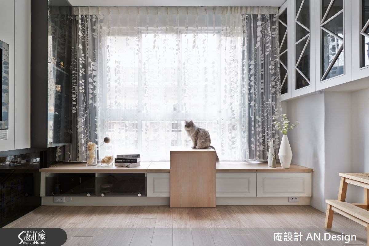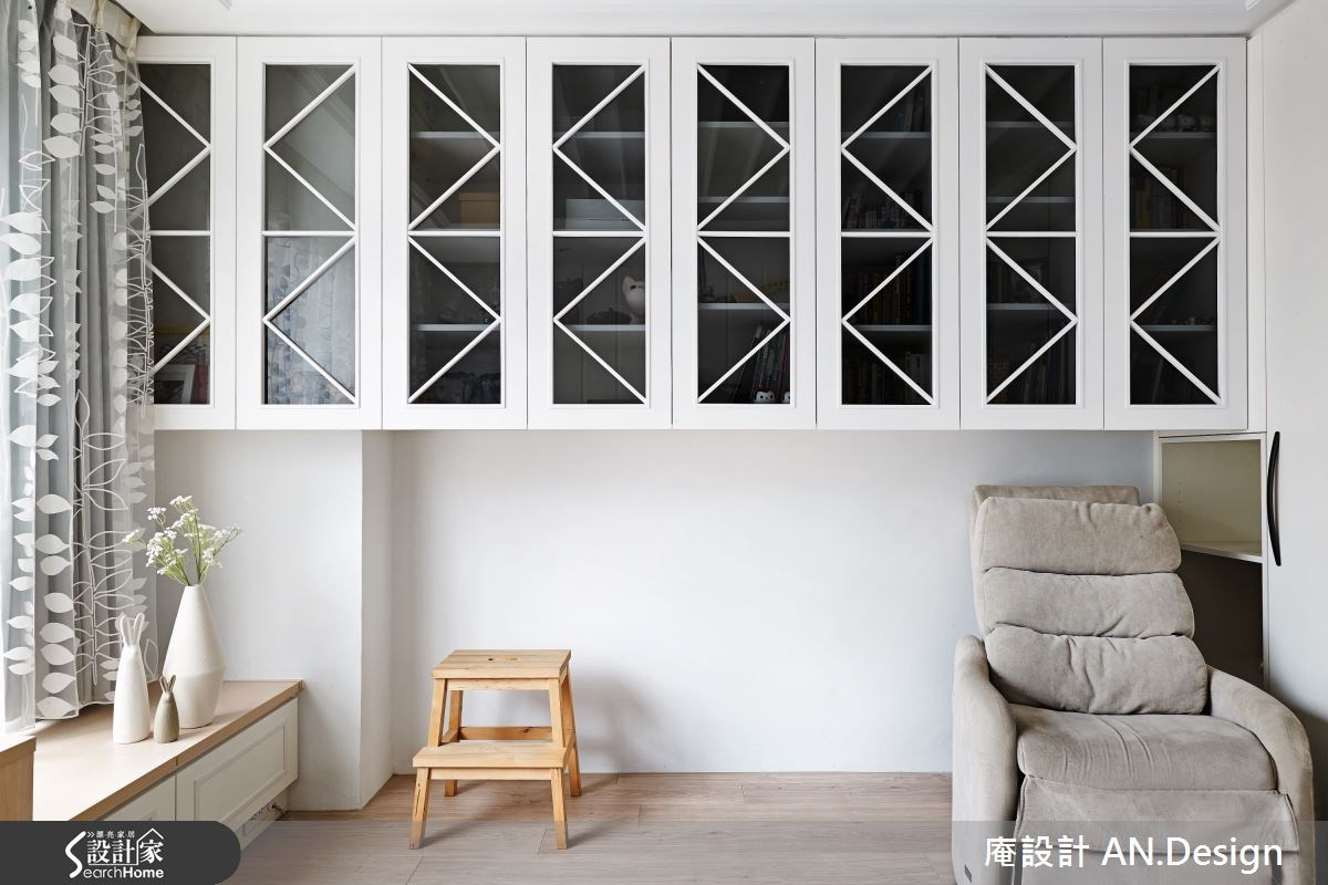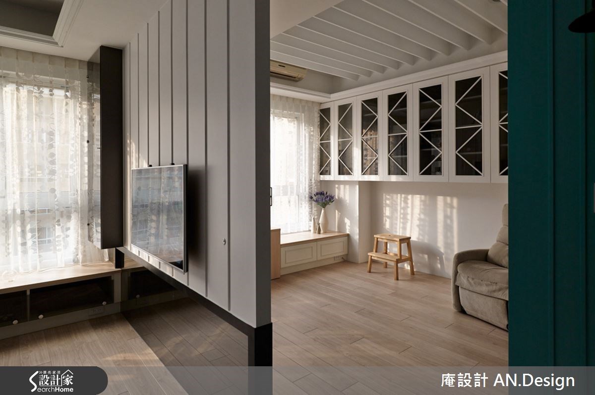 美式乡村风格的居家有很多种呈现的方式,你喜欢的是哪一种呢?这是由二手房所改建的居宅,设计师不同于繁复乡村的设计,改以简单亮眼的色系与简约线条成为主角,型塑具有丰富层次的美式居家氛围。【水蓝色调,空间更清新】在整体风格的规划上,设计师以兼具清爽与温润的浅色木地板作为美式乡村风格,再搭配纯净的白色与亮眼的水蓝色,彼此穿插于沙发背墙、餐厅主墙与视听空间,营造视觉亮点。而水蓝色的清新质感,让人感到自在而纾压。客厅区电视墙除了上方采用大方的白色线板,下方则是搭配灰镜,让空间在视觉上能够向前延伸放大。用餐区以小巧的中岛吧台连接深色木桌椅,用餐时光就更为温暖窝心。原为主卧的空间则被改为视听书房,透过穿透性的灰玻拉门,延伸了木地板,让空间能穿透畅通。客厅与视听房的窗边都设置飘窗,加上移动式的桌几和收纳,强化飘窗机能。