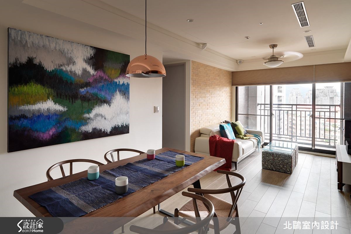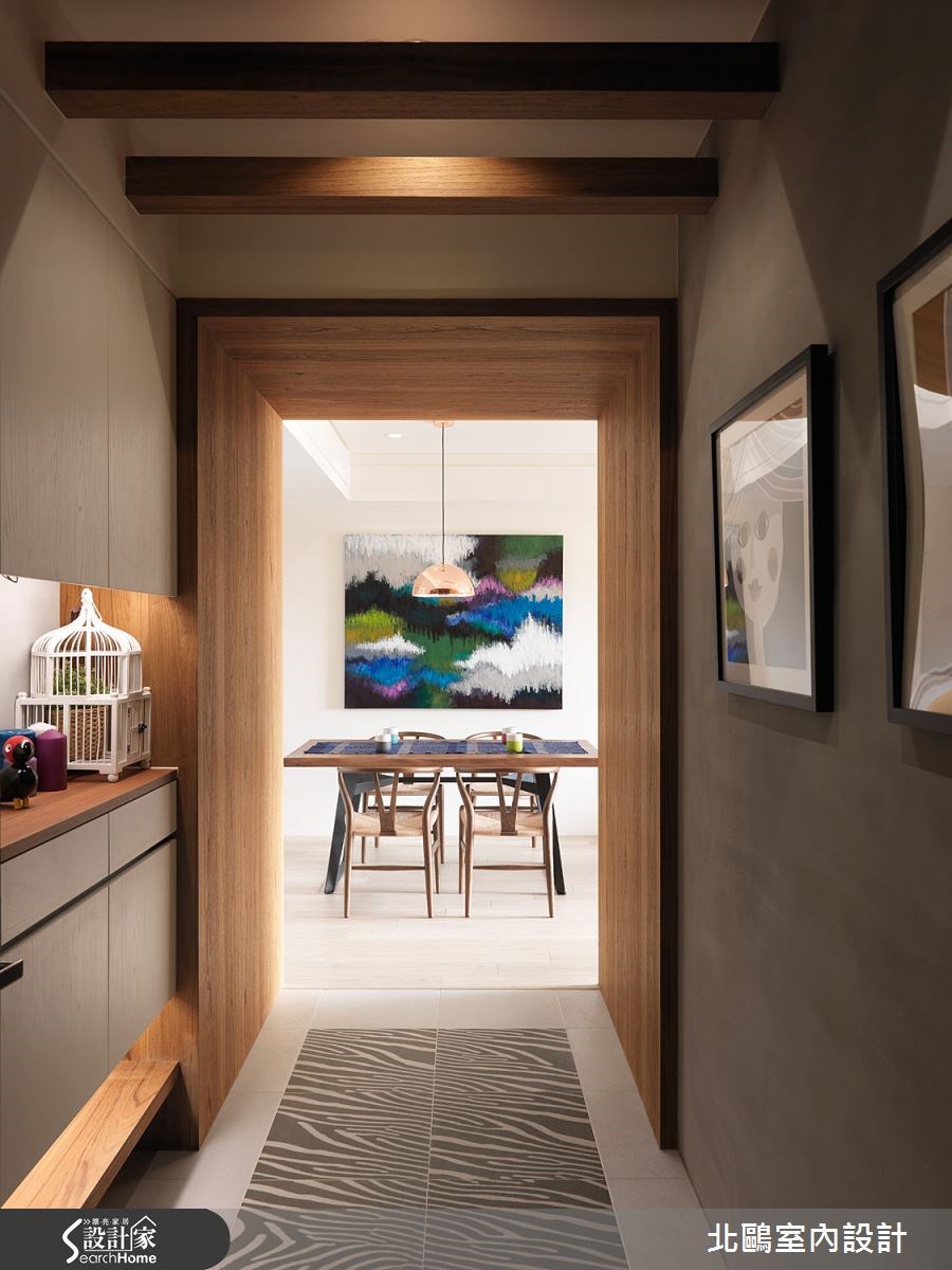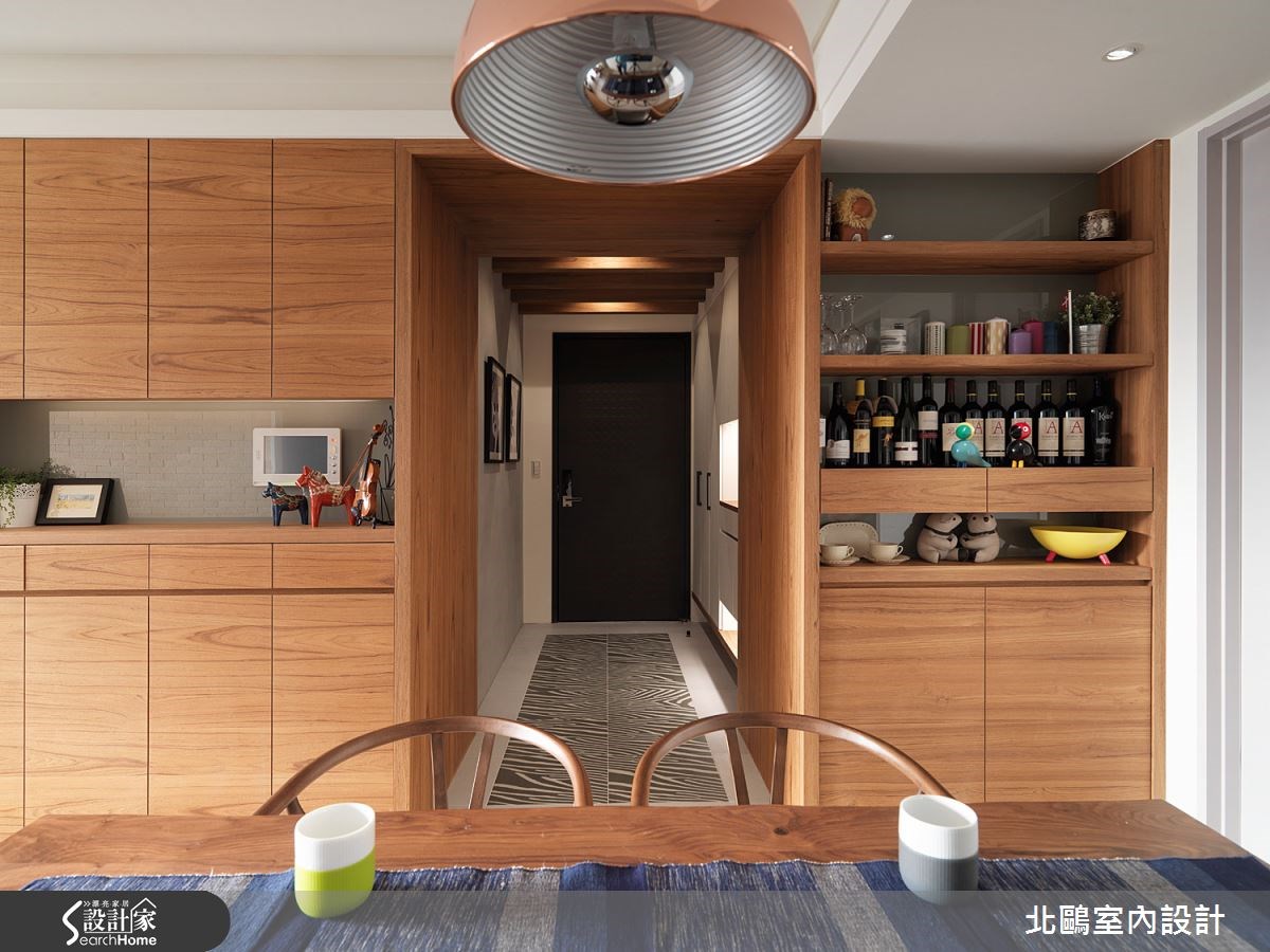 82平米的空间内,设计师以北欧风为基调,替花甲之年的夫妻打造了一间退休宅。空间里延揽了温暖采光,并注入大量原木素材,同时搭配缤纷的家饰等,让居家处处充满清新气息,打造出退休人生的新视野。【原木定制,宛如森林小屋】走进家门,玄关廊道即以墙面装饰、展示柜等设计,可见到以门斗为框的墙画布景,并搭配一盏悬吊灯饰,充分表现屋主品味;天花板则以木作条搭配灯光,延伸形成入门动线,地面则呈现时尚斑马纹,让人有置身艺廊的错觉。进入公共空间,配置整排柜墙,不仅增添居家收纳机能,串联起客、餐厅区域,也连起木质柜面与电视墙。在客厅陈列了白色沙发,点缀色彩鲜艳的抱枕;而沙发墙则铺陈文化石,注入悠闲慵懒的风情。卧室空间则延续木质调性,且刻意将门片隐于墙,使墙面保有完整性,形塑简练优雅的空间线条,并让芬多精、阳光浸润整个空间,给人一种来到森林度假小屋的放松心境。