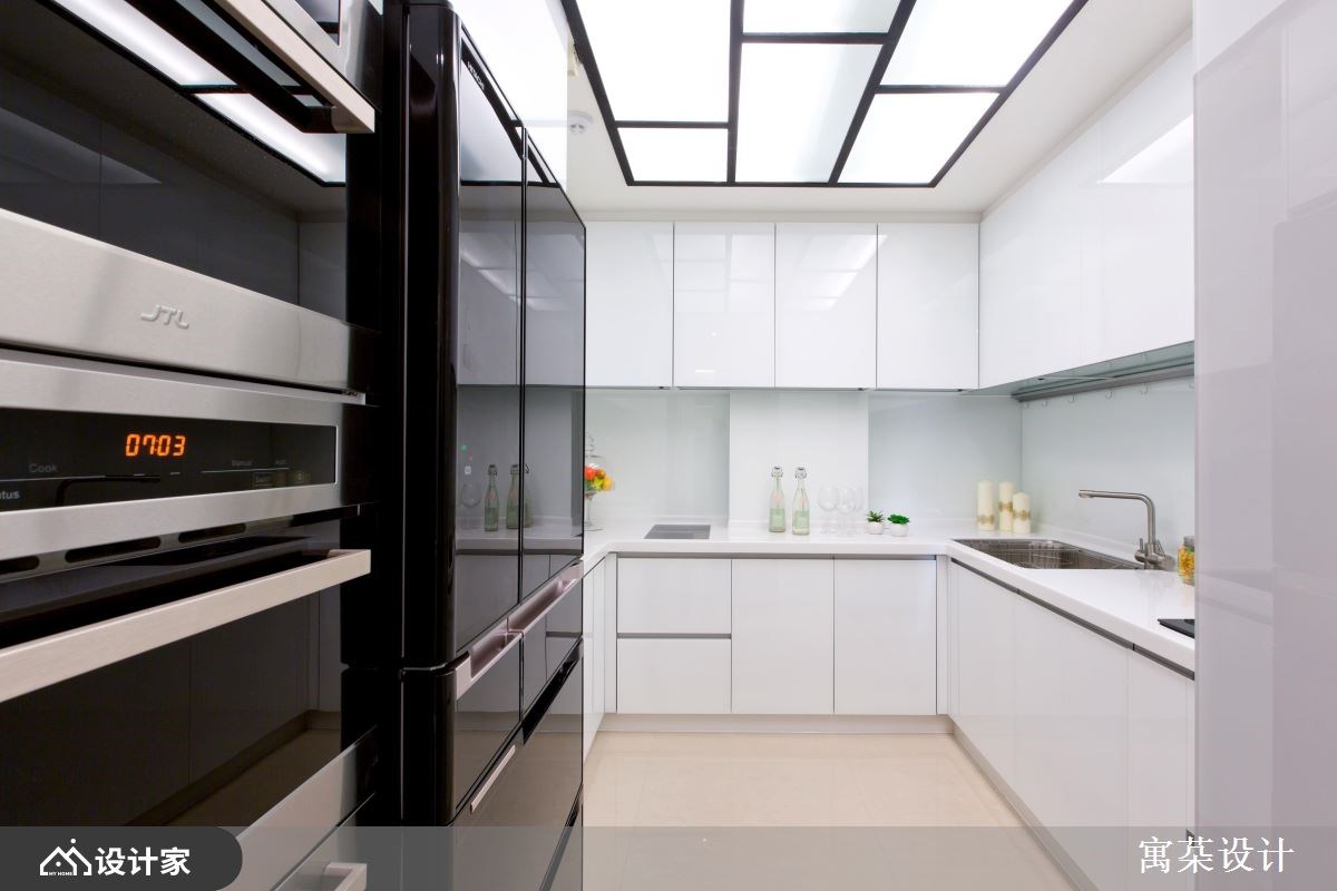 古典风格只适合在超过300平米的豪宅里,如果仅149平米,也可以打造雍容的风格吗?喜欢华丽、古典风格的女屋主,希望拥有古典风的居家,设计师认为在有限空间中,需删除繁复的线板设计,只要展现经典的元素即能完备风格,让家进化成美丽的艺术品。【壁炉展示柜,满足美感与机能】设计师在公共空间采开放式格局,客厅与餐区无交界的墙面,让视野穿透、动线顺畅。壁炉式的电视墙设计为经典的古典风元素,细腻的图腾改变了原本制式的墙面,并延伸至两侧的展示柜体,整并了屋主个人的收藏,提升空间中的艺术人文底蕴。【黑白配色,打造时尚的餐厨空间】餐厅的天花板利用线板定义出场域位置,连接拉门式的厨房区,不仅有效的阻隔油烟,也让喜欢下厨的男屋主有个人的舞台空间,而时尚黑与白的基调,则让空间大幅提升了宽阔意象。【对称设计,打造雍容大器感】进入主卧,床头墙设计采用抢眼的红色绷布表现,并善用古典风格中的对称原则,让视觉更显一致化,另外也为了提升休憩空间中的机能感,增设足够的衣柜满足完善收纳;而在小孩房则选择缤纷的海洋蓝规划出卧房与阅读区,形塑出空间的灵活运用性。