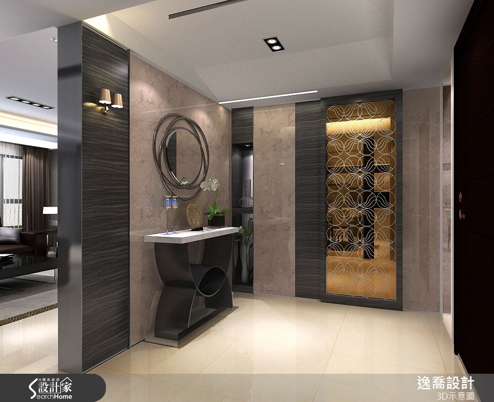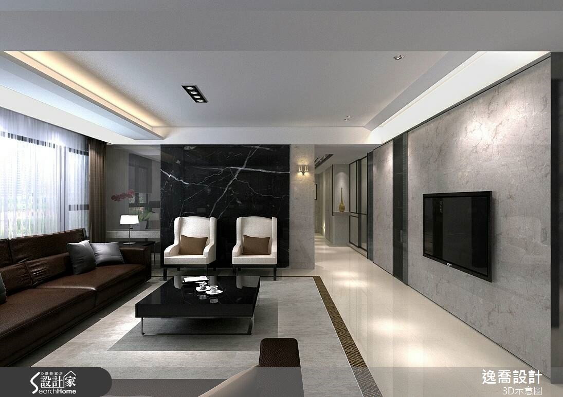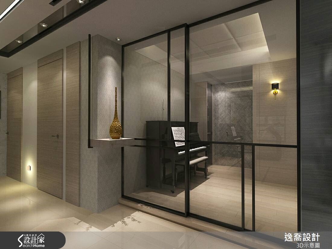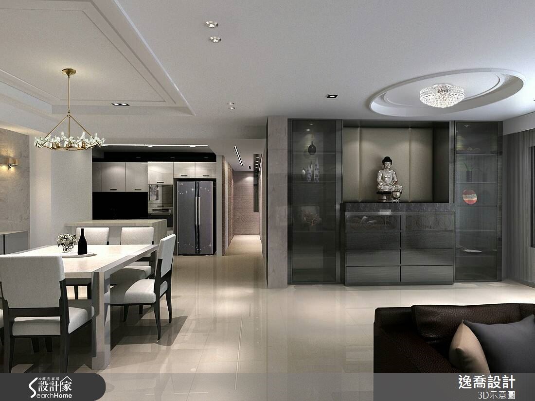 两户打通的百坪空间,住着屋主夫妻与四名子女,设计师将居家整体定调为现代风,同时加入石材、钛钢板等,塑造出空间的奢华感,并善用茶镜、清玻璃等通透材质,使百坪空间更加广阔;而在格局配置上,则兼顾了家族成员的需求,配置专属练琴房、健身房等,以贴近人心的体贴规划,打造出宜动宜静的质感人生。走进玄关,可见到充满艺术感的端景墙设计,形成开门见山的强烈印象;走进客厅空间,设计师在墙面铺陈大面积灰色大理石,开创公领域的大器感,并让电视一路延伸至私领域空间,成为居家动线导引,而天花板则作出嵌灯设计,维持天地壁简练、俐落的线条;餐厅则呈开放格局,以桌椅定义使用範围,运用垂坠吊灯与墙面壁画,打造出高雅的用餐氛围;沿居家廊道动线行走,可在角落或畸零空间见到嵌墙的檯面设计,用来陈列不少艺术品与植栽,展现别具用心的端景檯规划;钢琴房则身兼书房功用,以透明拉门作为隔间,让视野有了延伸感,而来到多功能运动间,也同样沿续门片的通透材质,并在地坪上铺陈榻榻米,突破了健身空间给人的刻板印象,营造出静谧的和风意象;卧房空间则依家族成员的性格,作出了不同的属性规划,像是主卧即充满饭店精品质感,在木皮、茶镜、绷布的使用下,营造出华丽感,而次卧房则以大片鲜黄色塑造墙面焦点,并于天花板加入了圆弧造型,丰富了空间线条!小编的最爱虽说屋主有着宗教信仰,但因平时较少烧香祭拜,所以设计师将佛堂结合收纳展示空间,打造出美感、机能兼具的柜体设计,搭配通透的柜面材质、奢华的水晶吊灯,佛堂竟也成了一处好时尚的居家风景!