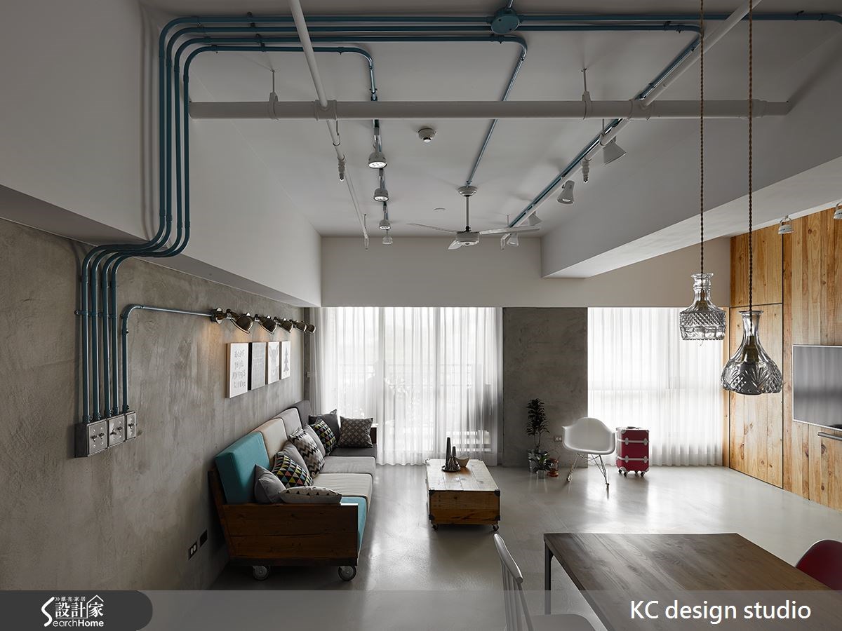 79平米的2室2厅住宅,屋主夫妻喜欢在家邀请朋友聚会,设计师聆听这样的需求,因此多次讨论后决定将公共空间的尺度放大,私人的休憩空间则维持基本的空间比例,并运用特殊磁砖搭配简约的空间氛围,打造出个性鲜明的混搭时尚宅。【以水泥粉光呈现简洁的美感】整体空间利用三个不同高度的量体将空间划分,由于原本主梁过深导致局部空间压低,因此在玄关入口处选用水泥粉光搭配玻璃,让视觉回归简洁意象,并透过玻璃的反射作用,让空间显得开阔并具有层次,即忽略了上方的梁柱。 【可随人数弹性调整的活动家具】开放式的公共空间,宽阔的场域尺度让来访的宾客都感到自在雀跃,透过吸睛的黑白造型六角花砖地坪设计,自然的界定出餐厨空间,摆上配合活动的可拆解家具,依使用的人数不同与聚会形式,随着活动的模式变换机能,这样兼具实用性的贴心设计,让人惊呼连连。【裸露管线展现空间率性风格】客厅主墙以木元素作设计,温润的木纹提升了整体空间的温润感,明亮的采光随着落地窗引入,让来访的朋友们都可感到舒适无压的悠闲;刷上湛蓝的管线刻意地裸露于天花板上,让空间多了一份艺术调性。