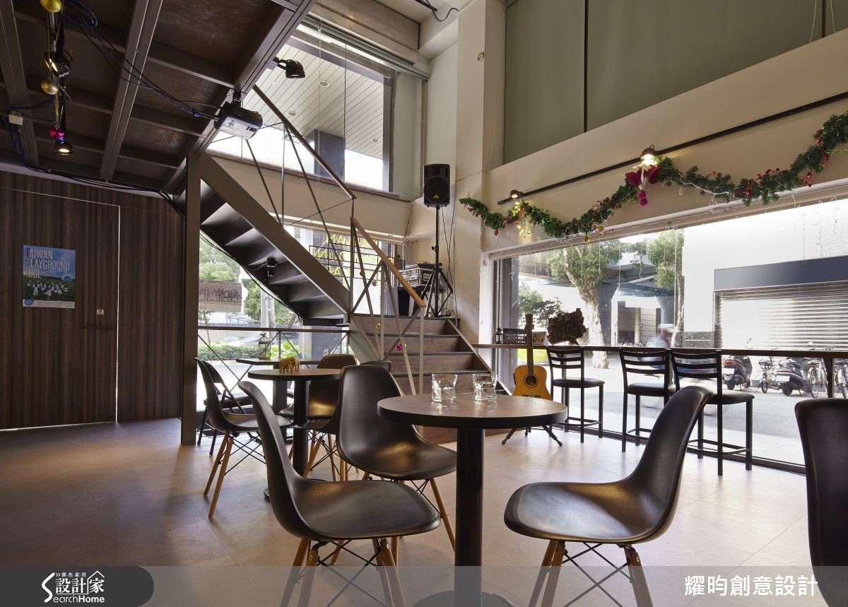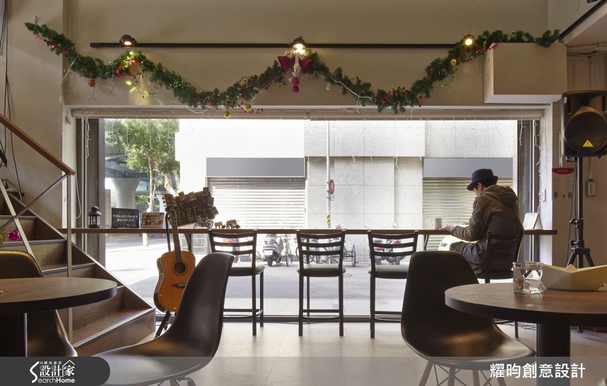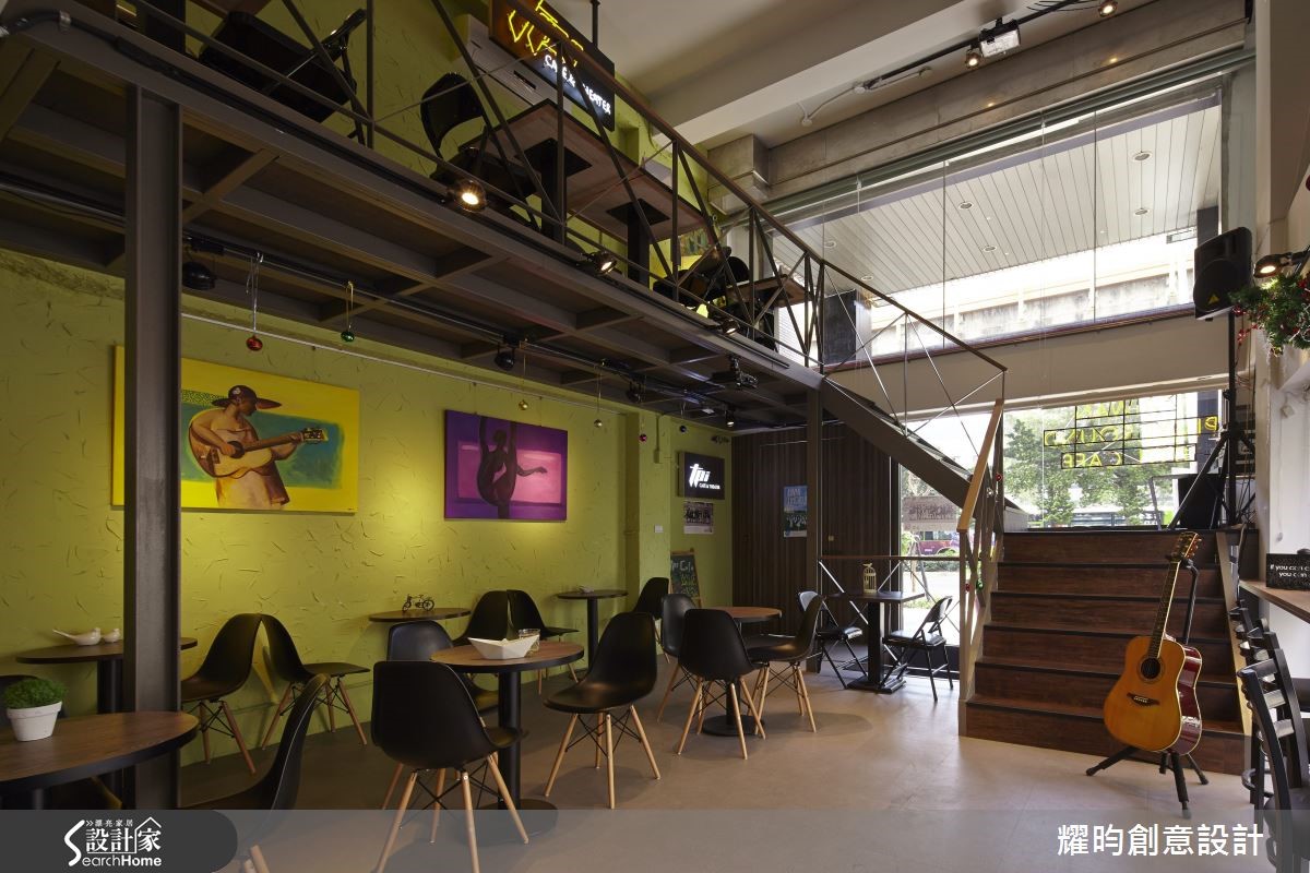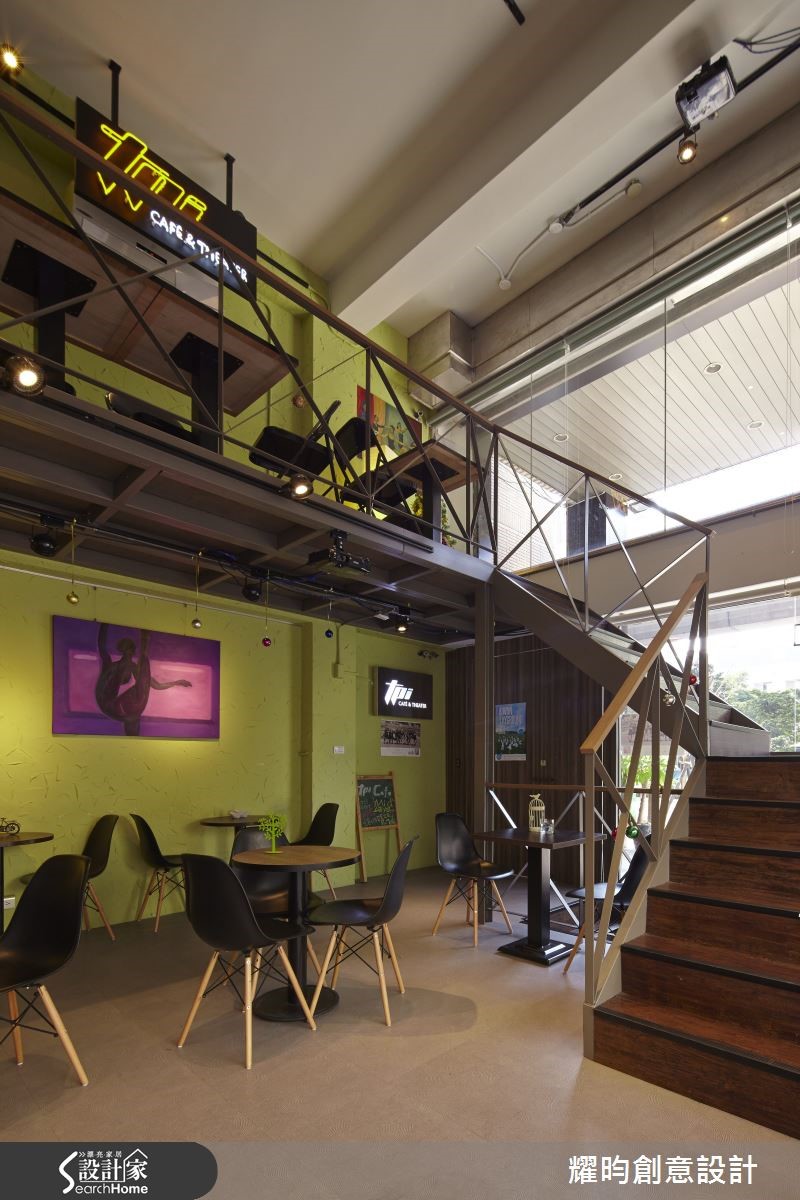 每当放假时刻,总希望与亲密爱人或几名好姊妹相聚,聊天度过整个午后,轻啜着咖啡伴随设计味,浓得化不开的惬意感在这里都可以感受的到。【Loft为基调,形塑魅力空间】本案例为咖啡轻食馆,79平方米的空间中打造出Loft风格。这户二手屋原本即是跃层格局,具备高挑的层高,因此也为整体空间带来视觉的辽阔感;设计师再佐以大地色的家具搭配,谱出美妙的空间氛围。【绿墙配画作,勾勒人文气息】绿色的墙面吊上几幅艺术画,为空间注入人文气息,轻触壁面可感受到立体的涂料设计,为平实的墙面带来层次感;整面落地窗打造的外墙,不仅让整体更显通透,也让外面的访客可立即感受到空间的魅力。通往二楼的楼梯骨架层次堆栈,带来流动感的设计语汇,从大厅的橄榄绿主墙色也延伸至二楼空间,整体设计整合了空间调性,让宾客在此也能感受到空间中的自在感。除了室内规划,户外则利用全黑的墙面包覆,再佐以透明落地窗,鲜明的空间意象使人印象深刻,搭配亮黄色的招牌,让整体配色更显都会的时髦感。