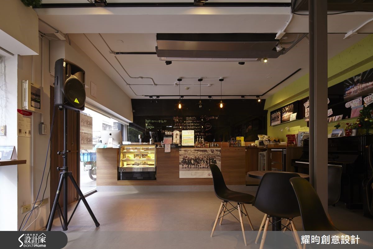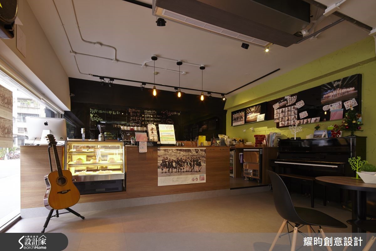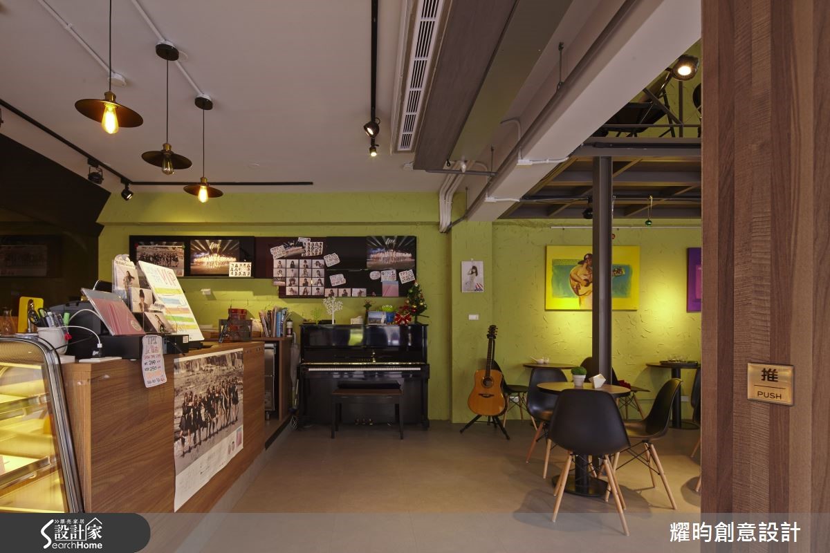 每当放假时刻,总希望与亲密爱人或几名好姊妹相聚,聊天度过整个午后,轻啜着咖啡伴随设计味,浓得化不开的惬意感在这里都可以感受的到。【Loft为基调,形塑魅力空间】本案例为咖啡轻食馆,79平方米的空间中打造出Loft风格。这户二手屋原本即是跃层格局,具备高挑的层高,因此也为整体空间带来视觉的辽阔感;设计师再佐以大地色的家具搭配,谱出美妙的空间氛围。【绿墙配画作,勾勒人文气息】绿色的墙面吊上几幅艺术画,为空间注入人文气息,轻触壁面可感受到立体的涂料设计,为平实的墙面带来层次感;整面落地窗打造的外墙,不仅让整体更显通透,也让外面的访客可立即感受到空间的魅力。通往二楼的楼梯骨架层次堆栈,带来流动感的设计语汇,从大厅的橄榄绿主墙色也延伸至二楼空间,整体设计整合了空间调性,让宾客在此也能感受到空间中的自在感。除了室内规划,户外则利用全黑的墙面包覆,再佐以透明落地窗,鲜明的空间意象使人印象深刻,搭配亮黄色的招牌,让整体配色更显都会的时髦感。