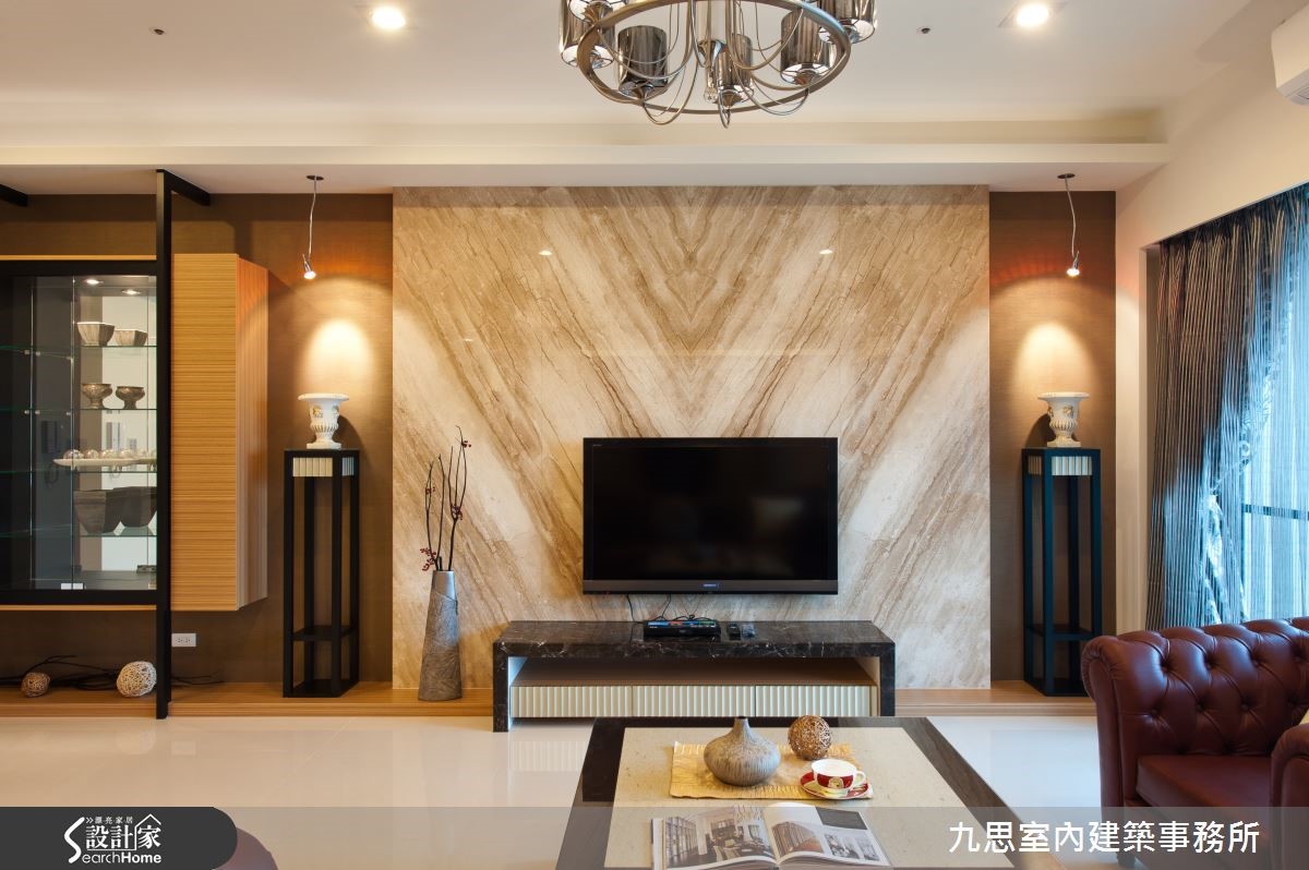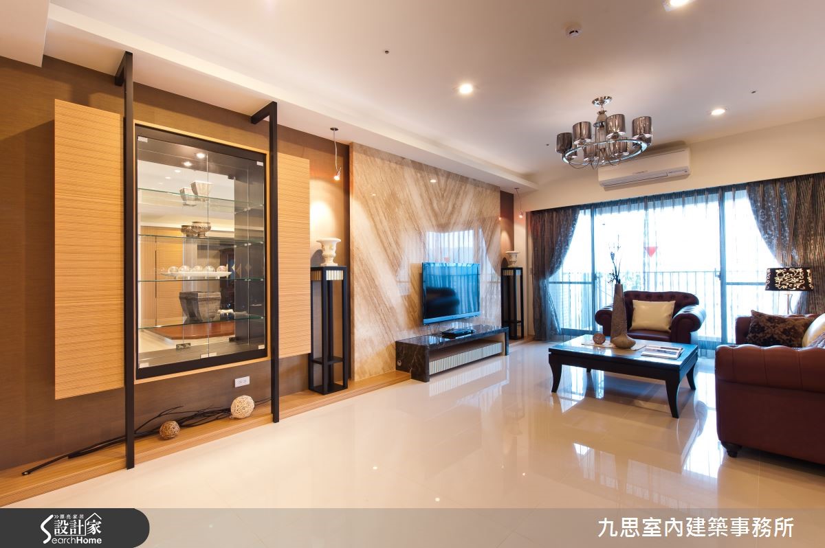 空间越大更应该好好规划,才不会浪费!198平方米的空间规划出四室两厅的格局,设计师并采用开放的公共空间,敲除隔断,还给全家人偌大的生活领域,让生活重心聚集在此,提升互动性。【地面高低分区,大空间不凌乱】顺畅的动线规划,合理串联客厅、餐厅、琴房及佛堂;大地色的家具家饰配置,则让视觉有了合宜的景致。大理石电视墙为空间注入一股大器感,搭配铁架及透明收纳柜打造的展示空间,屋主的收藏品一目了然,增加居家的人文底蕴。明亮的采光从阳台洒落,在空间之中照耀出流动般的美好氛围;琴房及佛堂利用低阶的深色木地板规划出自然的交界。用餐空间利用媒材的层次堆栈,木头色及大理石材描绘出低调奢华又不单调的空间。长辈房的色彩以简约为基调;运用木色的温润搭配藕色系的暖感,迎接窗台大面积的采光,让卧室成为通透感十足的明亮空间。