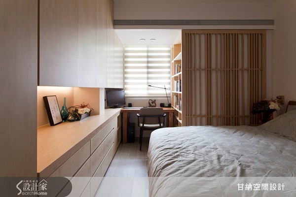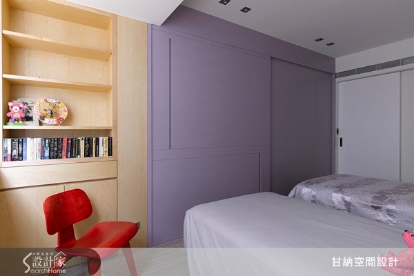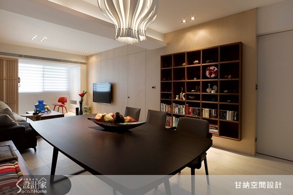 位于市区的96平米老公寓,为要改善老旧的屋型与相关采光不足的缺点,设计师将格局重整为3室2卫,让空间变得宽敞透亮。而由于女屋主喜欢禅风,而男屋主则有收集茶壶、字画习惯,因此设计师在整理家装风格上从现代舒适的设计为主,再延伸出现中式的禅意。 【客餐厅定调自然溫雅的空间個性】客厅的电视墙以浅色木贴皮来散发出温润自然的底藴,一旁则配置深色木头展示柜,放置屋主的书籍与收藏品。沙发背墙则以浅灰色为主色系,再挂上屋主所收藏的字画,让低调内敛自然流露。 餐厅则以黑色木桌为主,衬以白色造型吊灯,让用餐气氛更添了设计之感。走进卧房空间和更衣间,在设计调性上依然承袭着木质语汇的运用,以大量的木柜体做为书架与衣柜。孩子的房间则以紫色作为空间的视觉焦点,同时也增添了活泼性与趣味性。