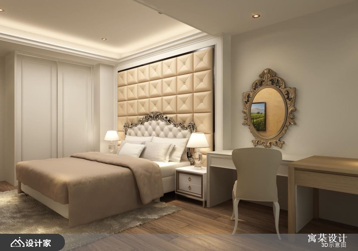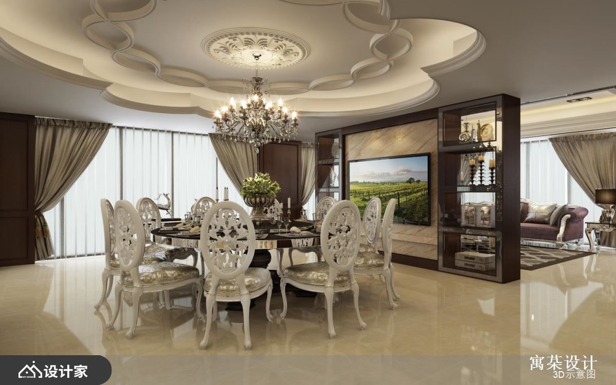 许多人总以为古典风的设计总是有满满奢华的气息,然而在此屋案中,设计师却能将古典的气质与现代大器的氛围铺陈适当,混搭出此396平米3室2厅的居住空间,能够呈现气质与优雅之美。【奢华线板妆点,营造古典风情】全屋以白色大理石作为古典时尚的空间底藴,客厅电视墙以银狐大理石为主要建材,搭配两旁由镜面与木头结合的展示柜,让屋主能放置心爱的收藏品。而沙发后方则由大面落地窗引入光线,让空间看起来更为大器开阔。电视墙后方为用餐空间,餐桌以白色大理石餐桌搭配工艺细腻的白色座椅,充分表现古典风情,与天花板的水晶吊灯交织出美好的用餐空间;而一旁以木格栅作出区隔的小型餐厅,则可供屋主的亲朋好友坐在一起品尝美酒点心,是放松休憩的好场域。 主卧以深色绷皮结合亮面材质的床头墙,展现细腻的工艺技术,一旁则是平日工作阅读的书房,藉由大小不一的几何展示柜体,为空间增添了现代的趣味之感。而另一间居室则以白色和自然色为主,让乳白色的绷皮作为床头墙面装饰,与白色线板混搭出另一种古典风情。