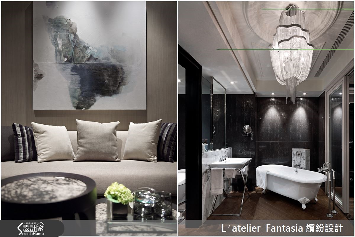 298平米的新成屋,是屋主在假日时前来度假放松心灵所用,更兼具了私人招待所的角色。设计师去除一般住家的格局规划,并以欧洲宫廷的新古典氛围融入现代精品质感的氛围,同时依照家庭成员的各自需求规划出合适的纾压空间,让温泉度假豪宅的精神不言而喻。【以長廊與木地板注入古典氣息】在入口处,设计师舍弃一般玄关的设计,改以长型廊道为主,让感官随着鲜艳花卉与芬芳向内延伸感受,予人宽阔纾压的气息。全屋以木地板为主,让木头的温润与质朴感成为此空间中舒缓情绪的底蕴,踩踏在上头,便自然地产生放松之感。【大理石材质營造高級會所氛圍】一旁的吧台采用大理石、镜面、金属元素为主体,型塑出精品般的细腻工艺与质感,随着高脚椅排列展开,彷佛进行着华丽的时尚秀;向内的公共区域则摆上了单人座沙发与小桌几,散发着古典的优雅与时尚的品味。 【因應不同喜好打造多變衛浴风格】在这温泉宅中,设计师针对不同的使用成员,规划多间风格多变的卫浴空间。有长辈喜爱的日式禅风,以大量的木质语汇堆砌出质朴的静谧感;而女屋主所中意的时尚古典风格,则以黑白配色与大盏造型吊灯呈现摩登优雅的纾压空间。