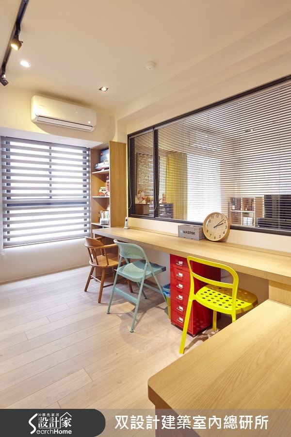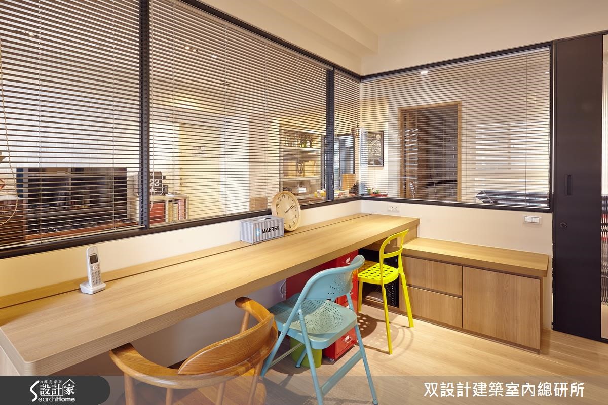 一间老屋,透过设计师巧思规划,也能成为令人心生向往的温馨居宅。此案132平方米空间内,即以北欧风为基调,在地坪、家具上添入温润清新的木材质,同时适度点缀缤纷色彩,创造出美好的居家视野,快一起走进这个家看看吧! 【北欧设计家具,展现清新质感】空间以大面积木地板、文化石墙铺陈,搭配窗外引进的美好采光,形成温柔的居家视野,整体视感显得简洁清爽。仅以家具定义出空间主题,无论是木桌、视听柜、古董皮沙发等,都释放出符合北欧风的清新调性。以清玻围塑出沙发后方的书房领域,再配置百叶窗帘,让使用者可随时享有隐私与通透视感。而书房内的L型书桌,除了延伸可使用的台面之外,也在底部结合收纳柜体,形成连成一气的机能设计。餐厅以吊灯为视觉中心,并将用餐领域配置于居家门片中央,搭配多彩餐椅,形成一幅惬意的居家风景。来到卧房空间,则以素雅木色为基调,并添入白墙、床单等创造留白美,简约的设计型塑无杂质的休憩质量。