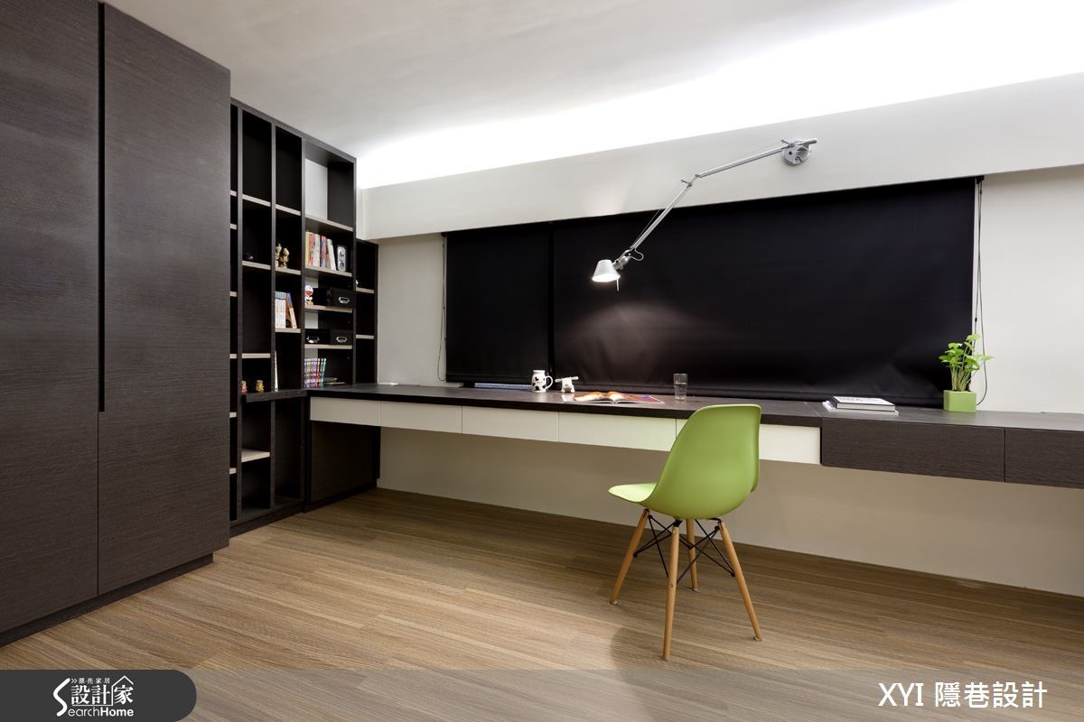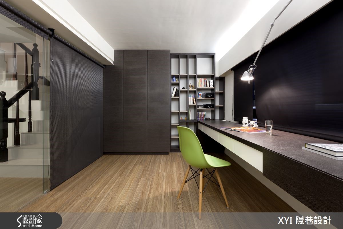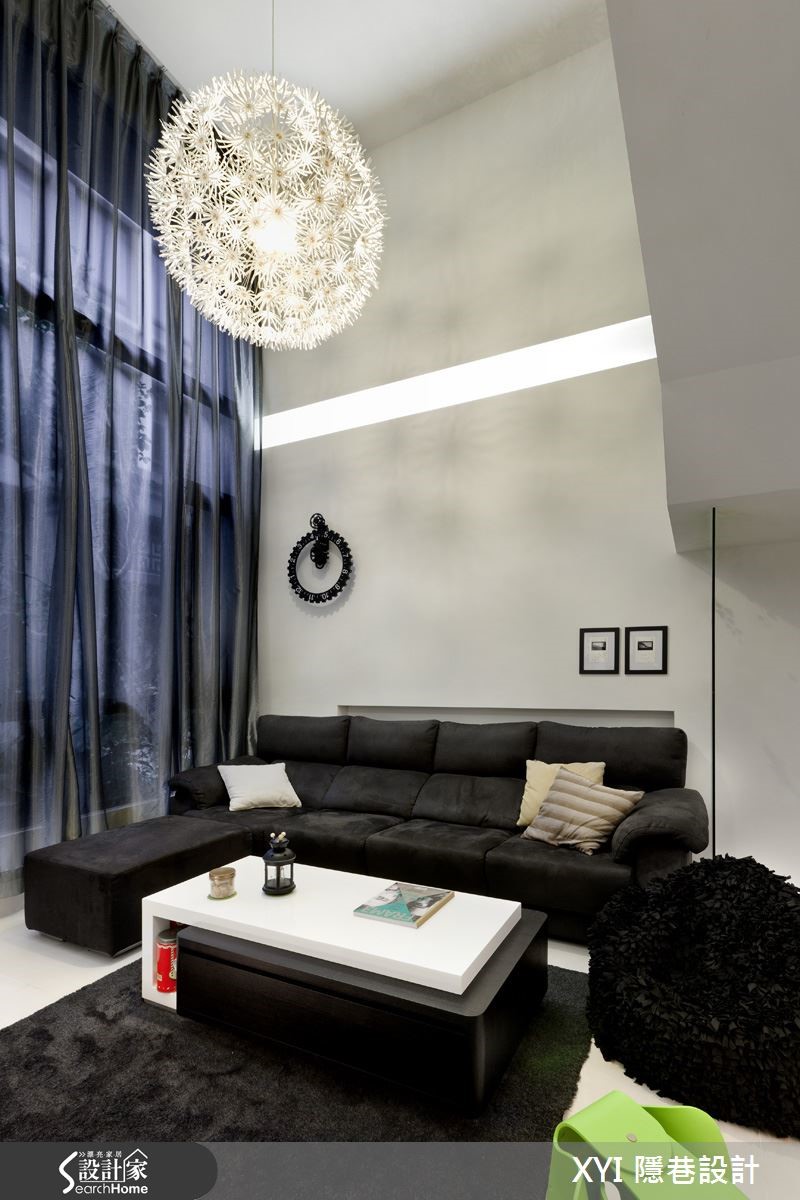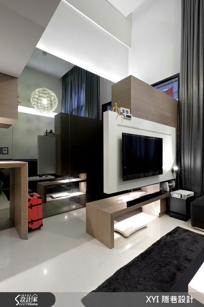 112平方米的独栋楼,依照屋主夫妻的喜好及生活特性打造;设计师微调格局,扩增收纳空间,并以黑白色系为主色,推翻了一般的制式设计,打造出三室三厅的温馨居家。【善用灰镜,造利落质感】以半高电视墙区隔出玄关及客厅,虽然客厅空间变小了,但有了玄关,就多了一道隐私,且原先挑高的客厅也不会影响到宽阔感。玄关的建立还因此产生收纳空间,让进门的屋主还可以先卸下外衣与其他物品。在一楼的公共空间,设计师采开放式设计,客厅、餐厅与厨房相互连结,展现宽敞的视野与争取更多的使用动线;挑高的客厅空间,选用时尚黑与明亮白作为整体的家具用色,展现出现代简洁的氛围。来到餐厨空间,选用时尚吧台作为自然的交界,也提供屋主多了工作区的使用。在一楼空间因两侧的墙面上有结构梁,因此设计师选用较多的灰镜设计,消弭了线条凌乱的感觉,还给空间利落的表情。二楼空间挑高的高度有限制,因此空间较小,设计师将此空间作为书房及客房的使用,为了展现穿透感,拆除原本的隔断以透明玻璃代替,同时让采光可以进到楼梯间的位置,书房一字形的书桌搭配多功能收纳的柜体提供使用,温润的家具配色缔造了沉稳感。
