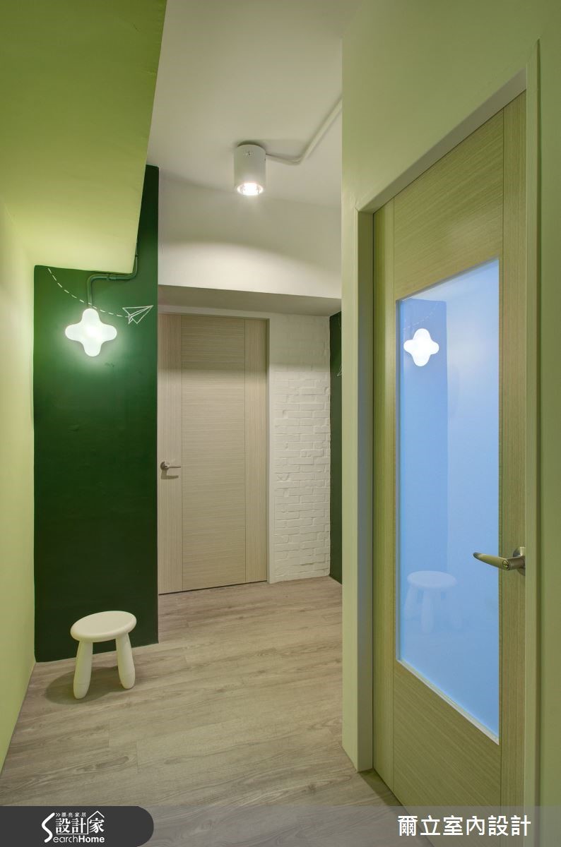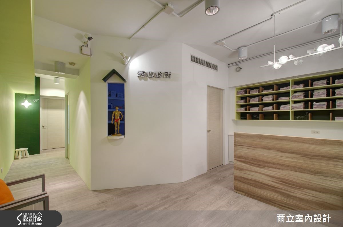 它不是画廊,也不是教室,而是一间由老房改建而成的小儿科诊所。由于地处不醒目的位置,所以颠覆一般医院的冰冷印象,透过大面积的绿色调围塑整体空间,营造出温馨的疗愈风格,让孩子不再惧怕看医生,也替当地居民带来新颖的看诊体验。 【领药屋顶与黑板墙,展现童趣】走进诊所内,设计师以超耐磨地板铺陈,搭配大面幅的草绿色墙面,营造出视觉上的清新感受。而为了克服候诊区可能产生的局促感,刻意将药房墙面做出斜切角度,搭配屋顶设计的领药窗口,成为令人会心一笑的童趣设计。在低矮木质挂号柜台的后方,则是黑板墙材质的开放收纳柜体,将各项病历资料做出整齐罗列,而天花板刻意裸露管线,点缀古朴简约的灯具,仿造出小学教室的亲切意象。来到卫生间,在墙腰以下铺陈白色小口砖,营造出怀旧况味,而水泥墙面则保留了刮抹痕迹,带来一股质朴的温暖手感。在门片旁、角落处妆点了黑板墙材质,搭配纸飞机、小草等粉笔画涂鸦,让空间增添不少活泼趣味。