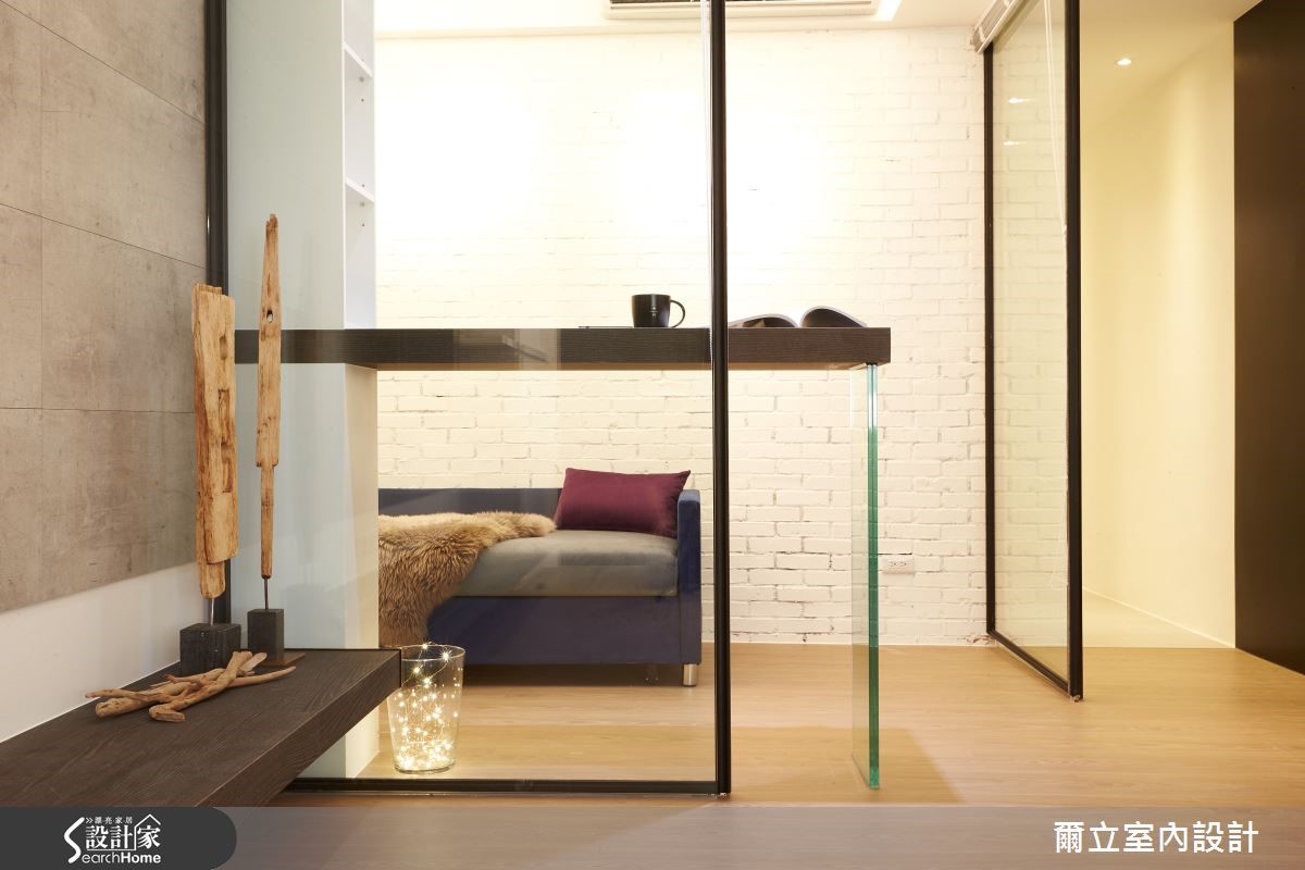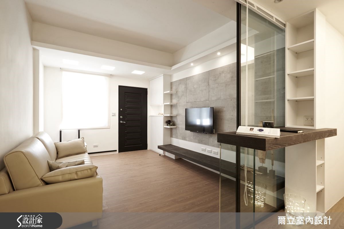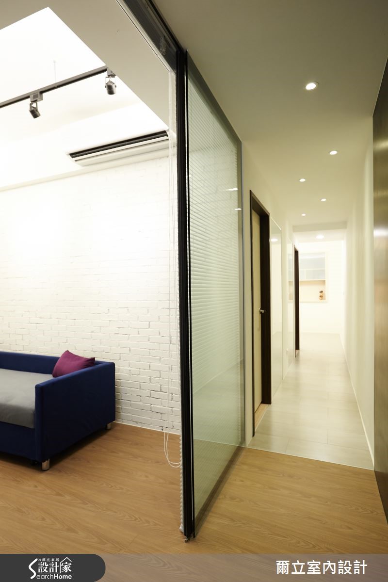 屋龄40年狭长老宅,因面宽窄,前后采光不足,使整个室内显得十分阴暗。设计师在不变动太多格局的前提下,仅依机能需求适度调整各空间比例,并舍弃繁复的设计,让出空间感。并加入轻盈而简朴材质,搭配多层次的灯光,呈现出干净明亮的现代风格。【舍一室改书房,创造多维机能】在3室2厅的格局中,客厅以白调、灰色展演都会风格,并采用原始感材质铺陈电视墙,点缀嵌灯与隔板,营造利落简约的视感。同时将靠近客厅的居室改为半开放式书房,并以清玻作为门片材质,让光源可流通于居家各角落。在阖上移门、放下百叶窗后,即变成现成的客房。而将收纳柜与桌面做出结合,在体现实用机能之余,也让出不少使用空间。书房搭配大面积的白色文化石墙与低矮沙发,营造慵懒且随兴的居家格调,书房侧边的墙面加入深色黑板墙,可作为一家人的居家备忘板;而在居家廊道上,则刻意铺陈浅色砖材,在与卧室、公领域做出领域切分的同时,也弱化了狭窄的空间感。